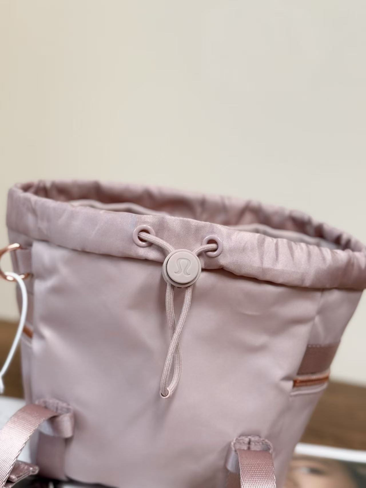 主隔層抽繩束口: 經典的束口設計,兼顧開合的便利性與美觀的褶皺線條感。