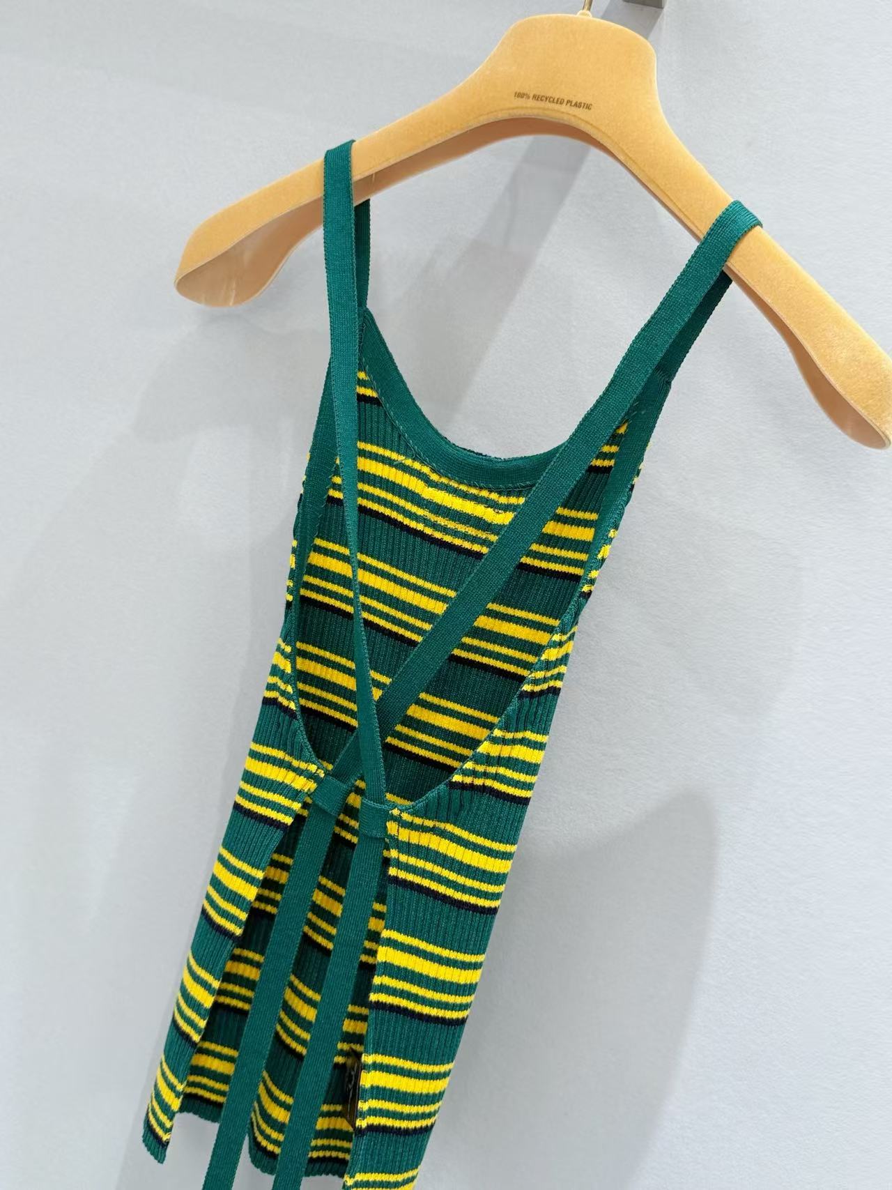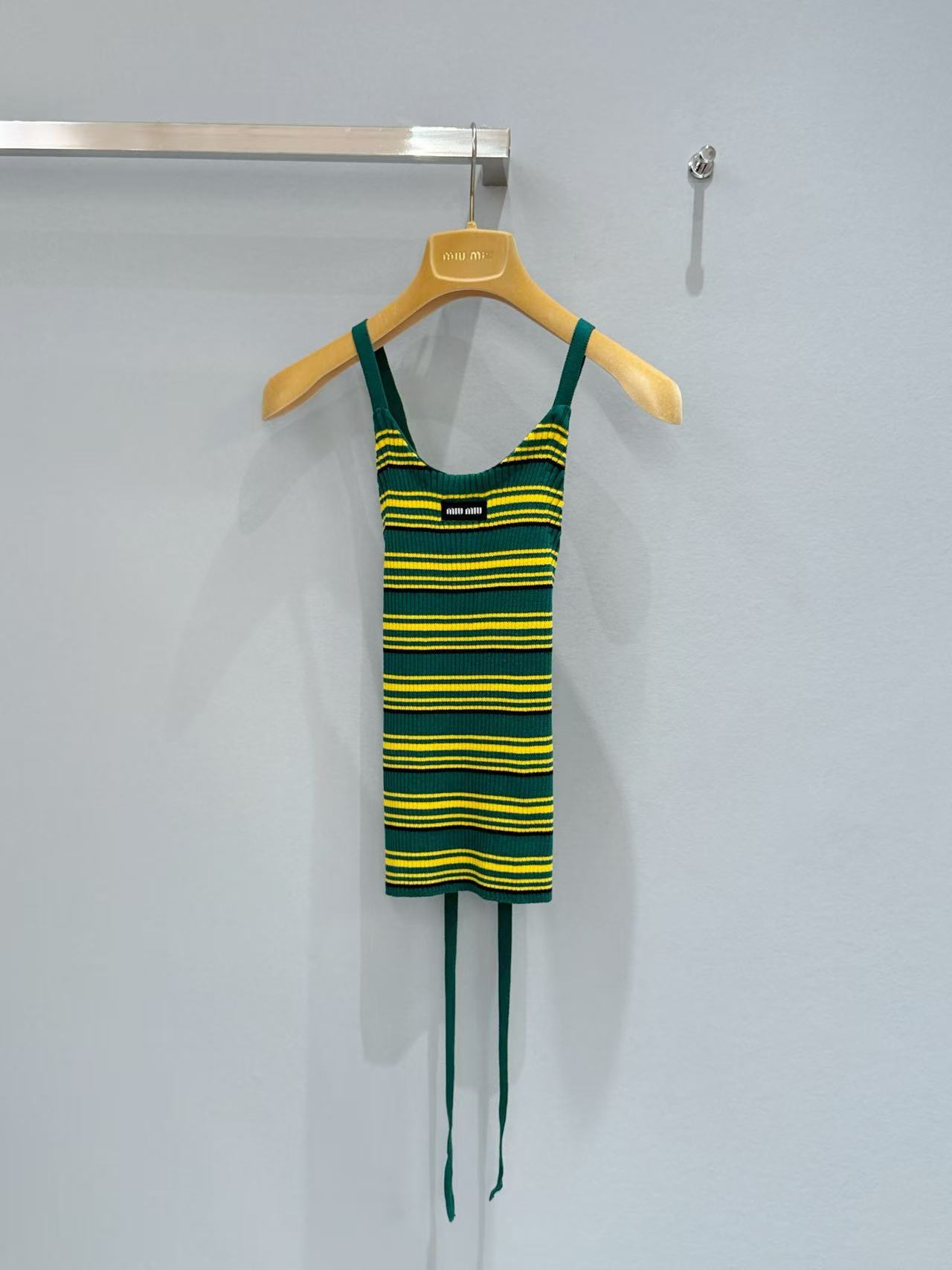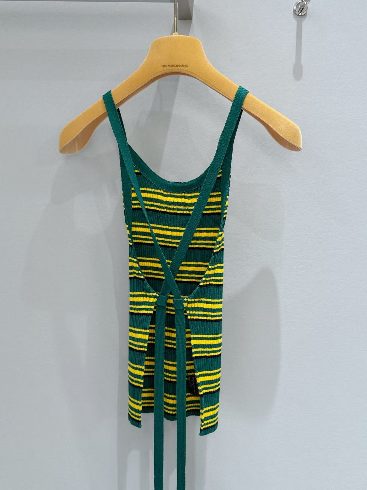 2026早春 Miu家 黃綠條紋綁帶吊帶