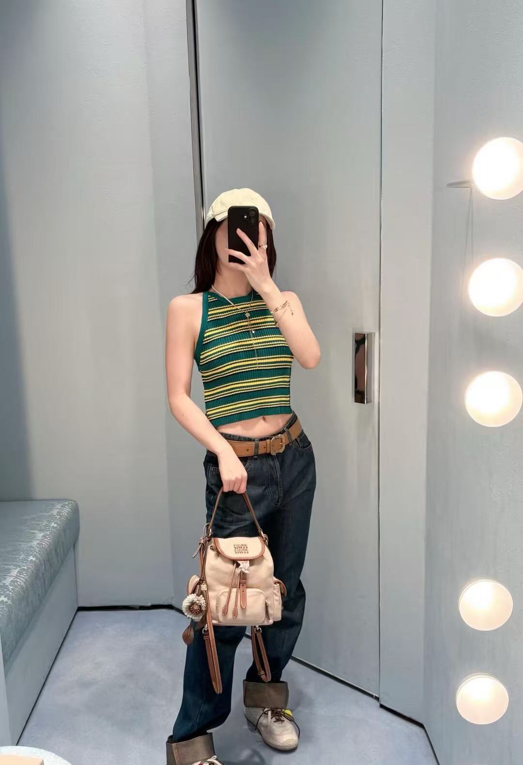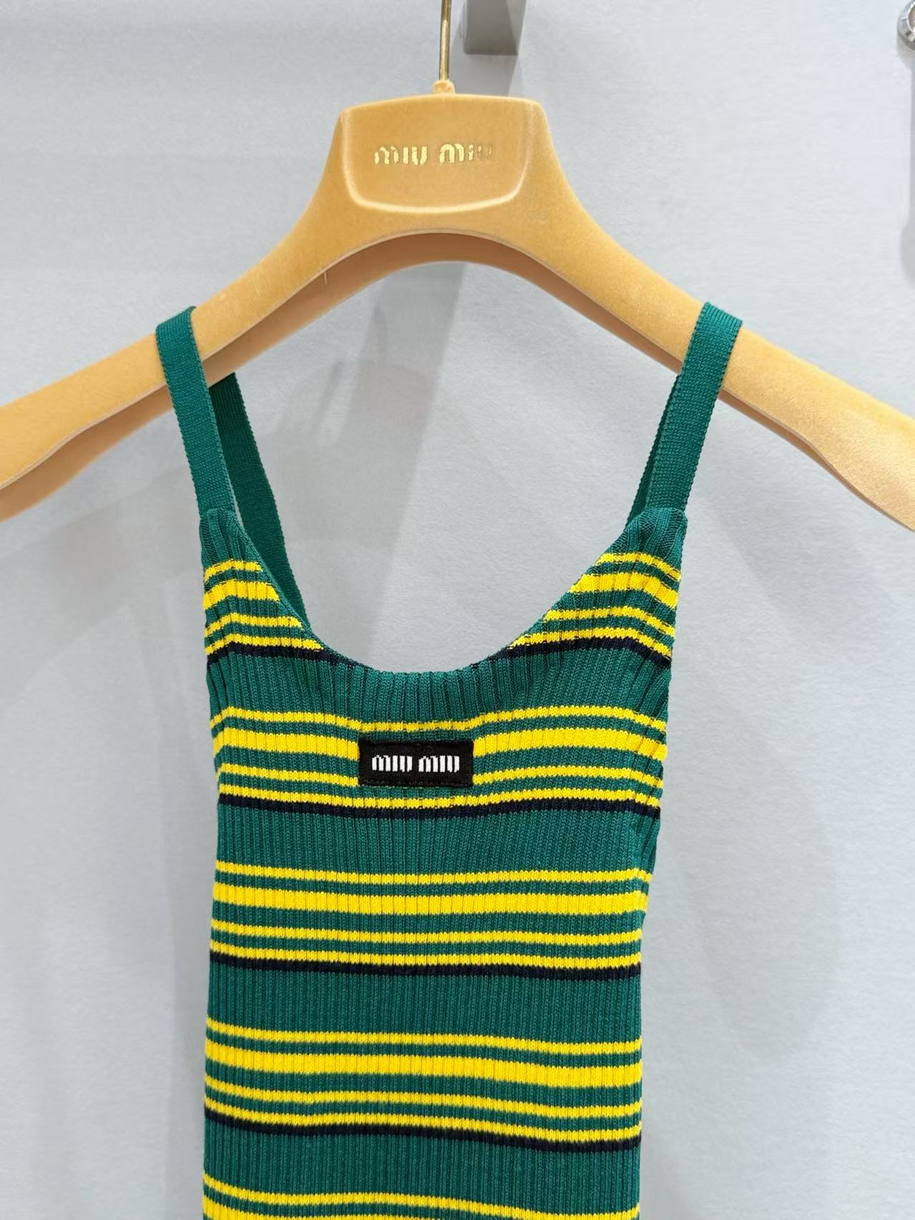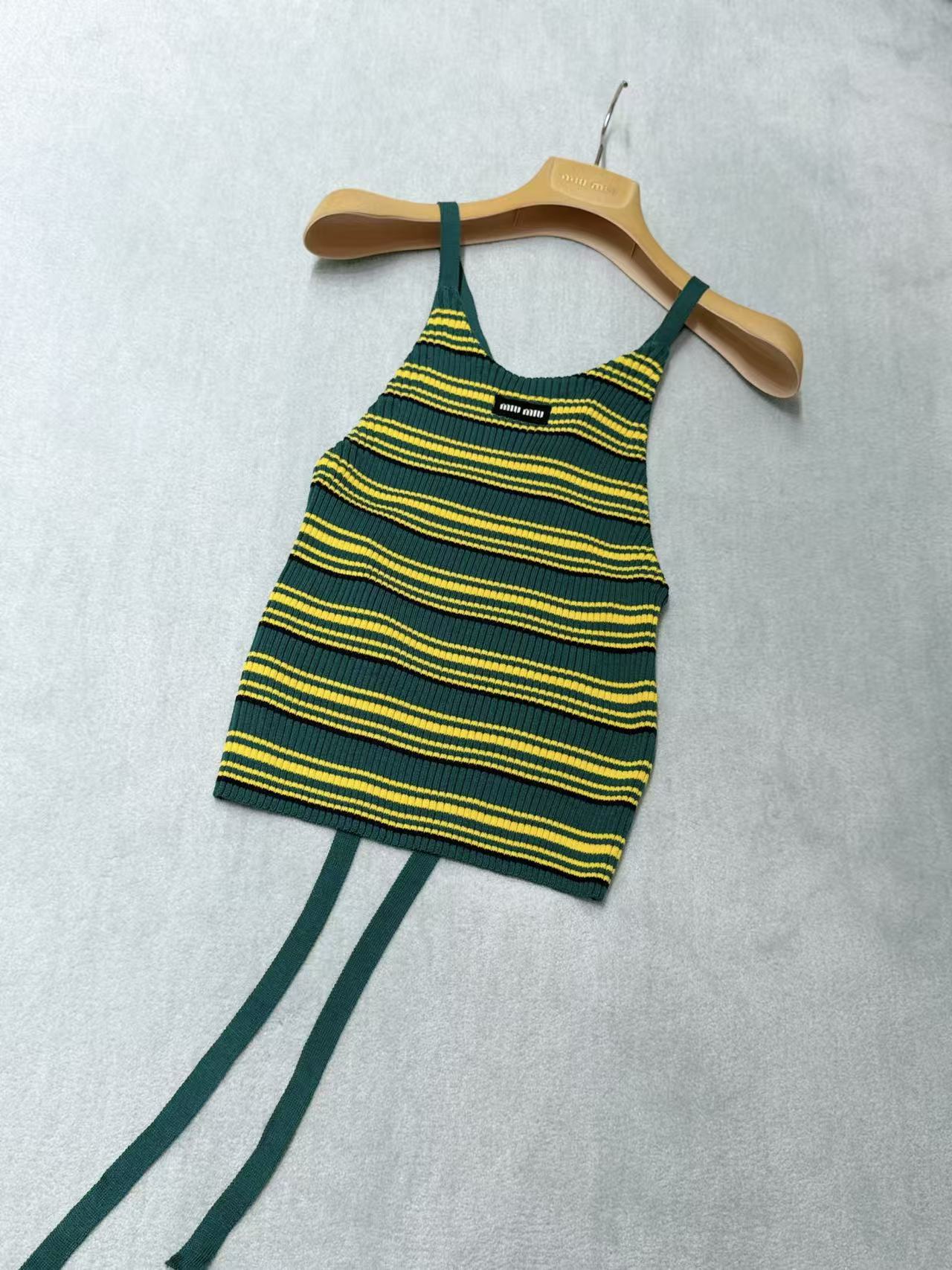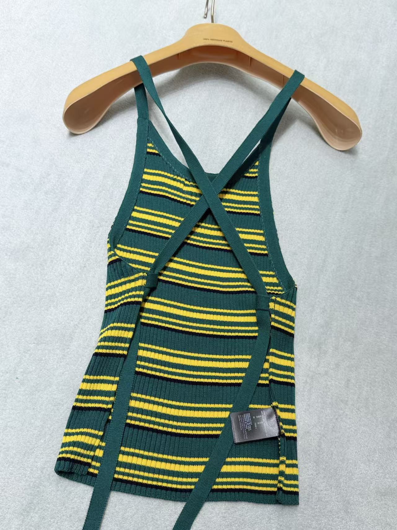 2026早春 Miu家 黃綠條紋綁帶吊帶