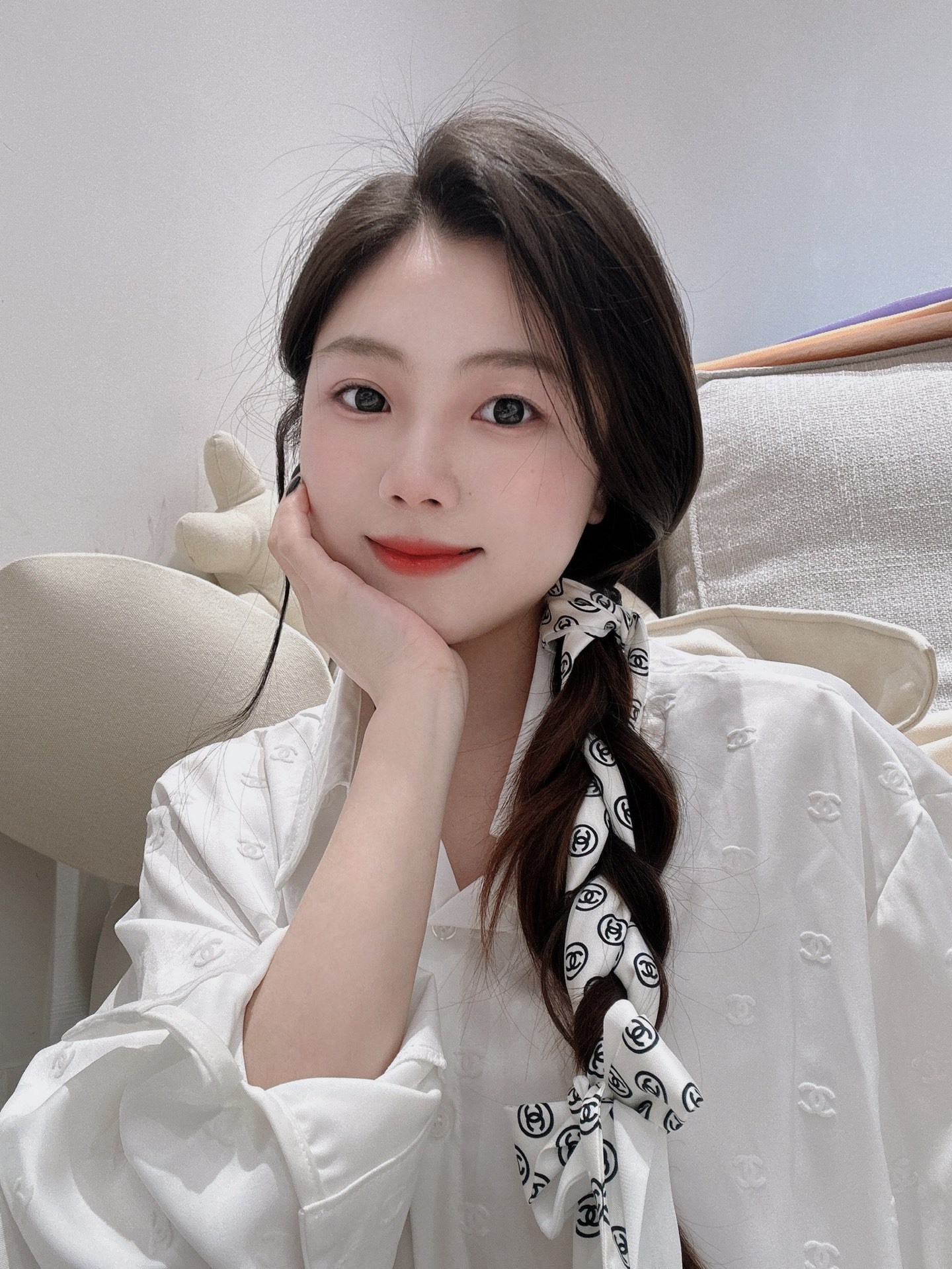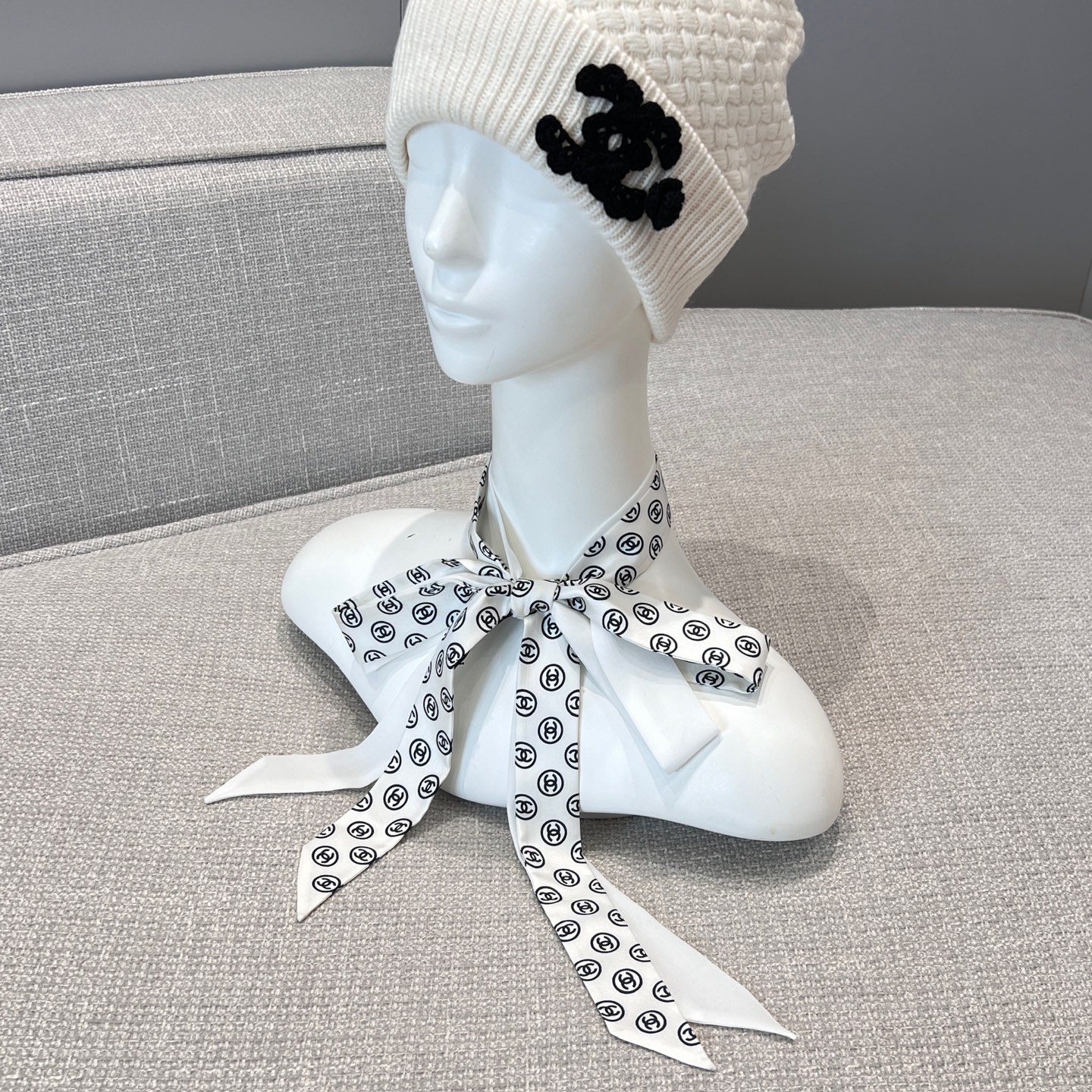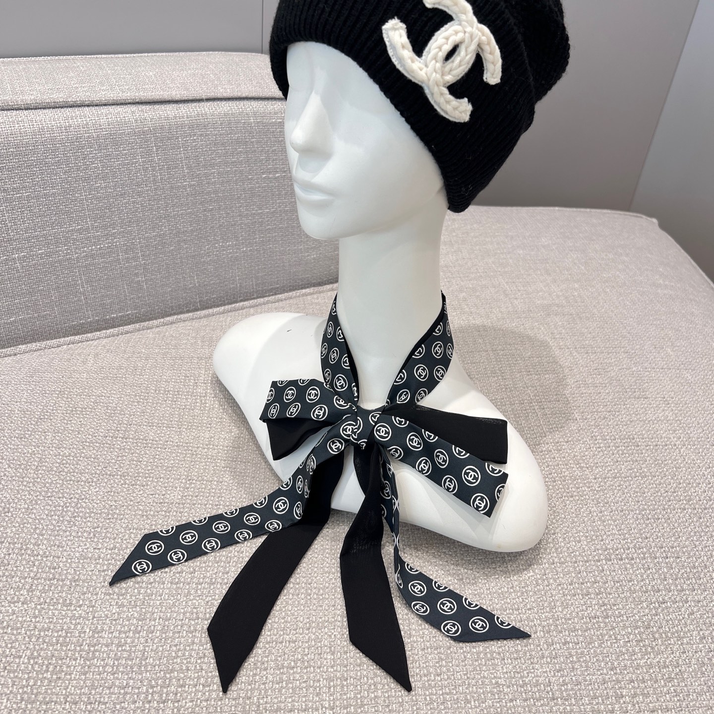 這款蝴蝶結長絲帶一看就很有記憶點,經典雙C Logo搭配細長版型,隨著走動自然擺動,讓整體造型多了點靈動感。