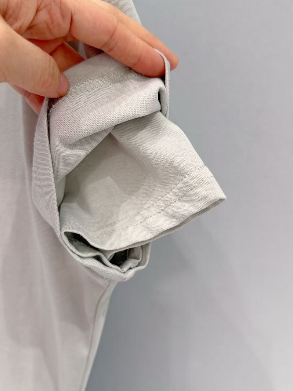 精工假兩件結構與寬鬆剪裁: 領口與袖口處採用了精密的一體化縫合工藝,模擬出真實疊穿的陰影層次。