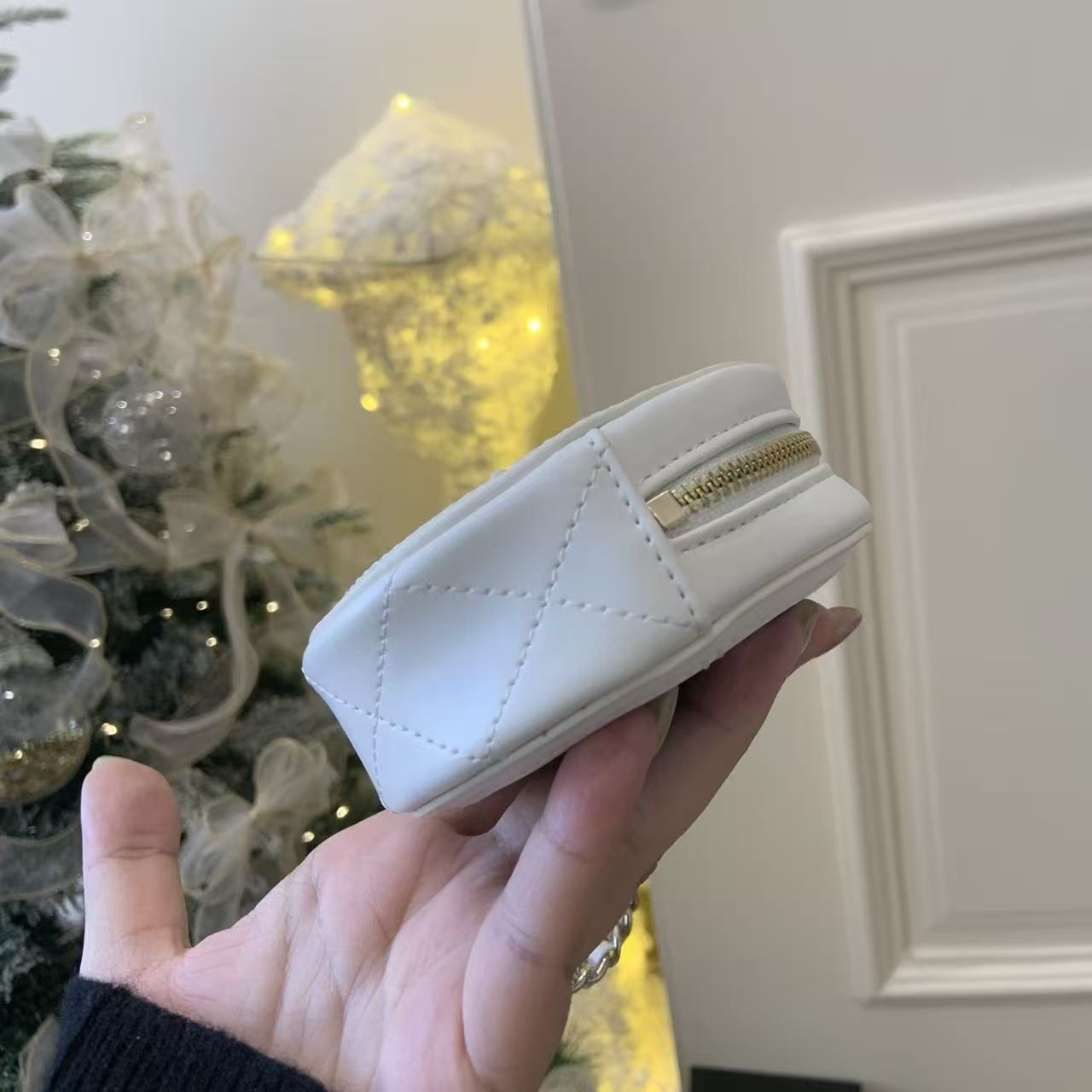 將經典元素濃縮在小巧的尺寸中:經典雙 C Logo: 包身中央飾有經典的雙 C Logo,簡約卻充滿辨識度,一眼就能看出是香奈兒的出品。
