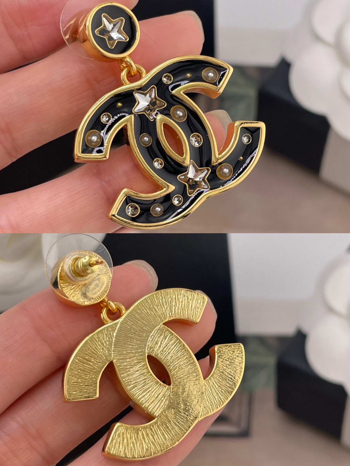黑金配色低調卻充滿氣場,帶點復古港風的味道,上耳立刻有「富家千金」的質感氛圍,既時髦又精緻,完全是那種越看越耐看的精品級飾品。