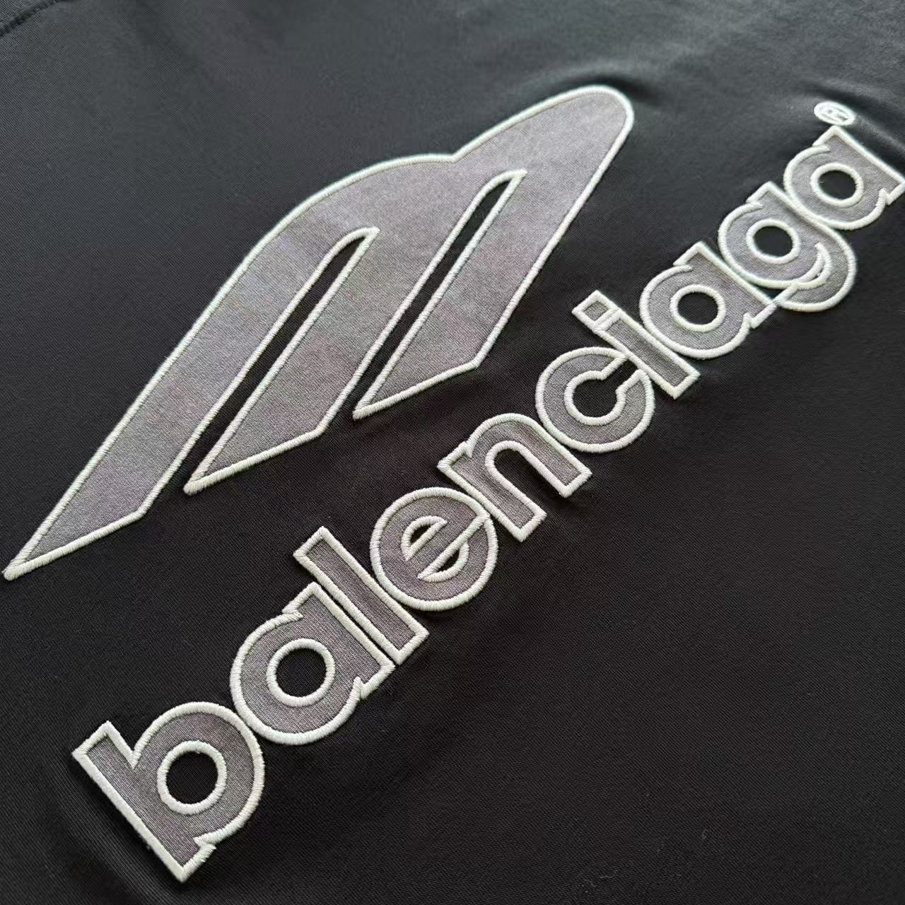 而在衣服的正面和背面 都有3B的貼布刺繡 這種工藝讓圖案更有層次感和立體度 質感非常飽滿。此外 圖案還使用了彈力環保膠漿印花 讓色彩鮮明又耐穿。