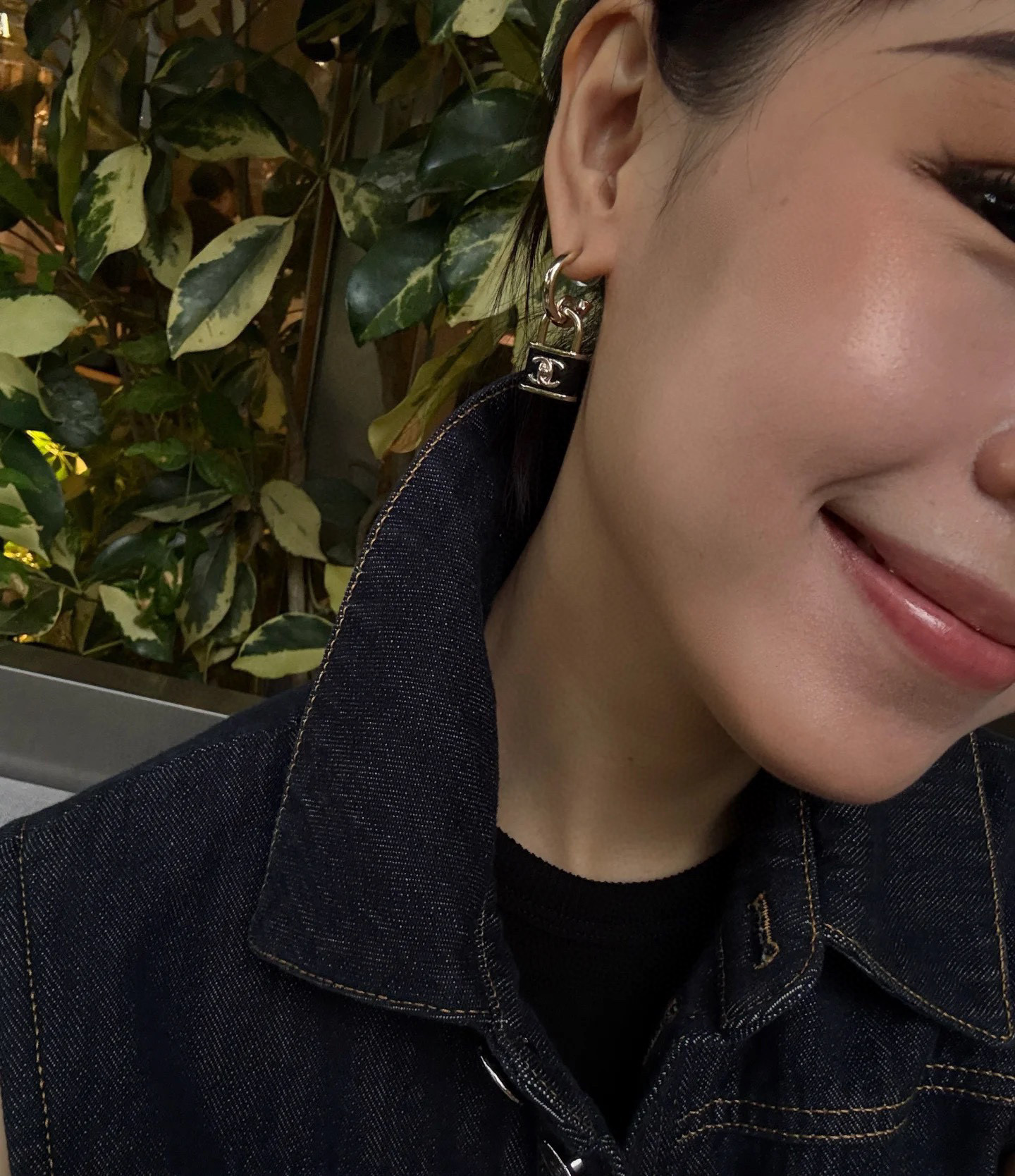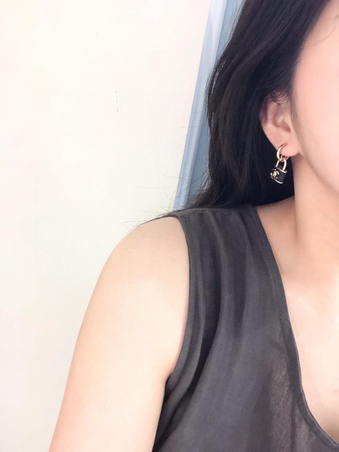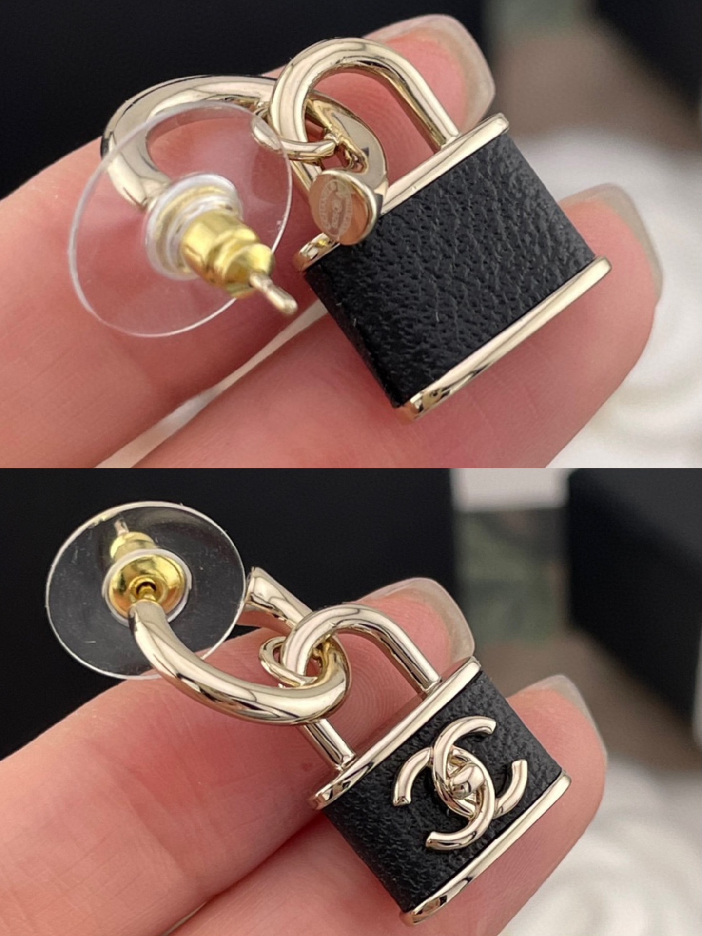 黑色小羊皮與鎖頭元素的結合,完美展現出一貫的高級質感與時髦氛圍。小巧尺寸不挑臉型,戴上耳間既可以甜美可人,也能酷帥有型。