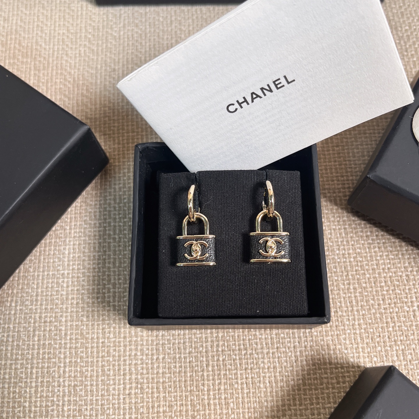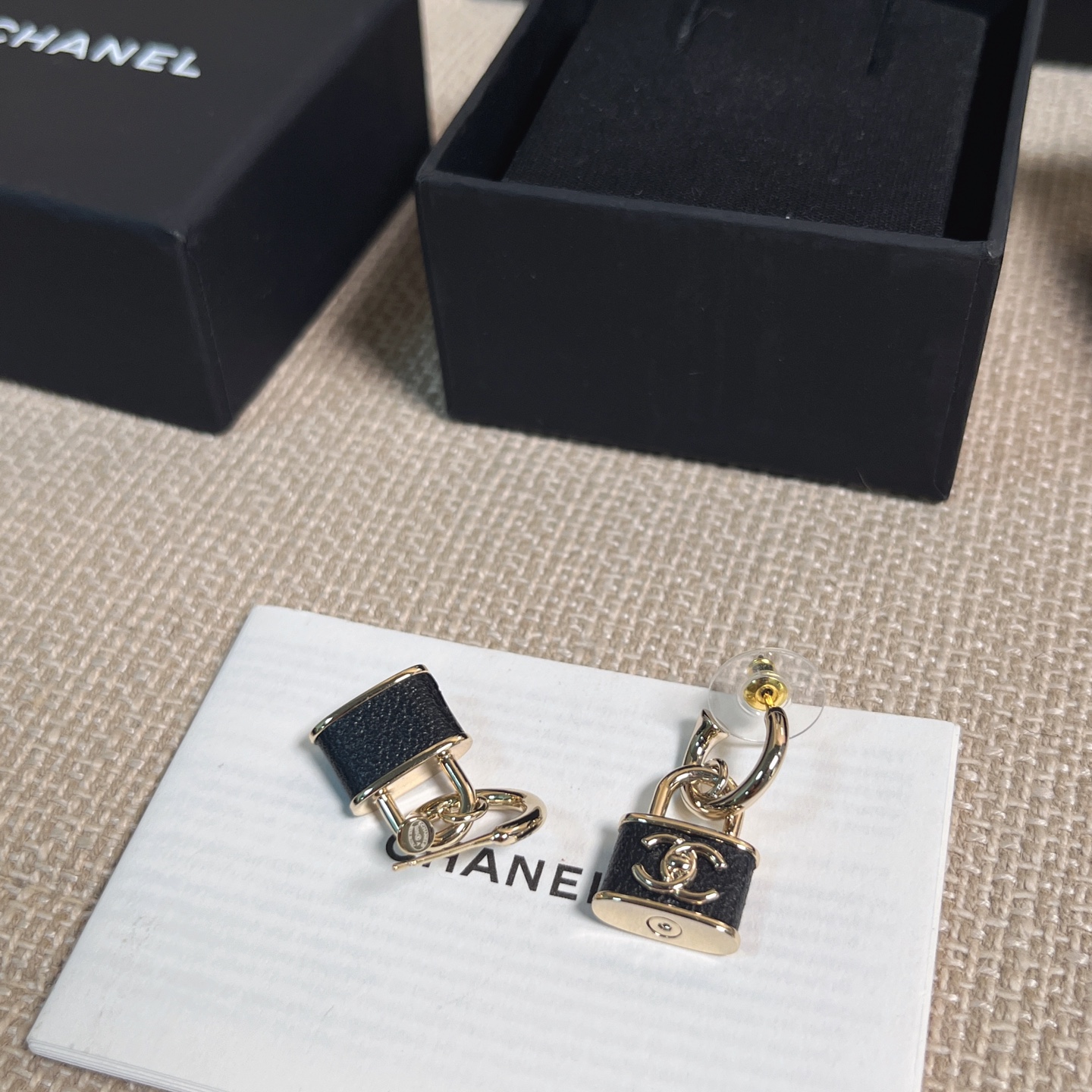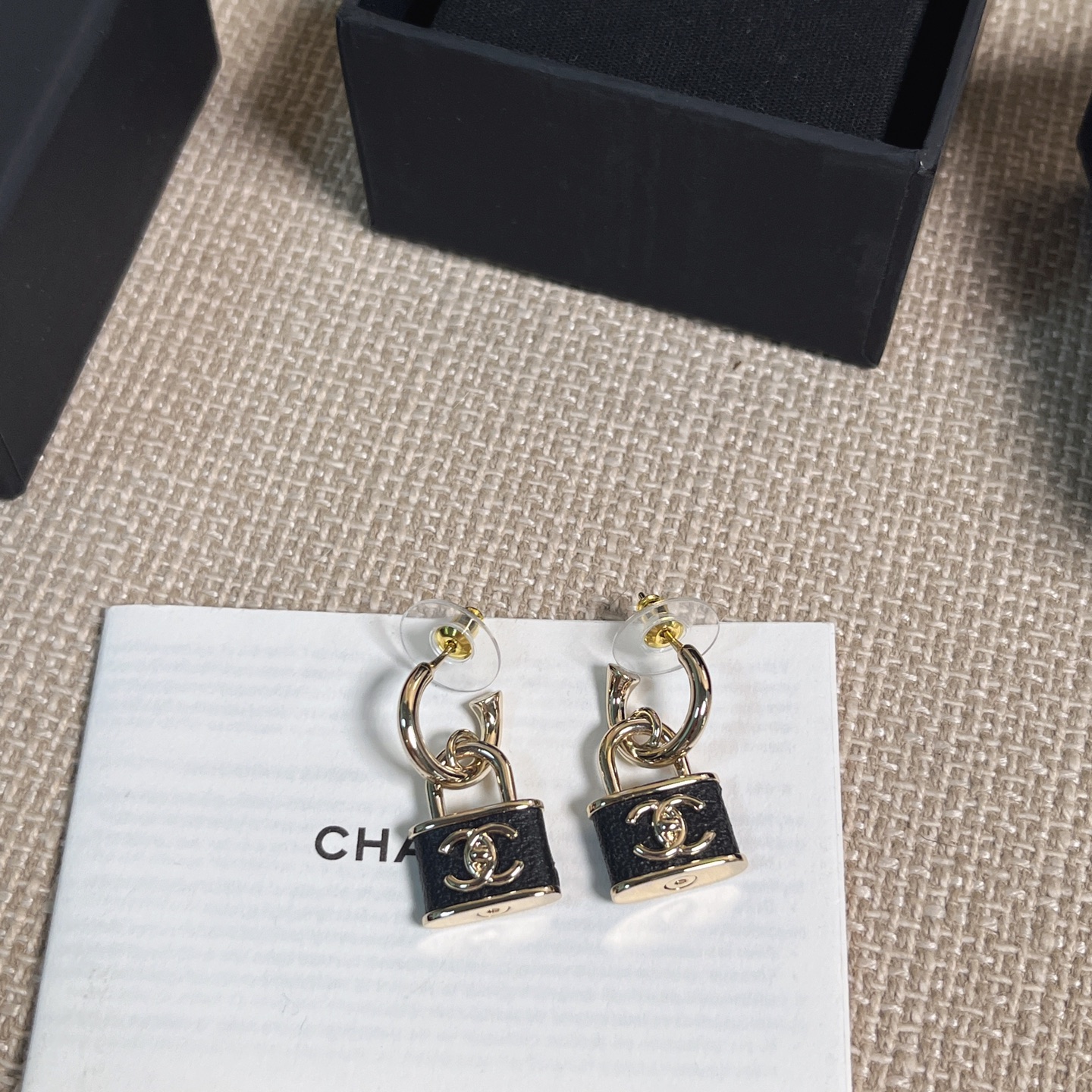 黑色小羊皮與鎖頭元素的結合,完美展現出一貫的高級質感與時髦氛圍。小巧尺寸不挑臉型,戴上耳間既可以甜美可人,也能酷帥有型。