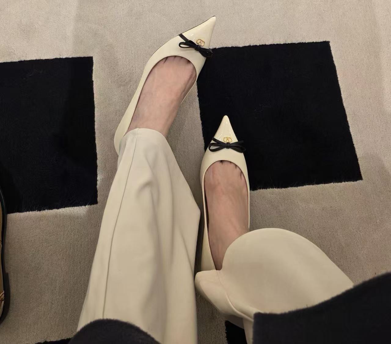 2025 年新款平底芭蕾舞鞋,巧妙地將俐落的尖頭線條與溫柔的蝴蝶結元素結合,打破了平底鞋容易顯得過於休閒的既定印象。