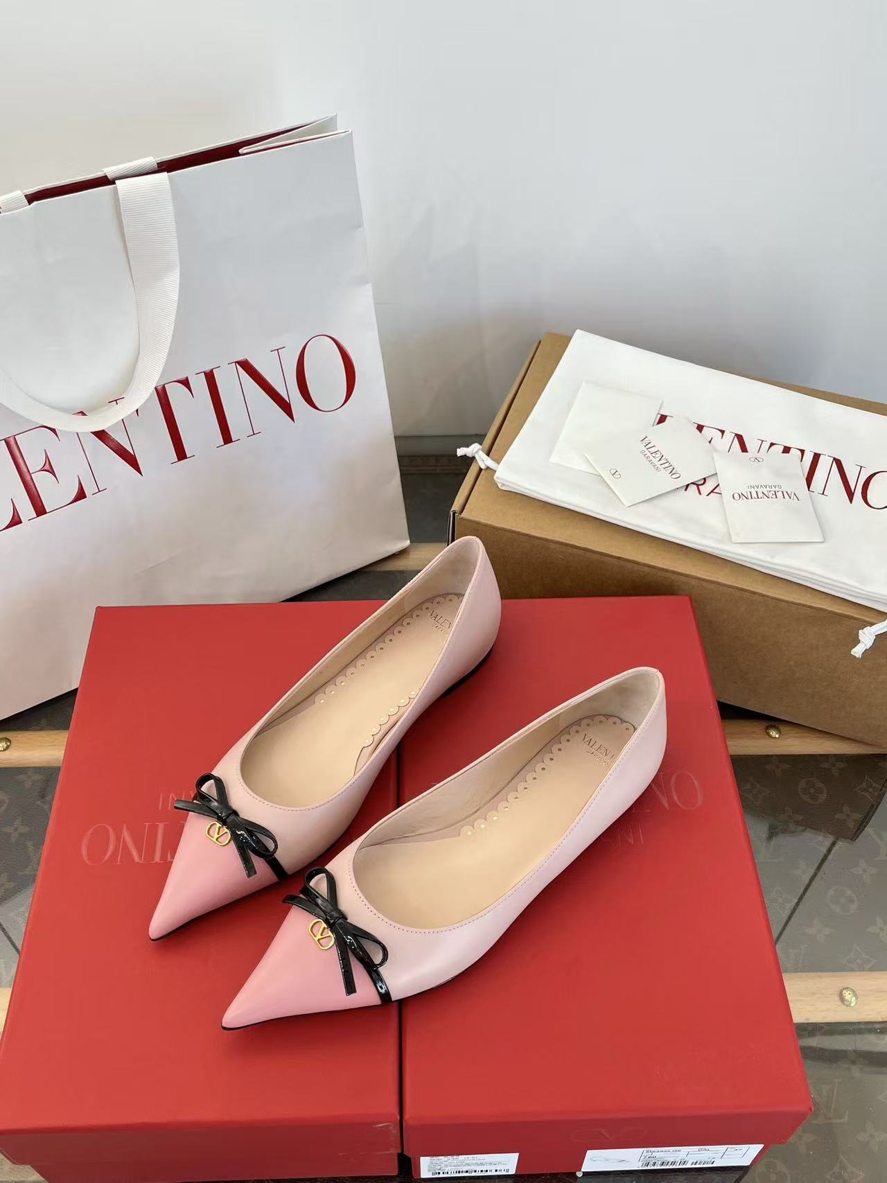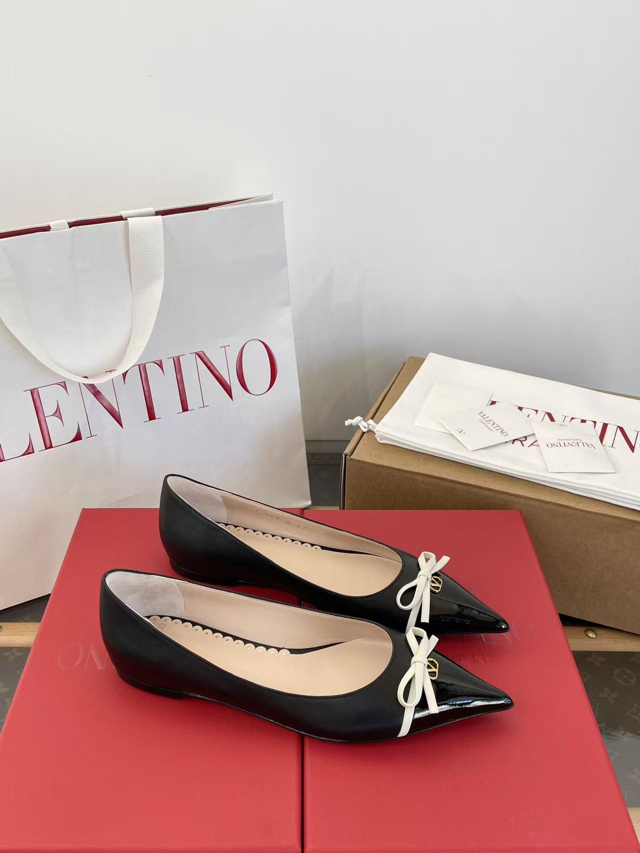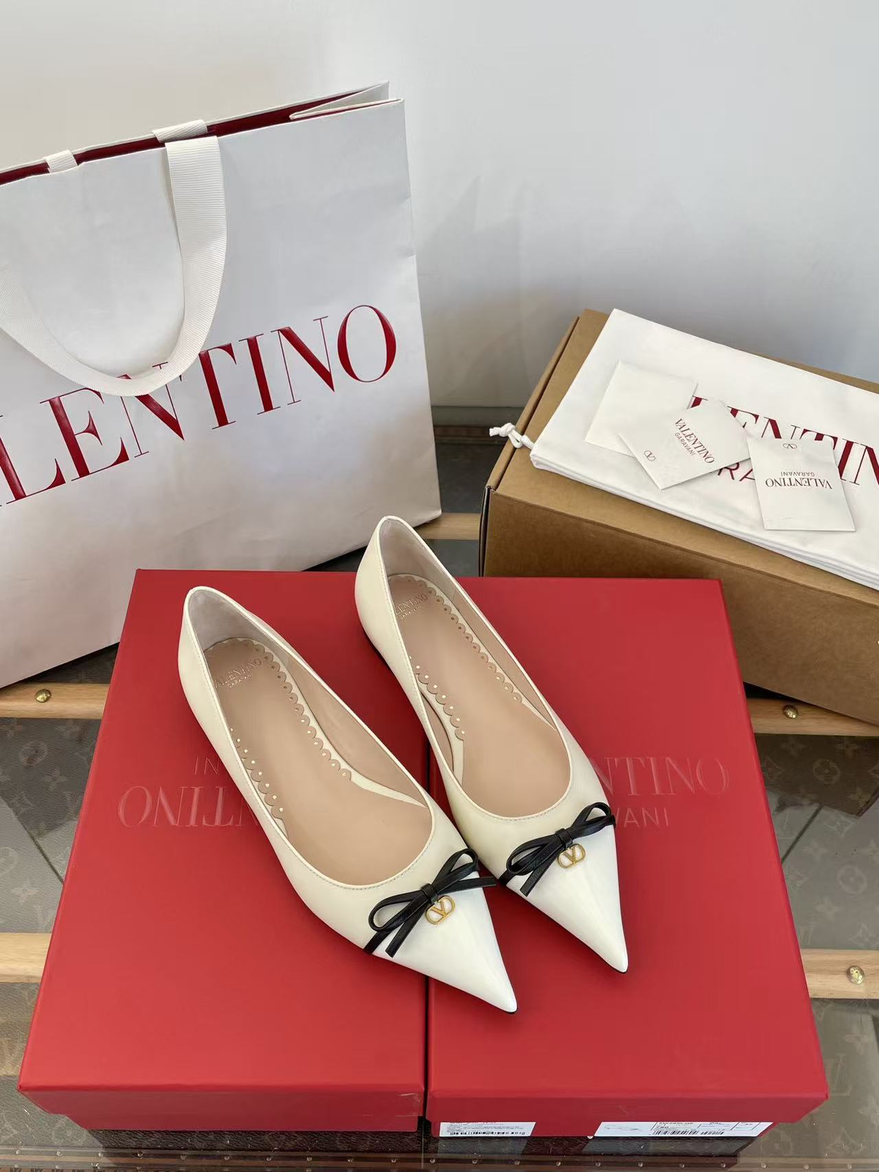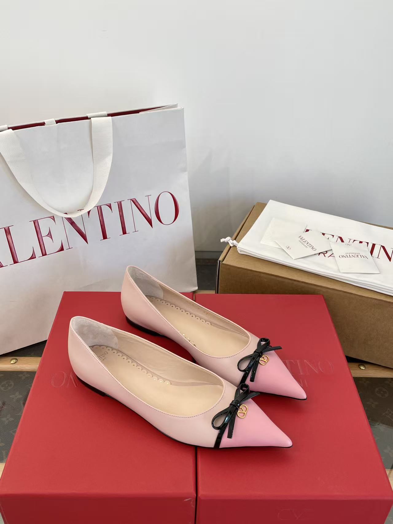 2025秋冬新品 V家 拼色蝴蝶結尖頭平底鞋