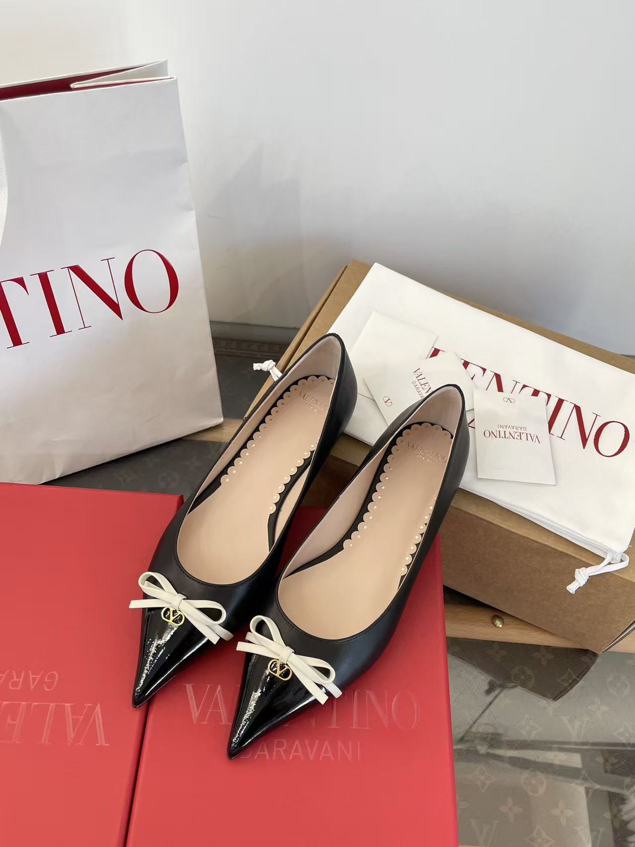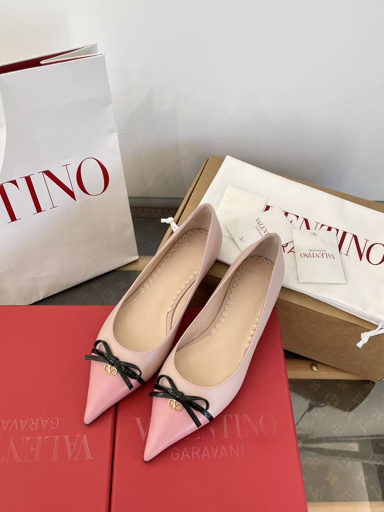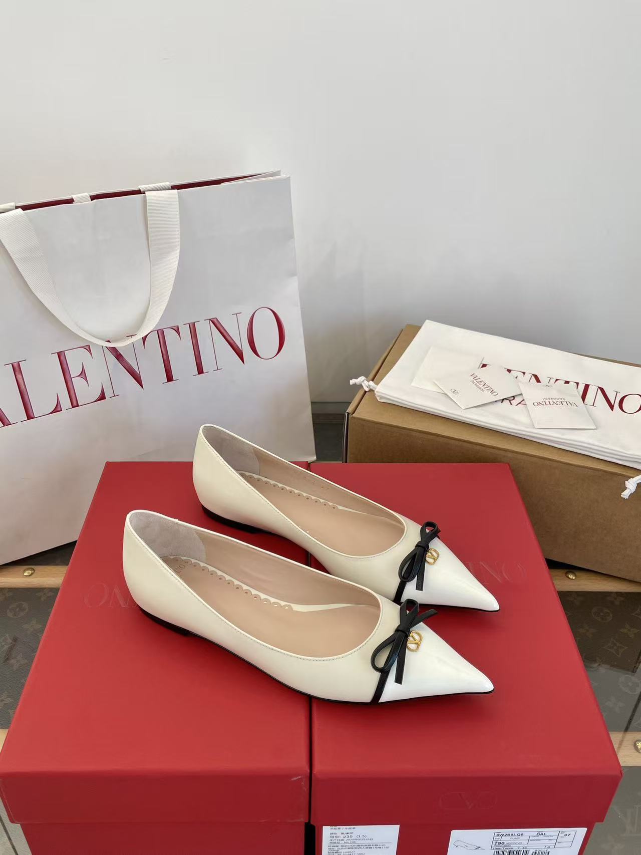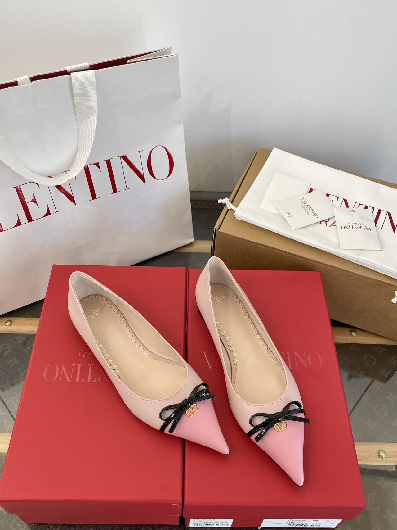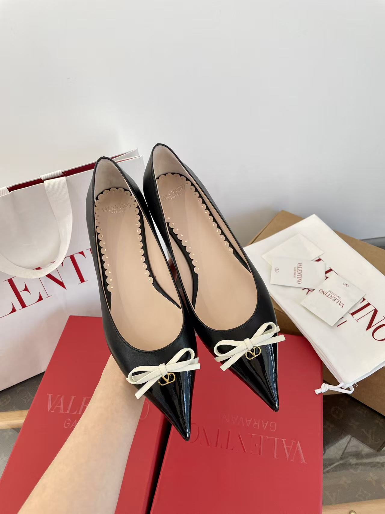 2025秋冬新品 V家 拼色蝴蝶結尖頭平底鞋
