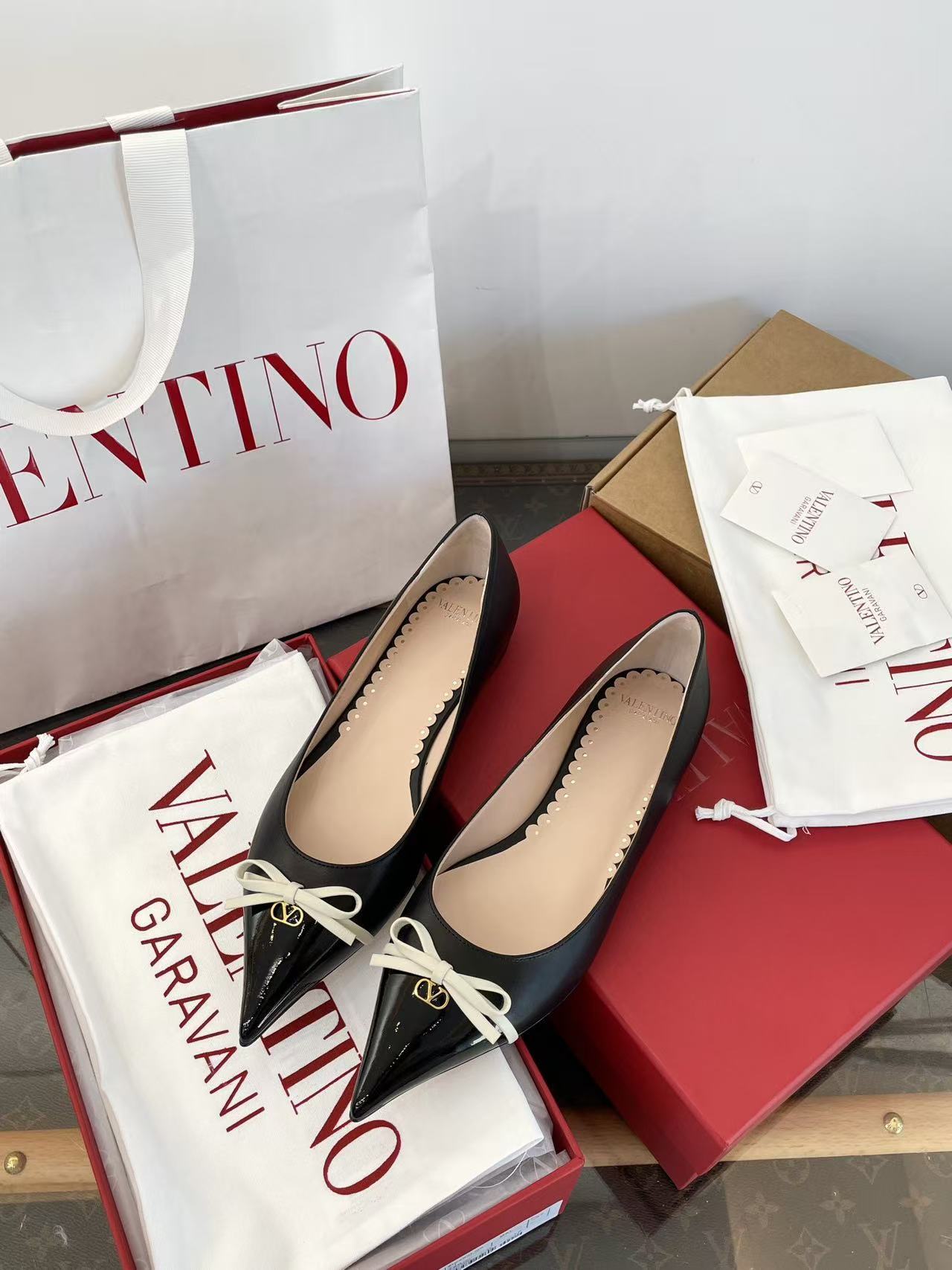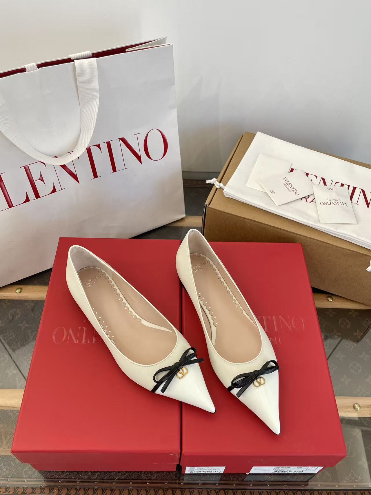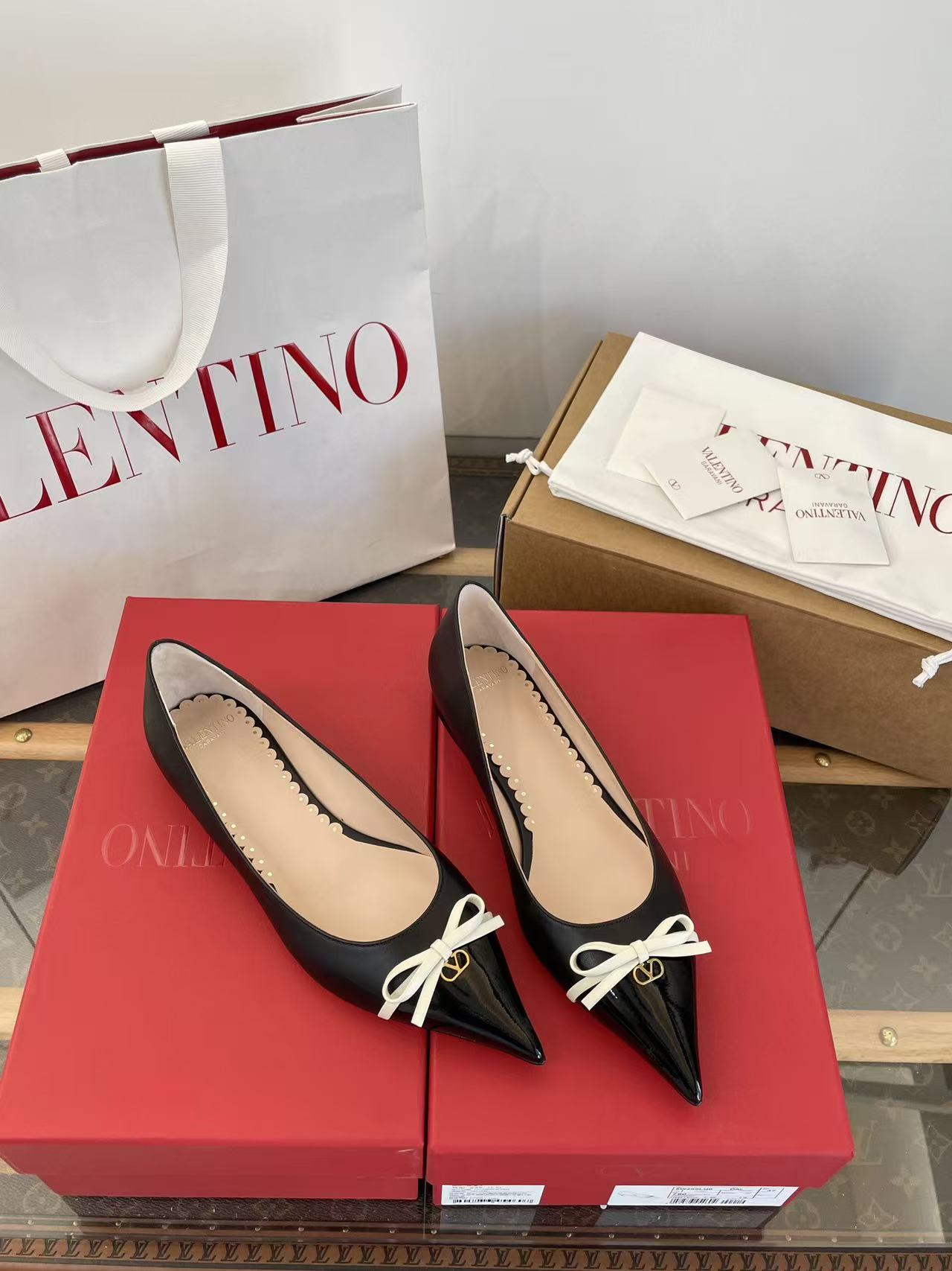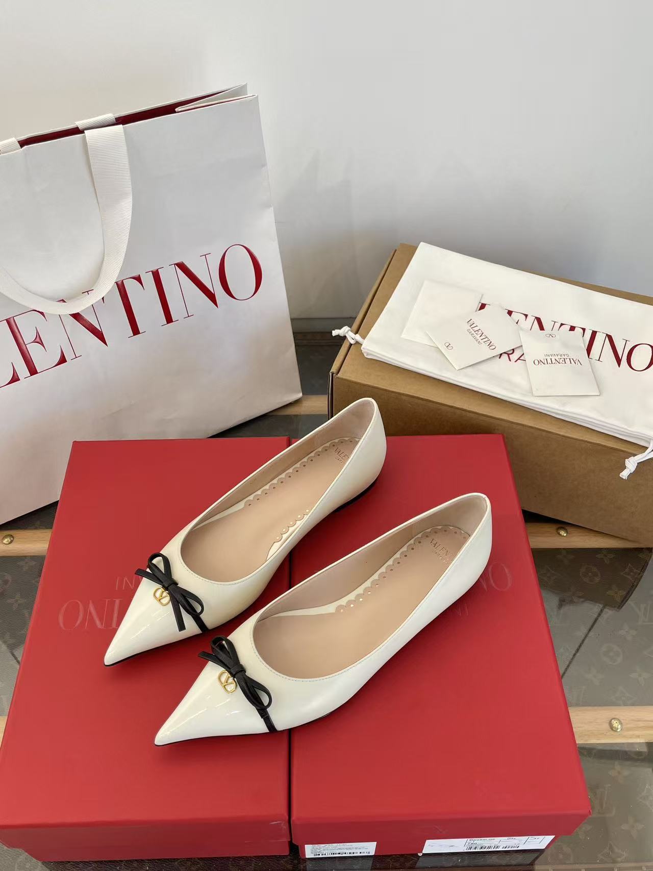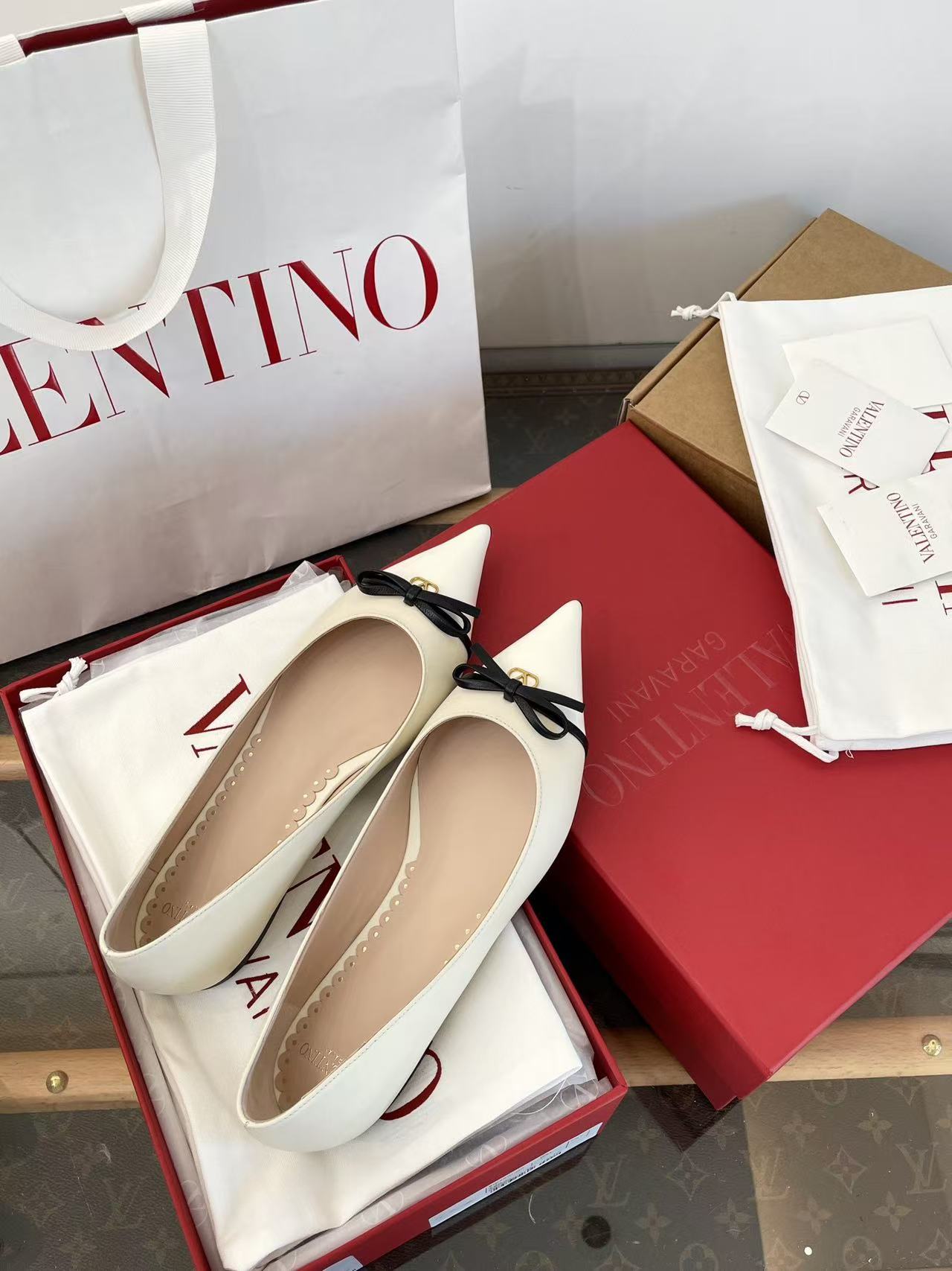 2025秋冬新品 V家 拼色蝴蝶結尖頭平底鞋