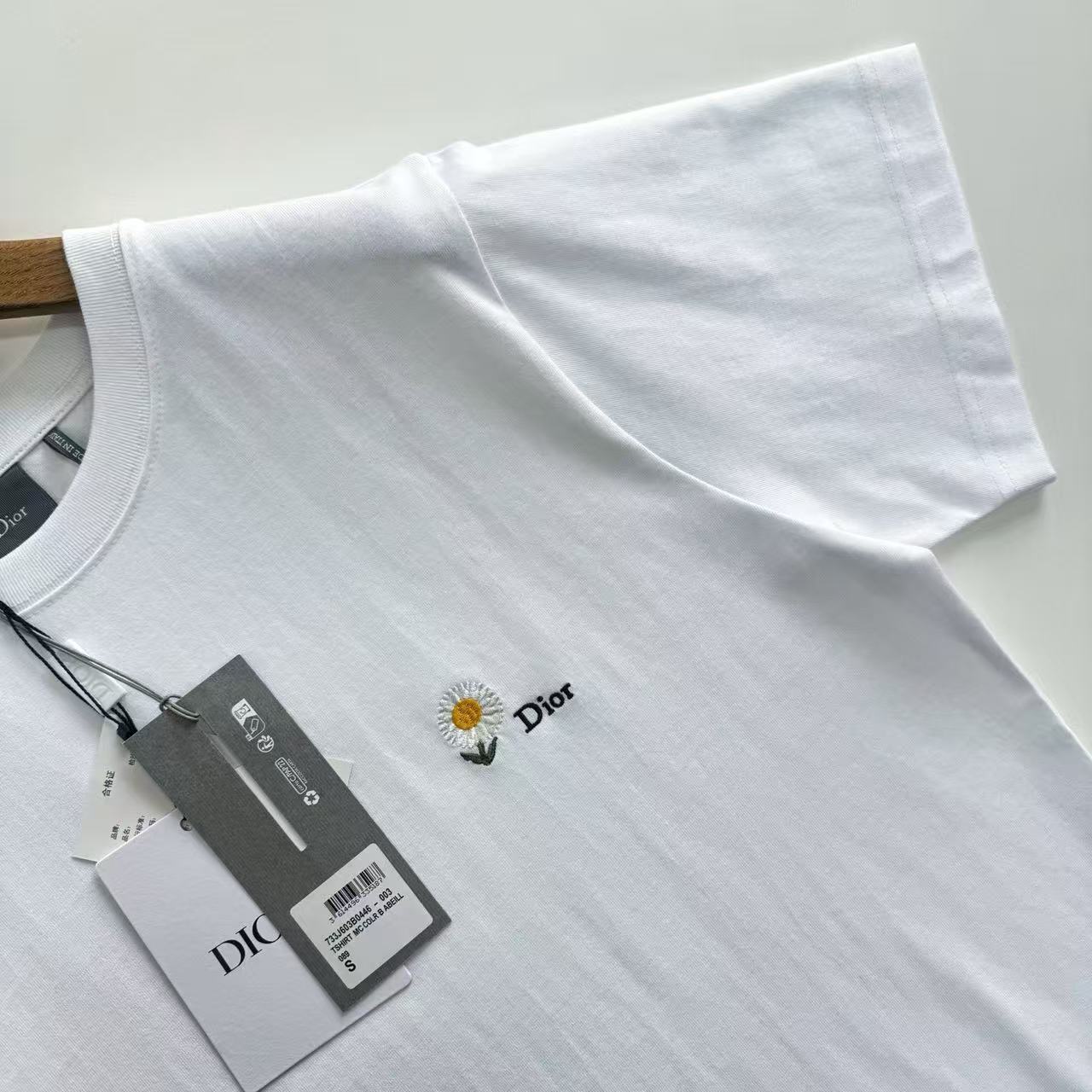 胸前那朵靈動的雛菊,不只是視覺焦點,更是對極致刺繡工藝的展現,為簡約的 T 恤注入了充滿生命力的藝術氛圍。
