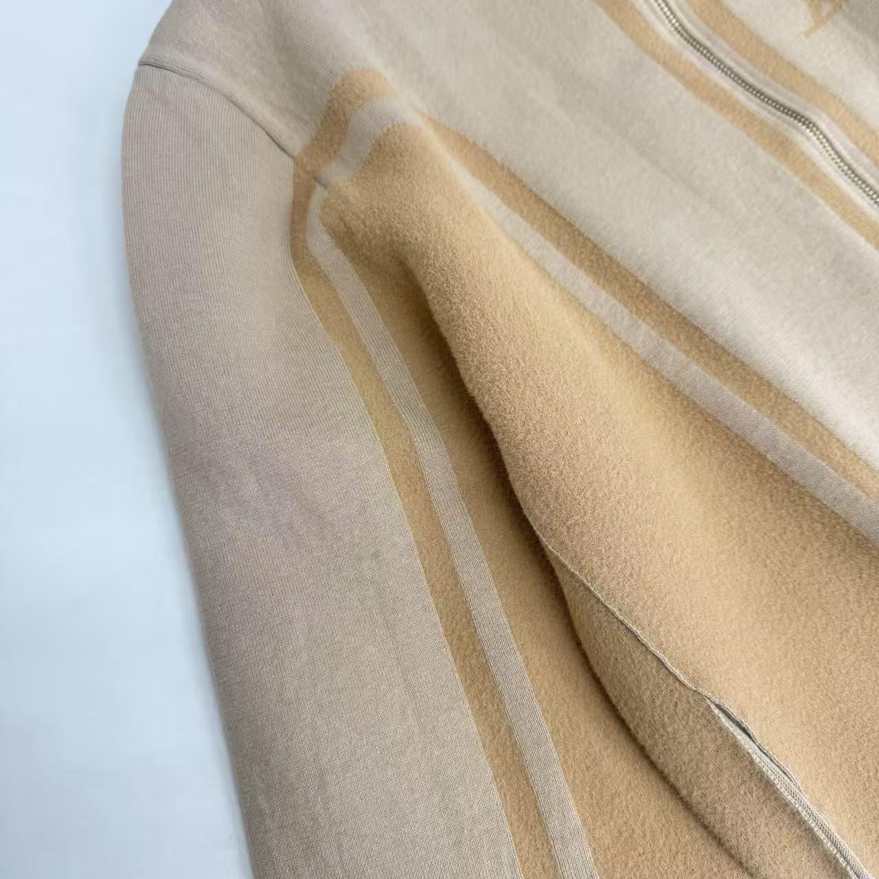這款外套在紗線開發上追求極致的觸感對比,旨在提供兼具柔軟與結構感的穿著體感: