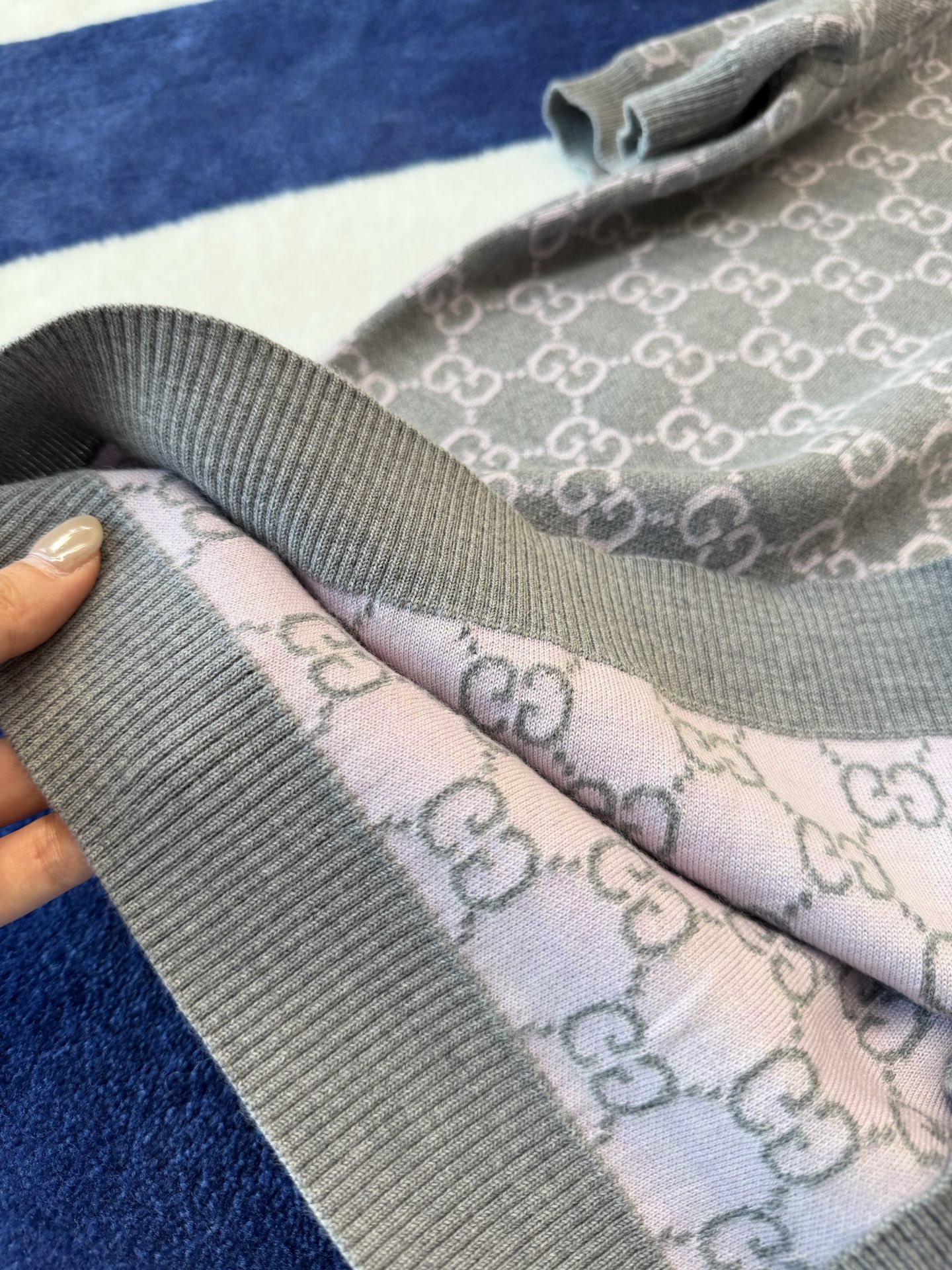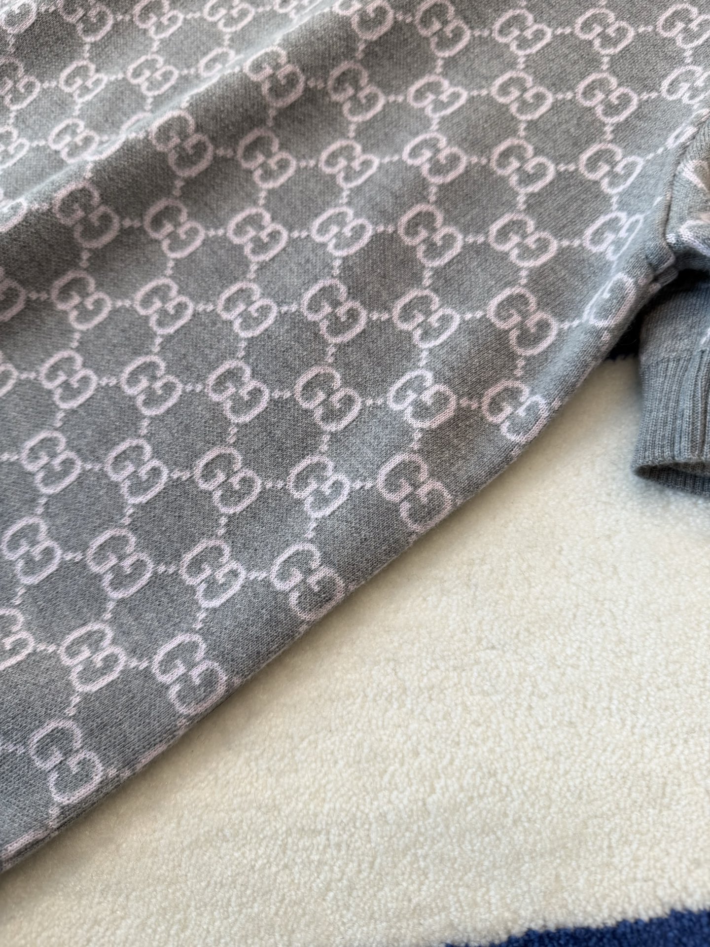 採用細緻羊毛提花針織材質製作,織片密度高、紋理細膩,經過特殊洗水處理後,整體觸感更加柔軟滑順,貼膚不刺癢。