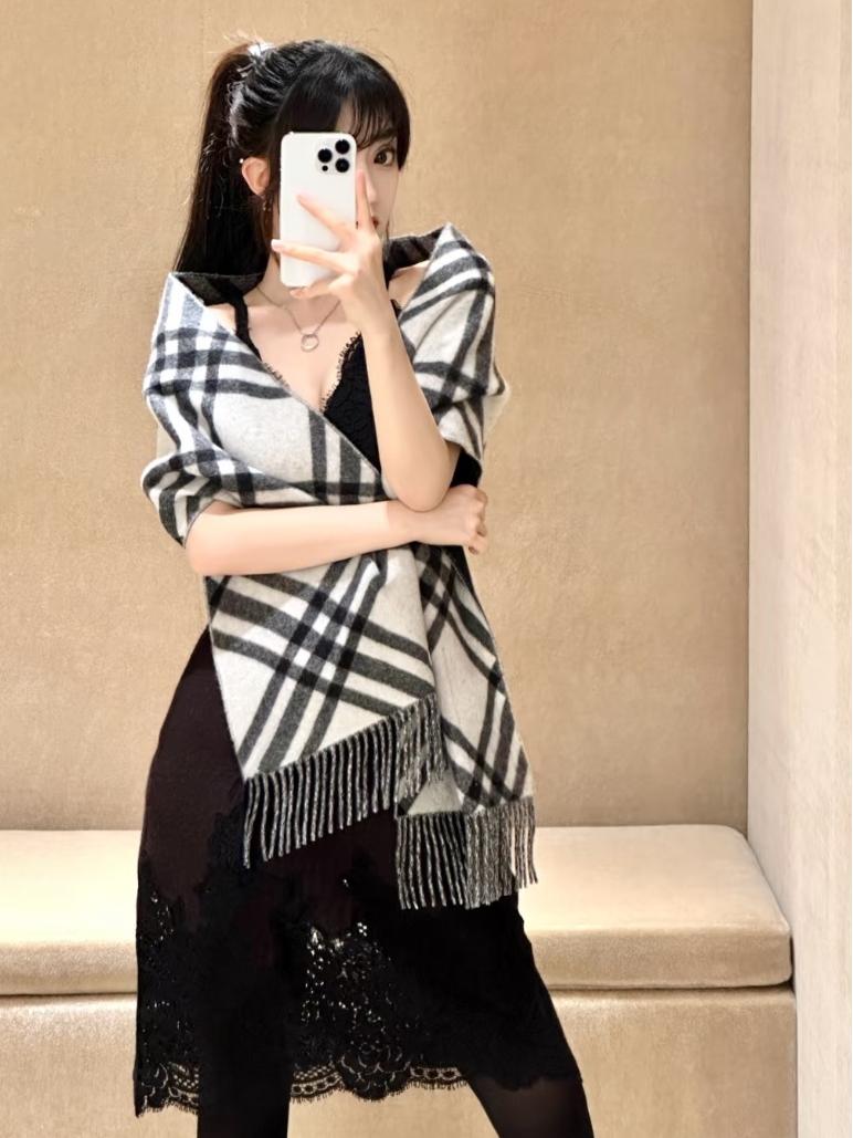 2025秋冬新品 Bur家 羊絨格紋流蘇圍巾