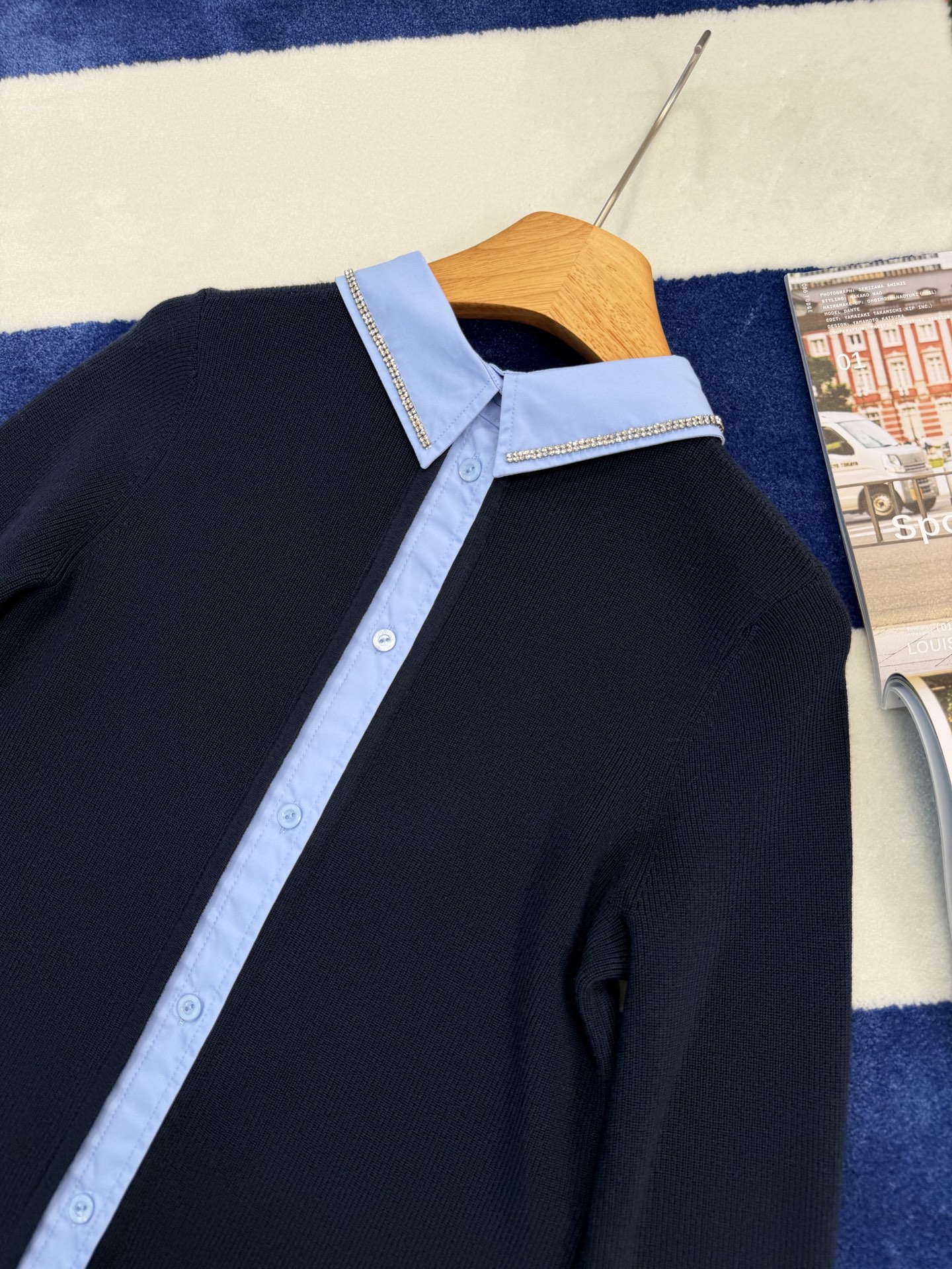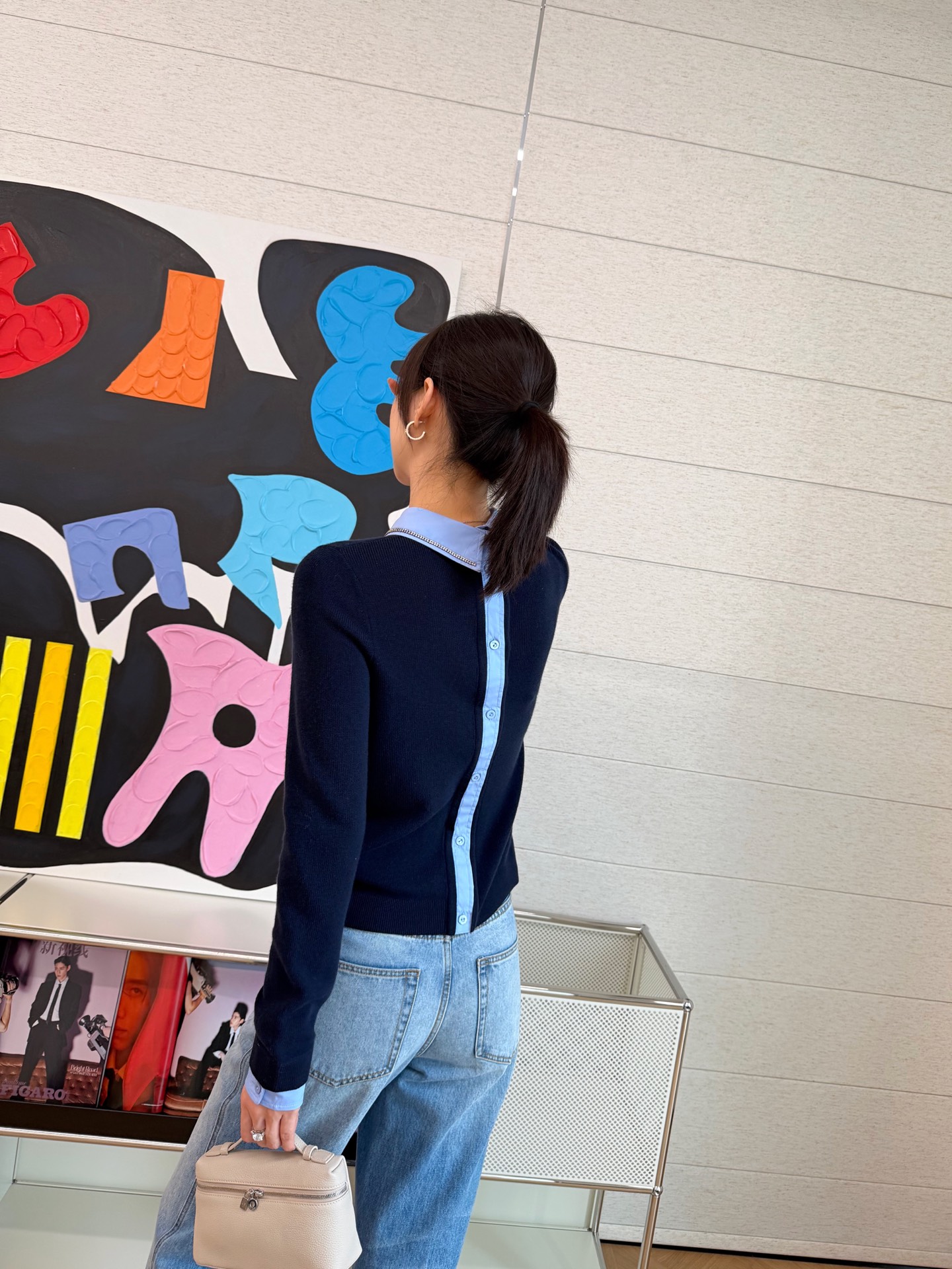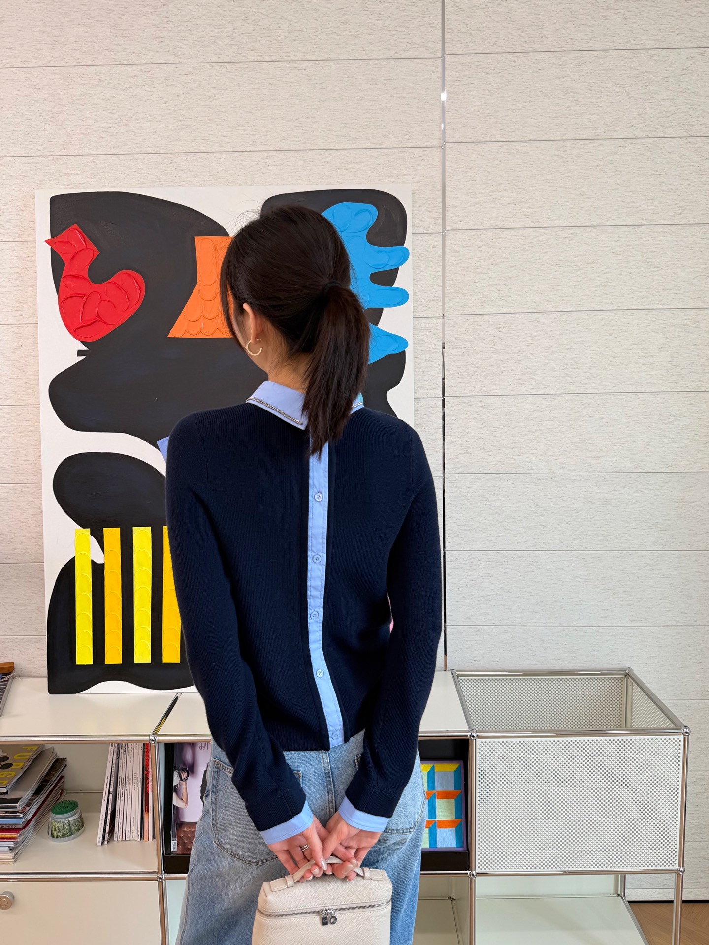 假兩件的設計把羊毛針織與襯衫元素結合在一起,不用另外搭配就能輕鬆穿出層次,對於不想花太多時間想穿搭的人來說,真的非常加分。