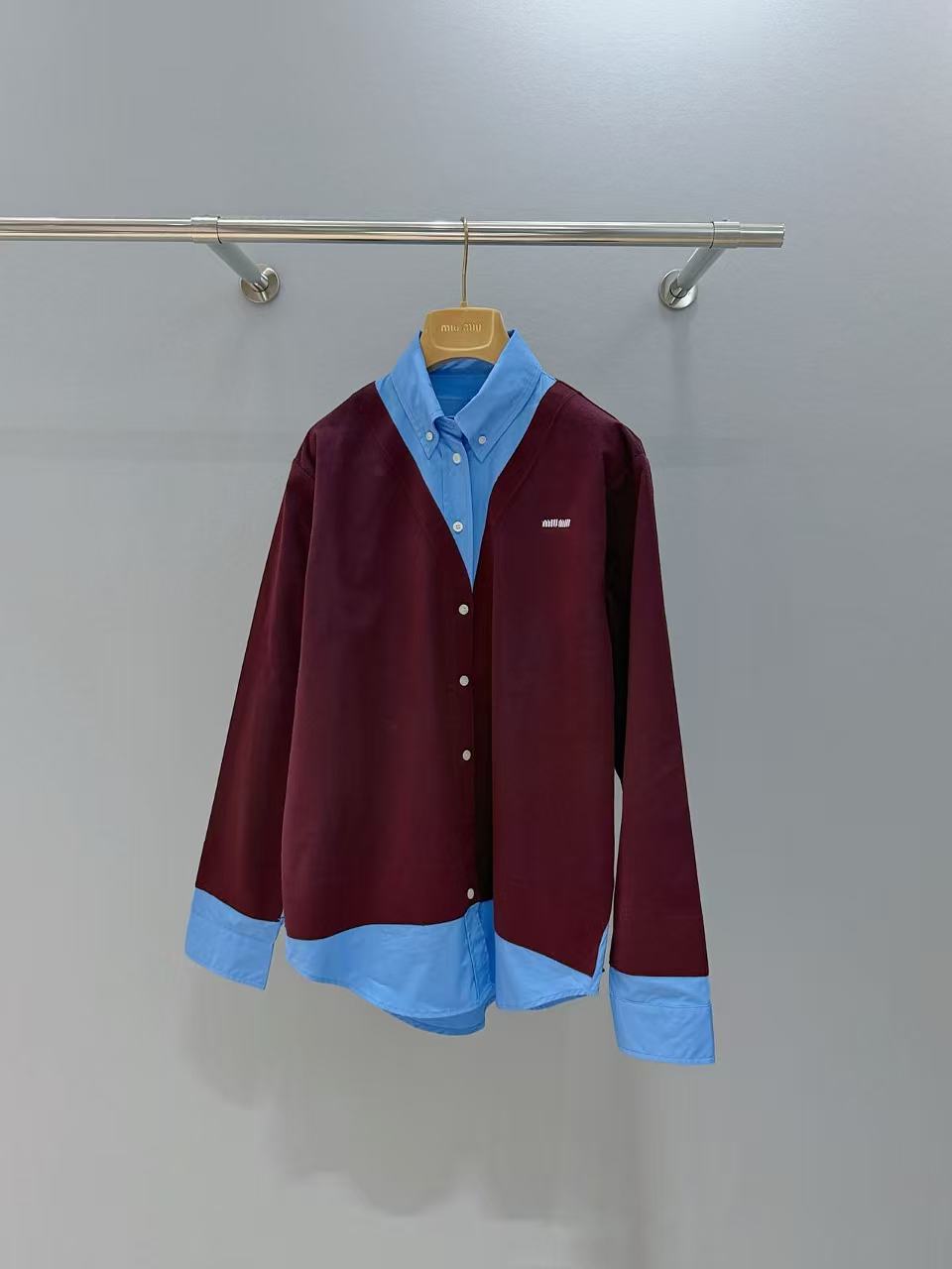 Miu家 撞色拼接羊毛襯衫