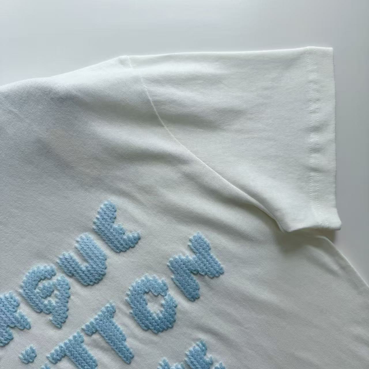 毛線刺繡:胸前的刺繡圖案,使用了仿針織肌理的刺繡工藝,並選用了特殊的、帶有羊毛質感的鬆軟紗線進行刺繡。這種獨特的刺繡工藝,讓圖案看起來立體感十足,摸起來柔軟蓬鬆,完美還原了專櫃的品質。