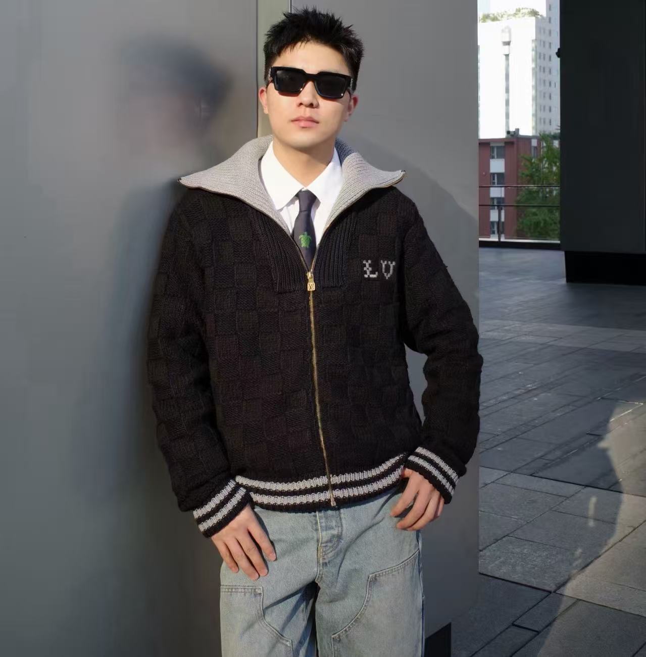 經典符碼的溫潤重塑:25秋冬 Damier 棋盤格紋針織拉鍊外套