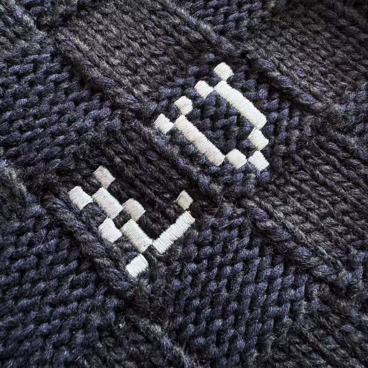 Damier 棋盤格紋始終是品牌的靈魂核心。這款 25秋冬系列針織外套,將原本硬挺的格紋符碼轉化為柔軟且具備溫度的針織質地。