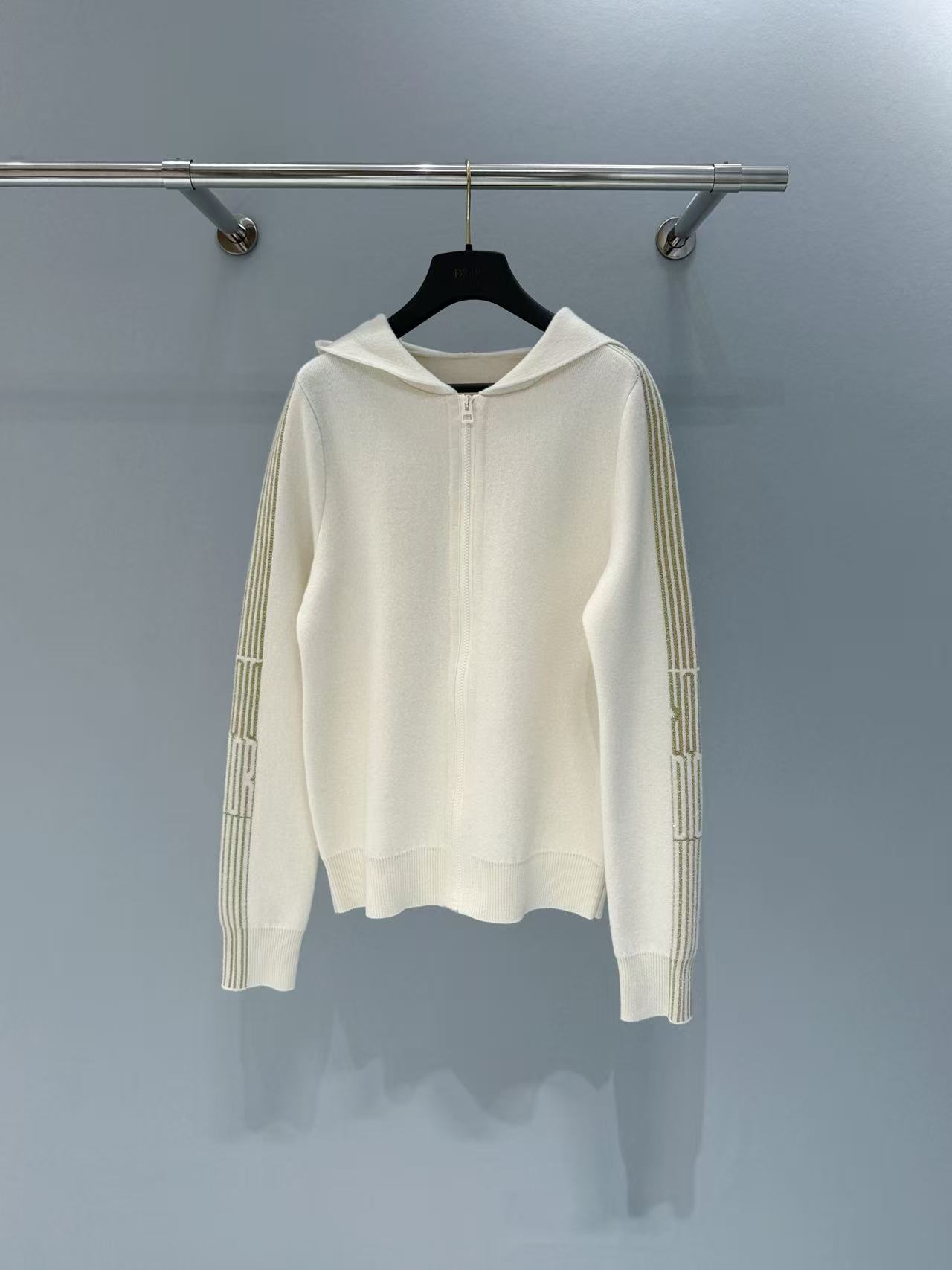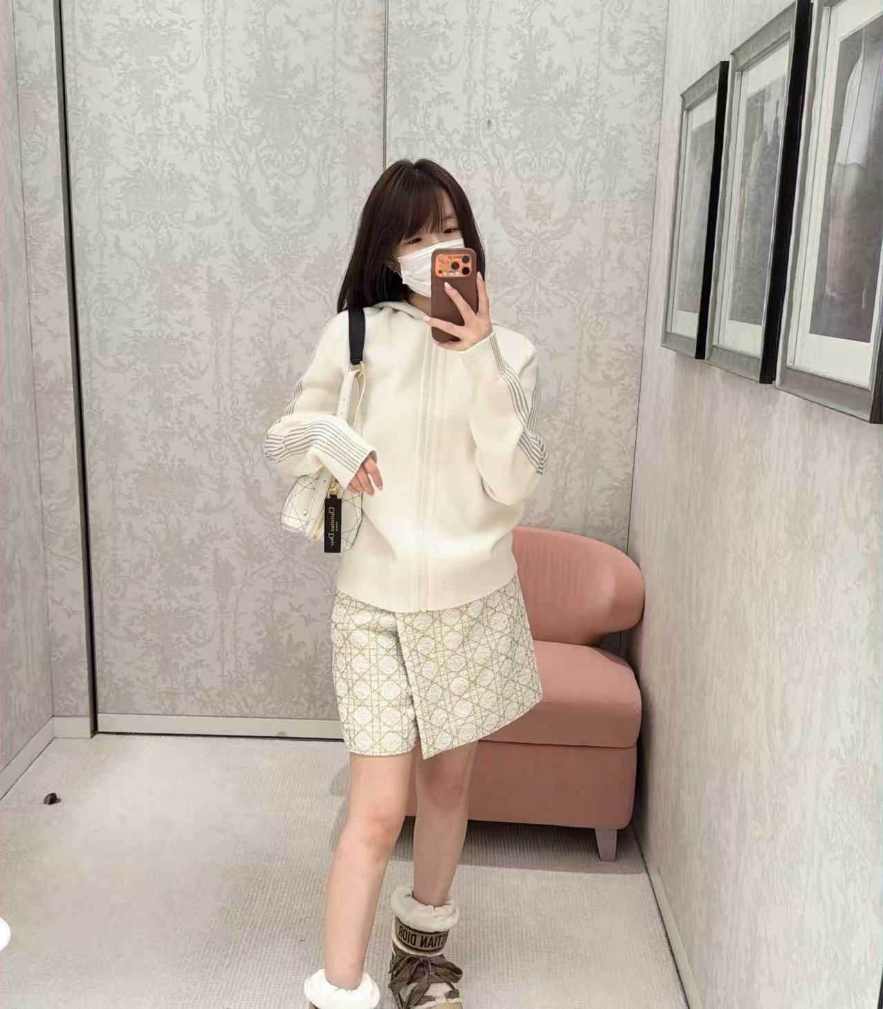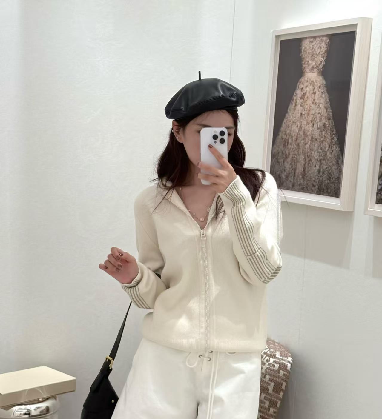 設計是經典拉鍊連帽款,袖子與前襟都有低調的Oblique滿版提花,遠看乾淨、近看才有驚喜,辨識度很高卻一點都不張揚。