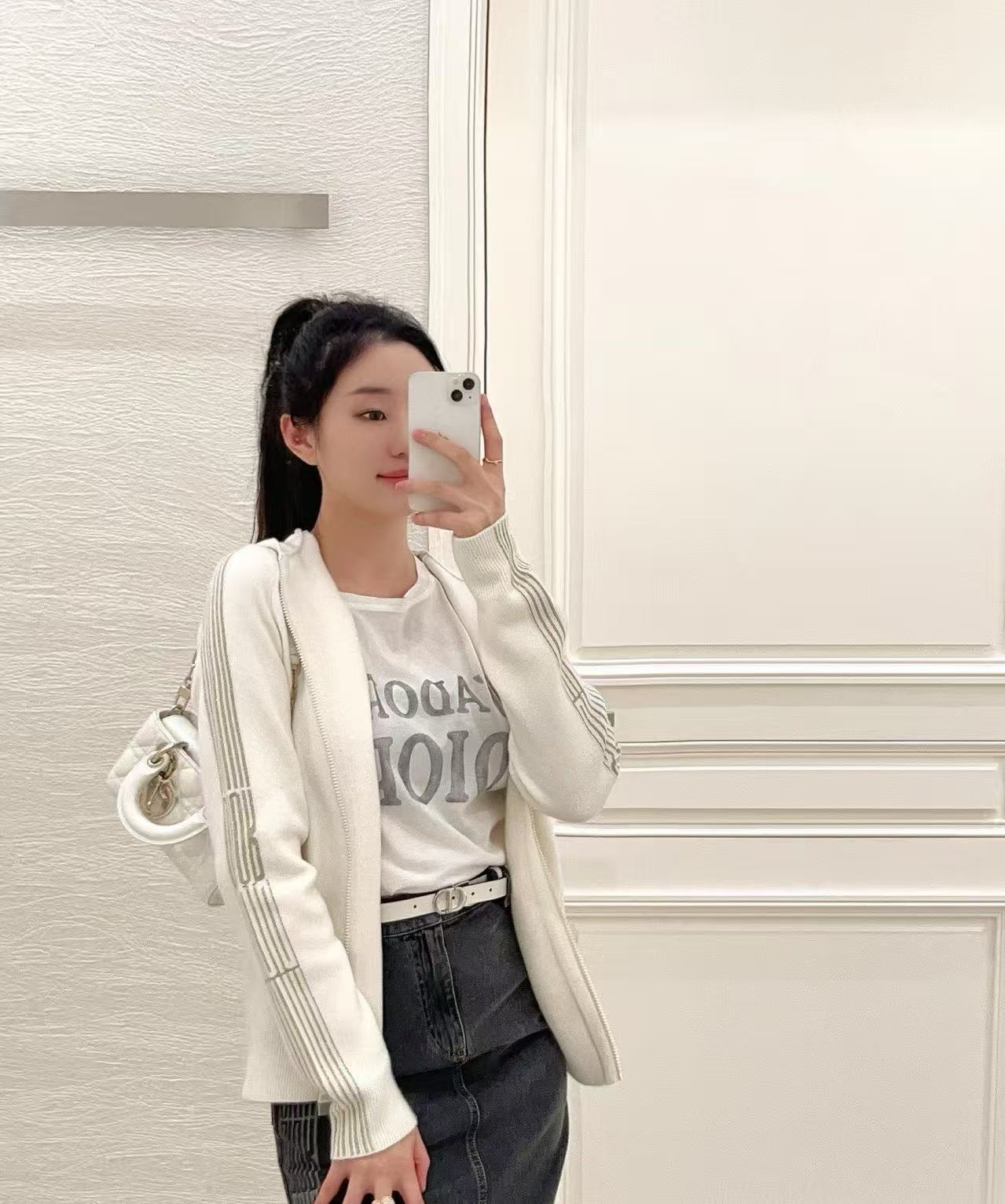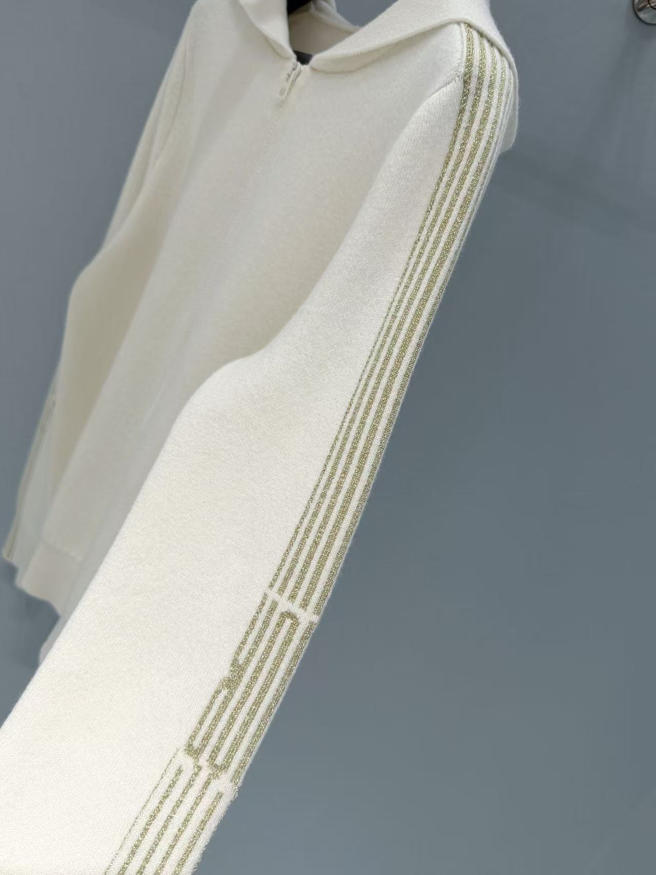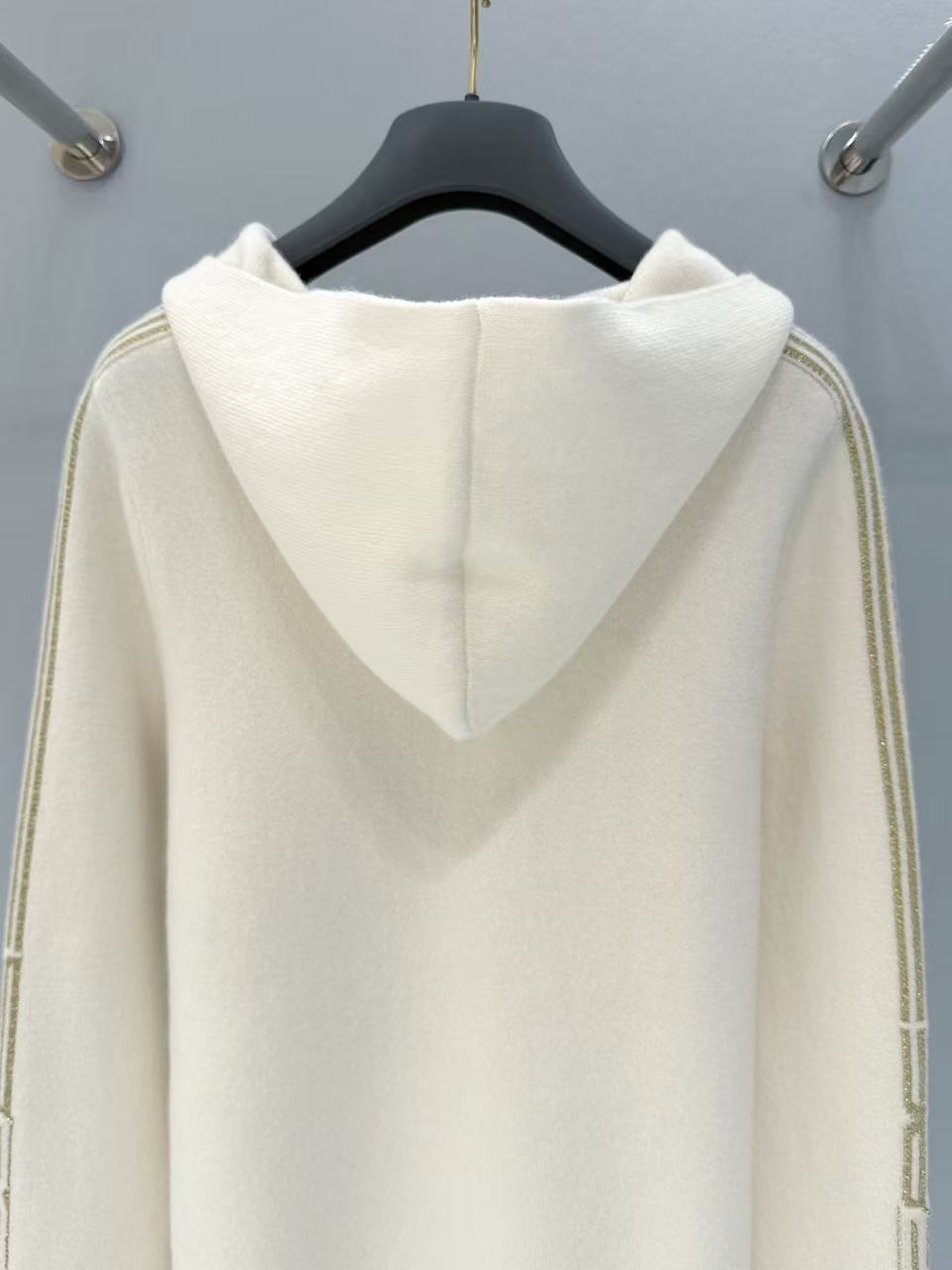 設計是經典拉鍊連帽款,袖子與前襟都有低調的Oblique滿版提花,遠看乾淨、近看才有驚喜,辨識度很高卻一點都不張揚。