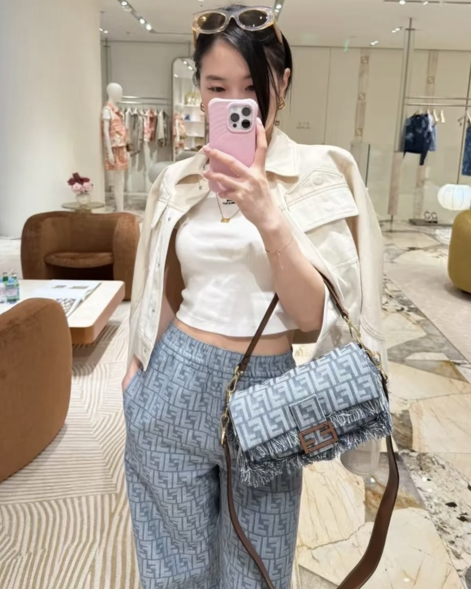 以經典法棍包型為基礎,結合牛仔提花與標誌性的 FF 元素,展現獨特又耐看的設計感。