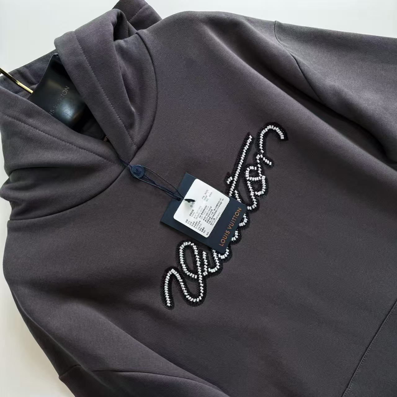 2025秋冬新品 L家 串珠繡手寫字母連帽衛衣