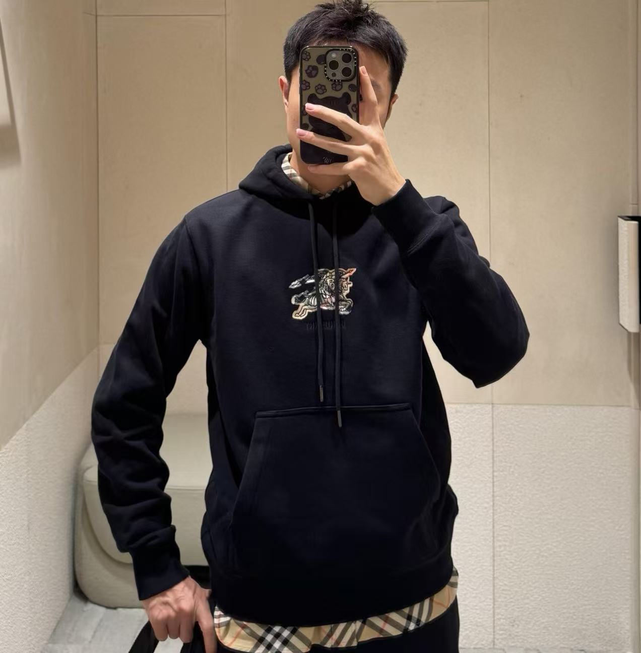 BUR家 格紋戰馬刺繡連帽衛衣