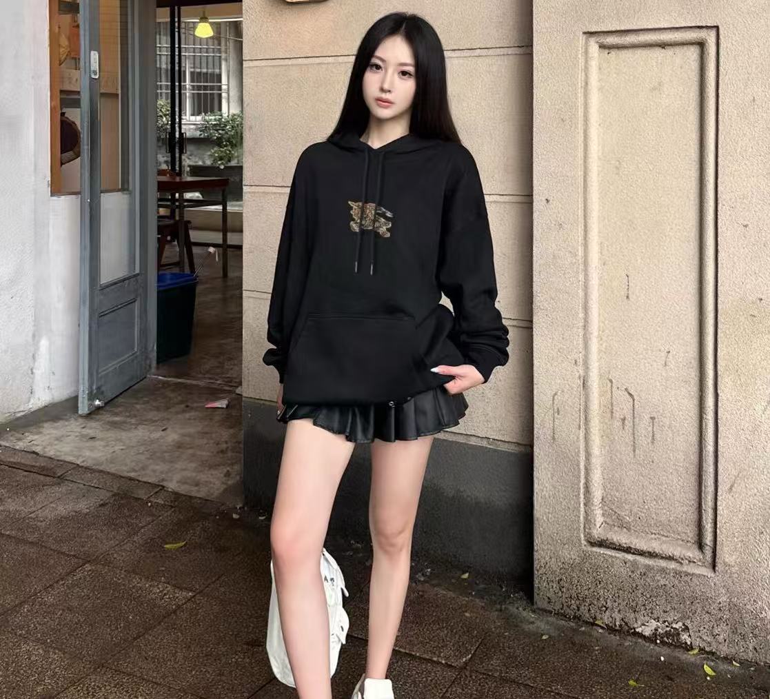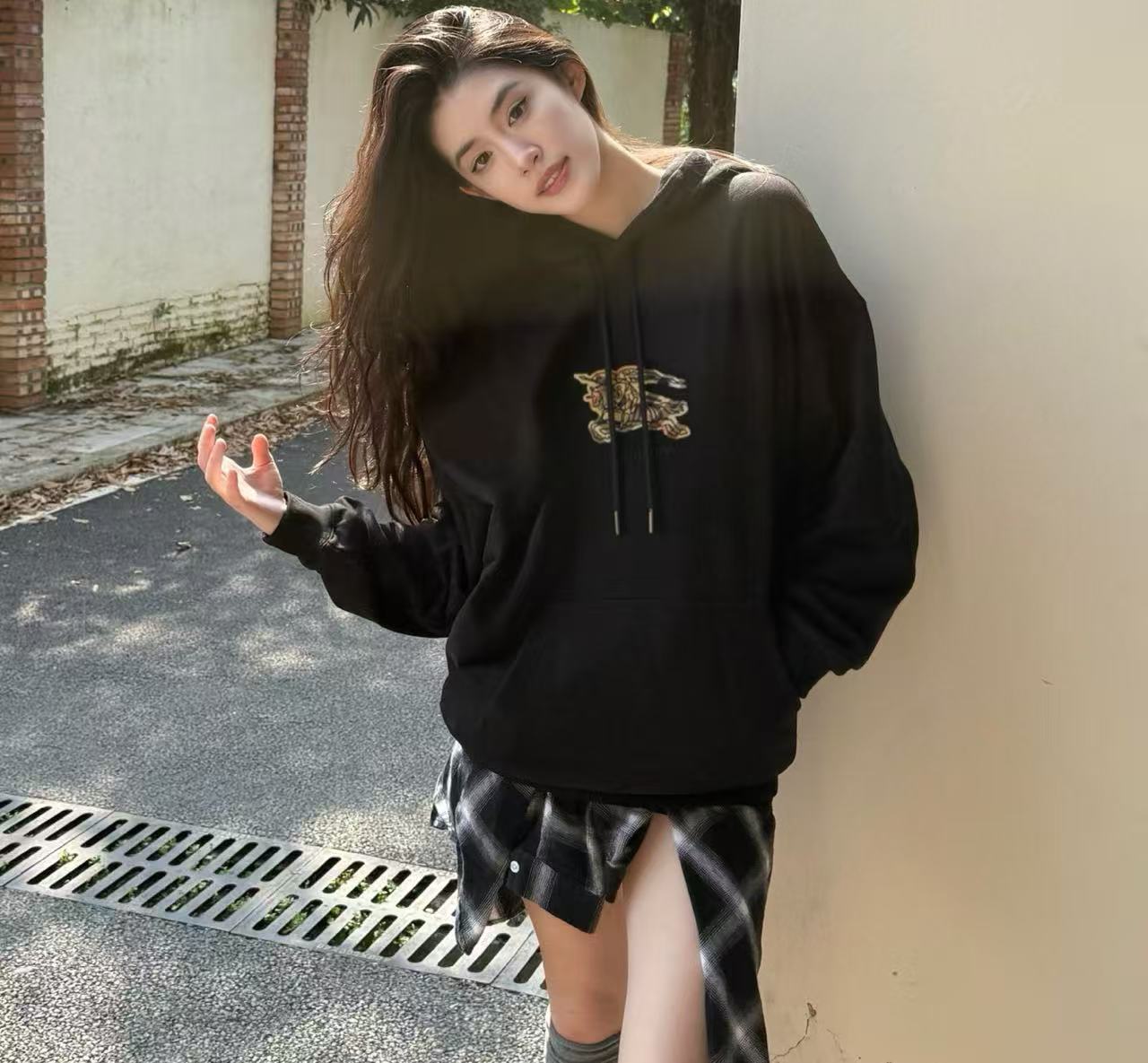 2025早秋新品 BUR家 格紋戰馬刺繡連帽衛衣