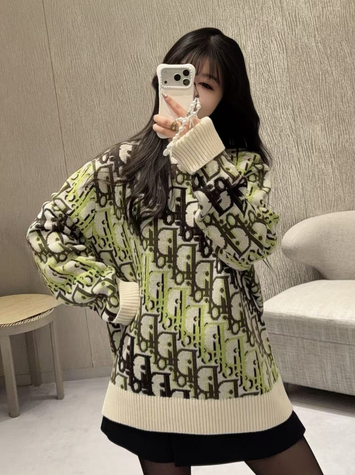 2026早春 D家 綠色滿版老花毛衣