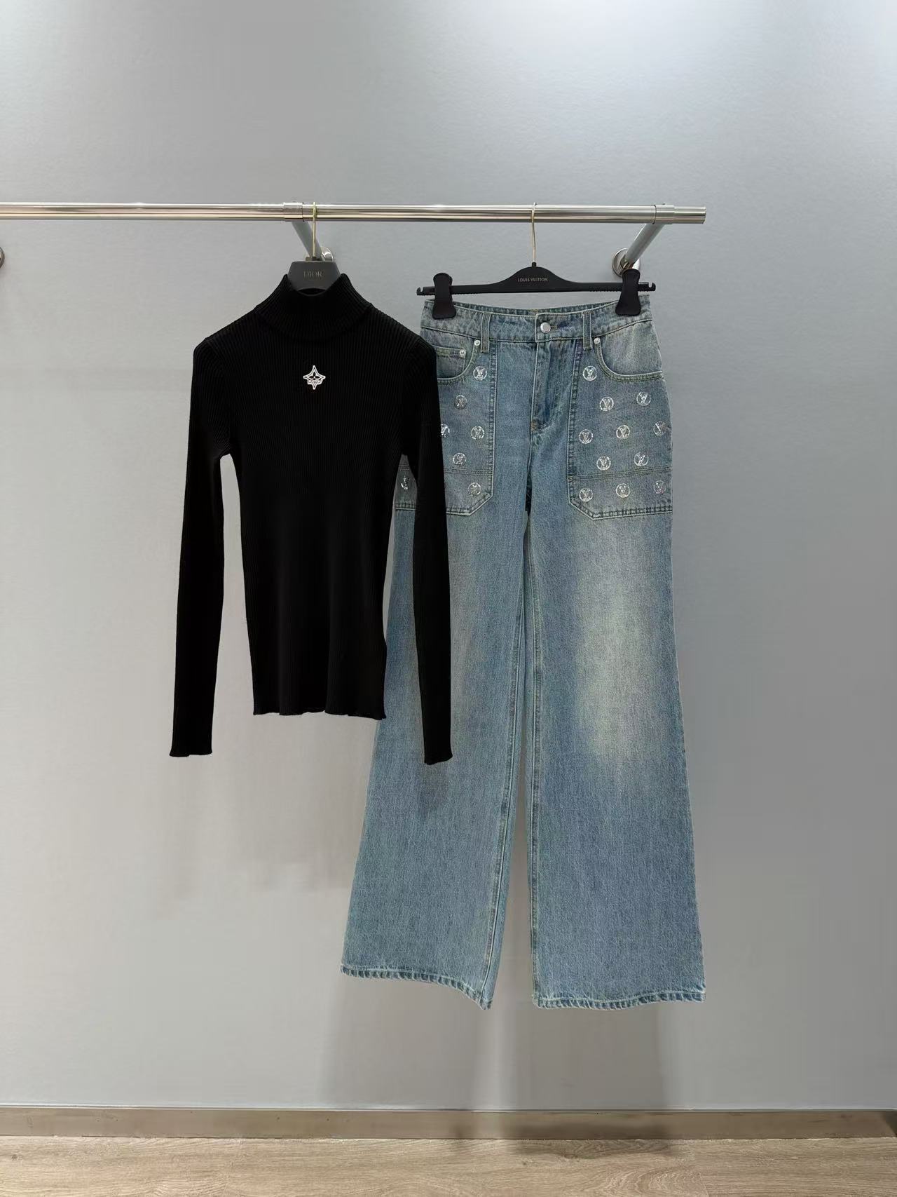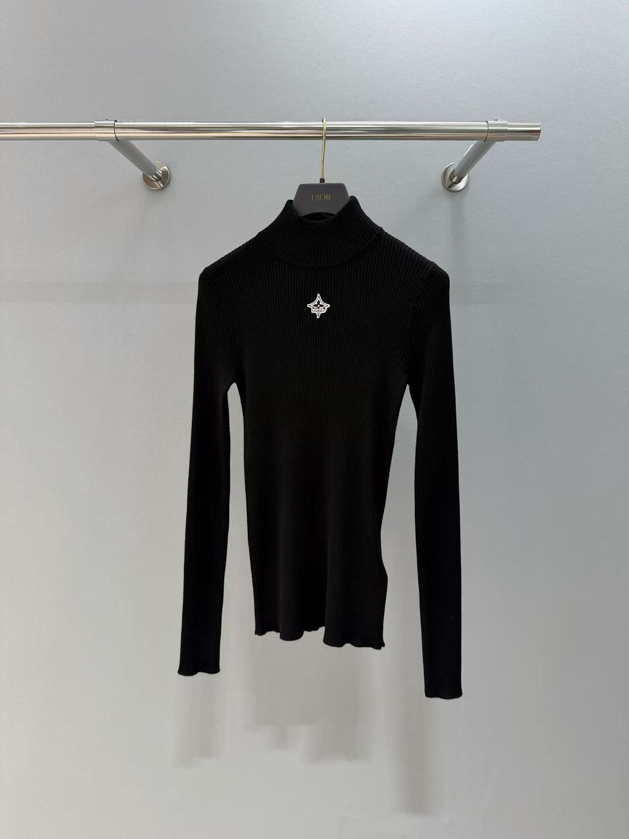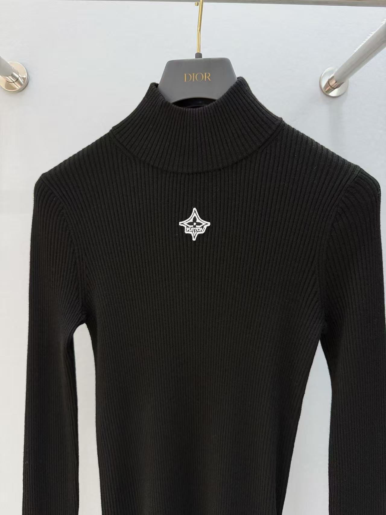 2025早秋 L家 標誌刺繡黑高領針織衫