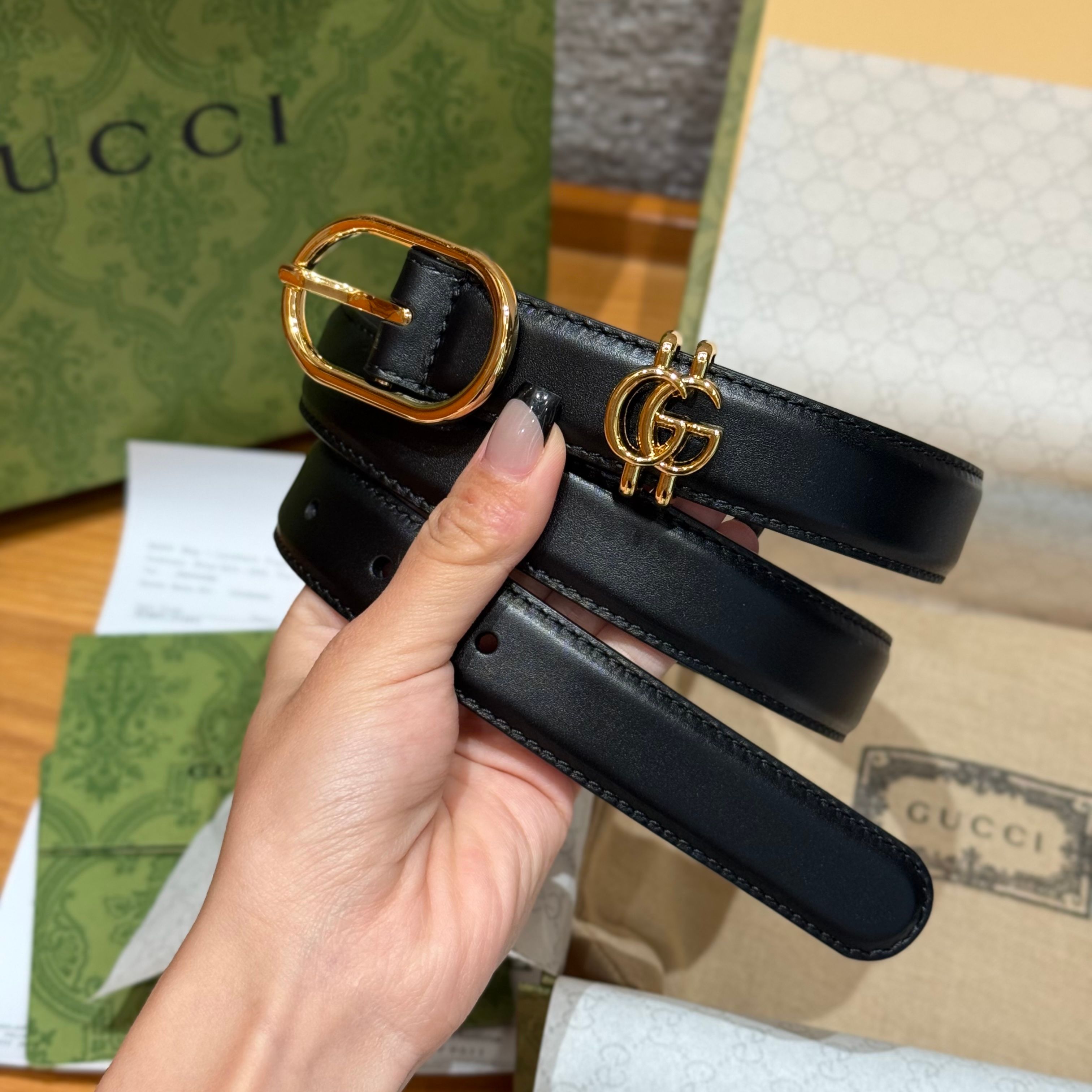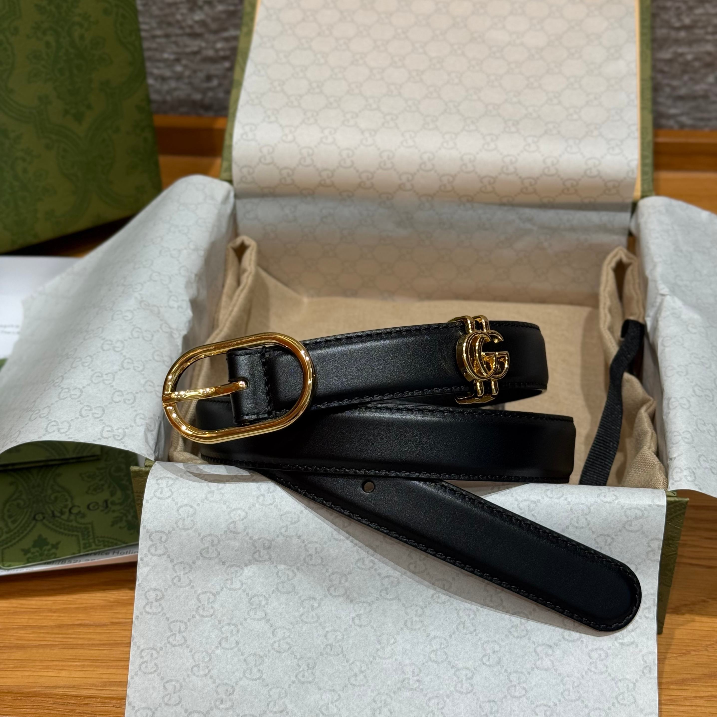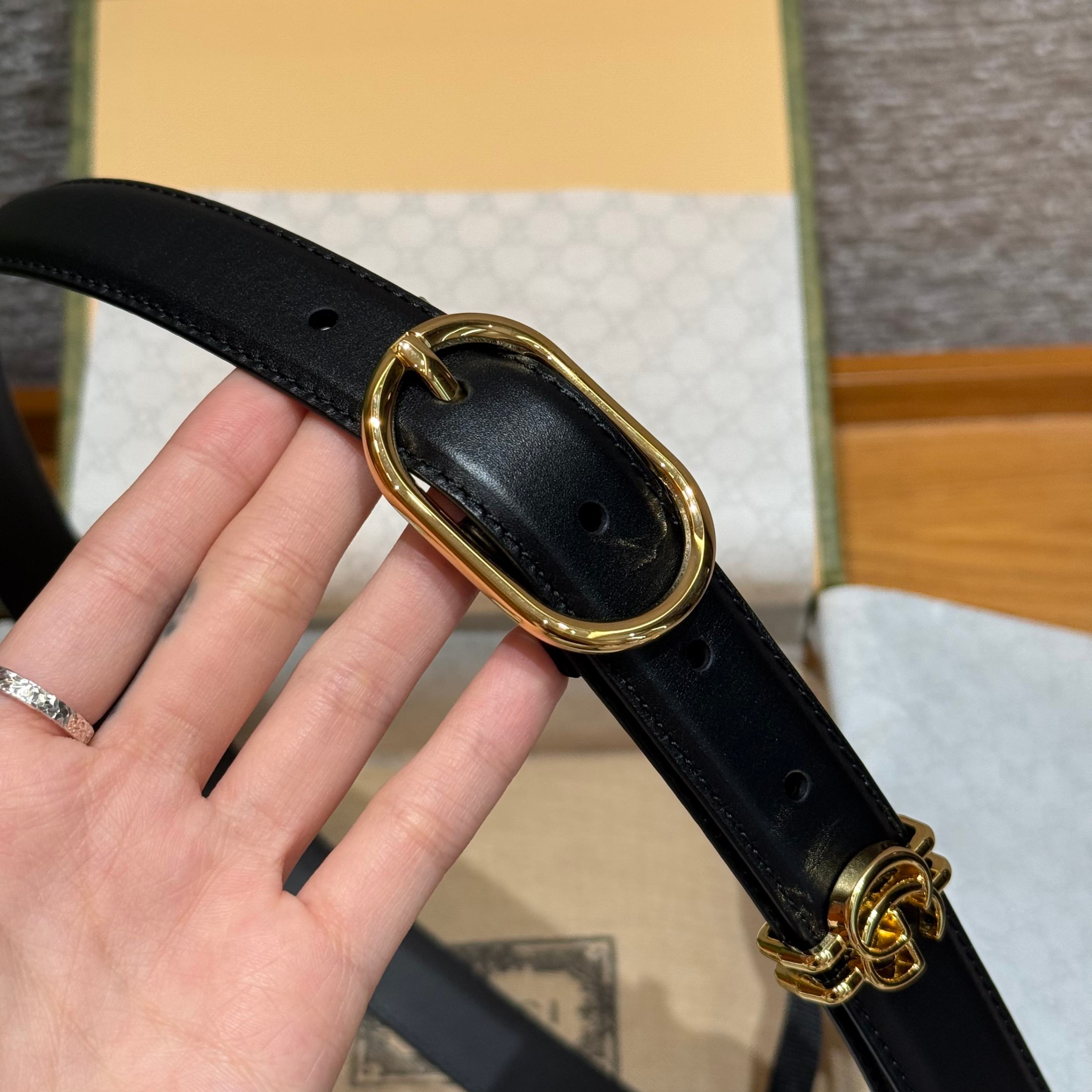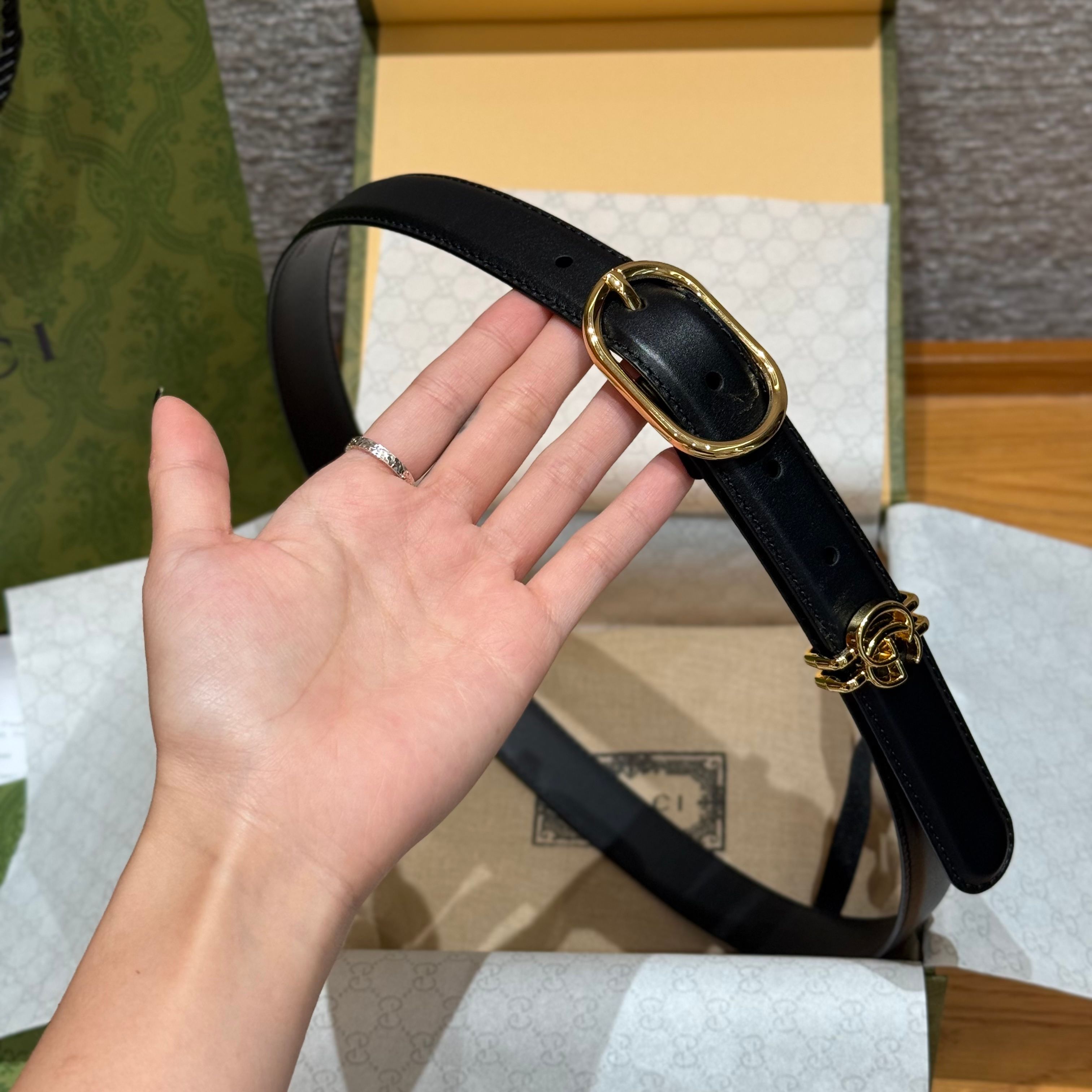 這款雙G腰帶,低調中帶著一抹奢華光芒。