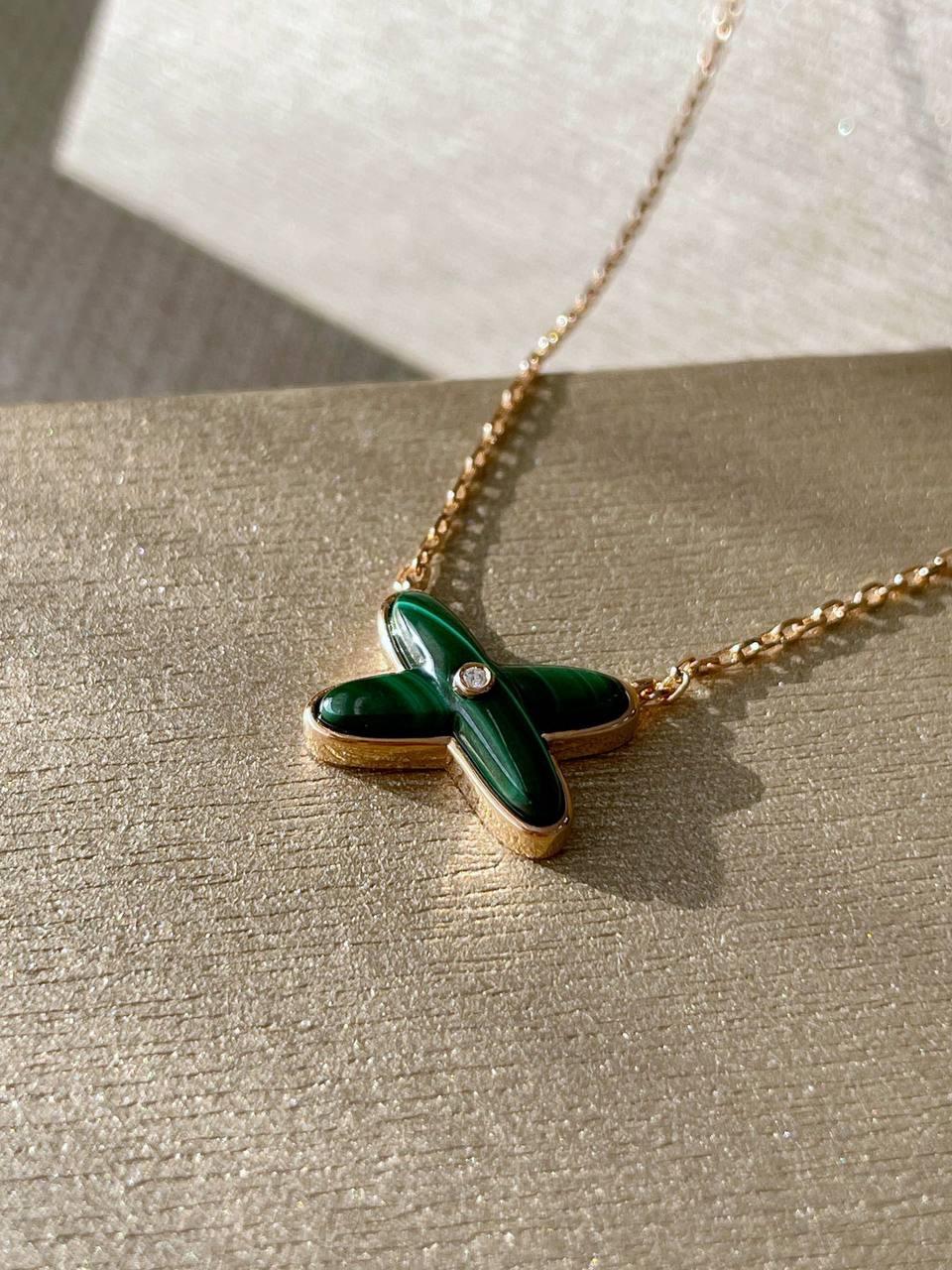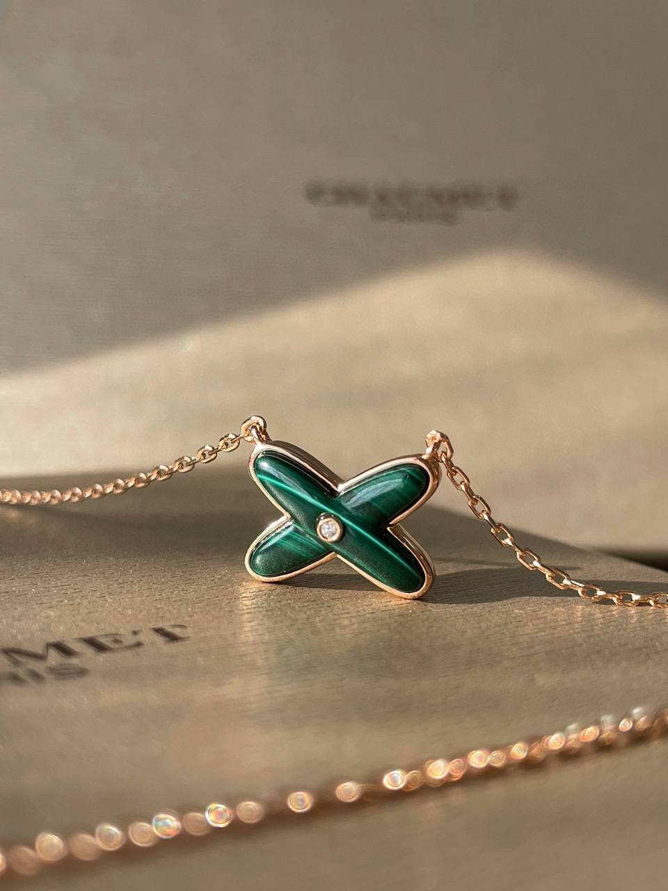項鏈(孔雀石玫瑰金) / 鏈長37cm,另有4.5cm延長鏈,吊墜寬約1.2cm / $ 2,280