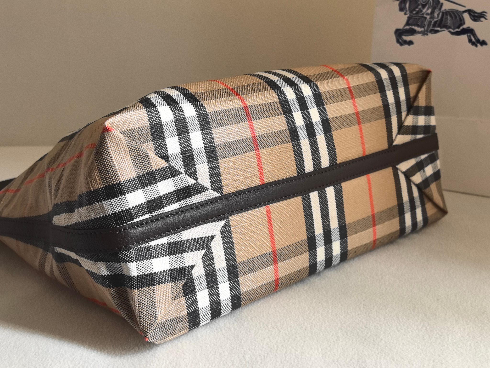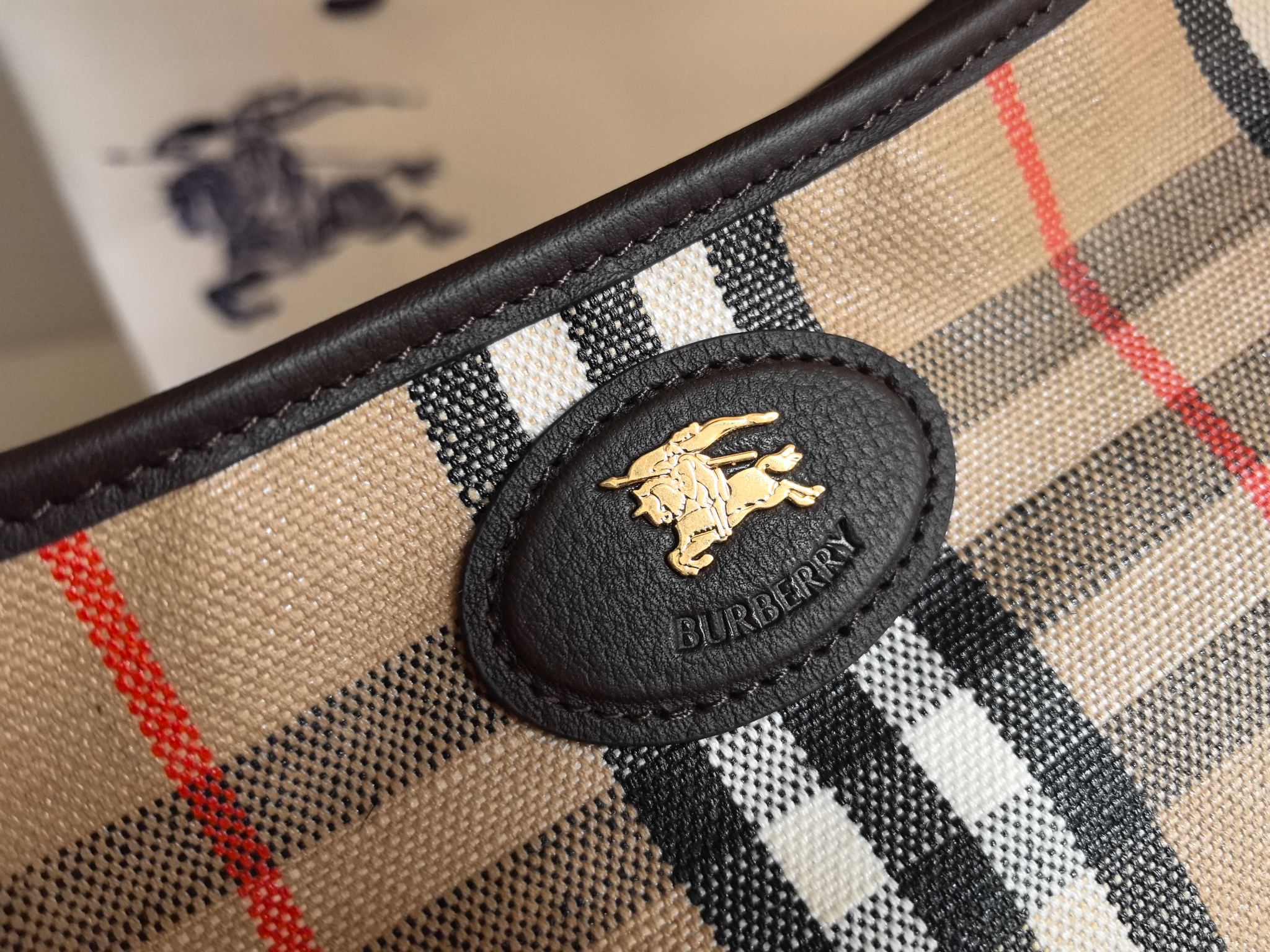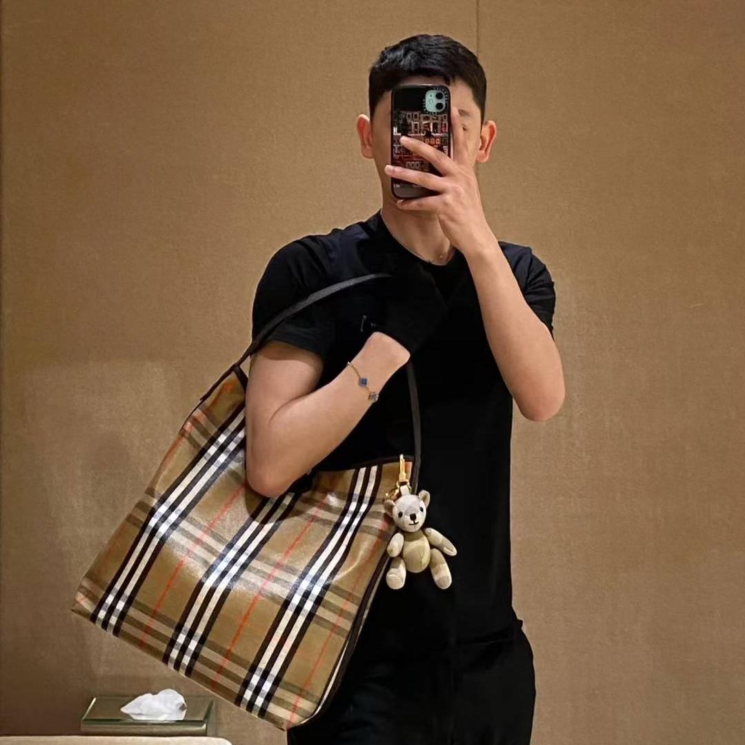 經典 Bur 格紋以提花織法呈現,細節之處更顯工藝之美。風衣靈感的涂層處理,搭配騎士印章徽標皮革飾牌,處處都能看見對於傳承的堅持與對細節的講究。