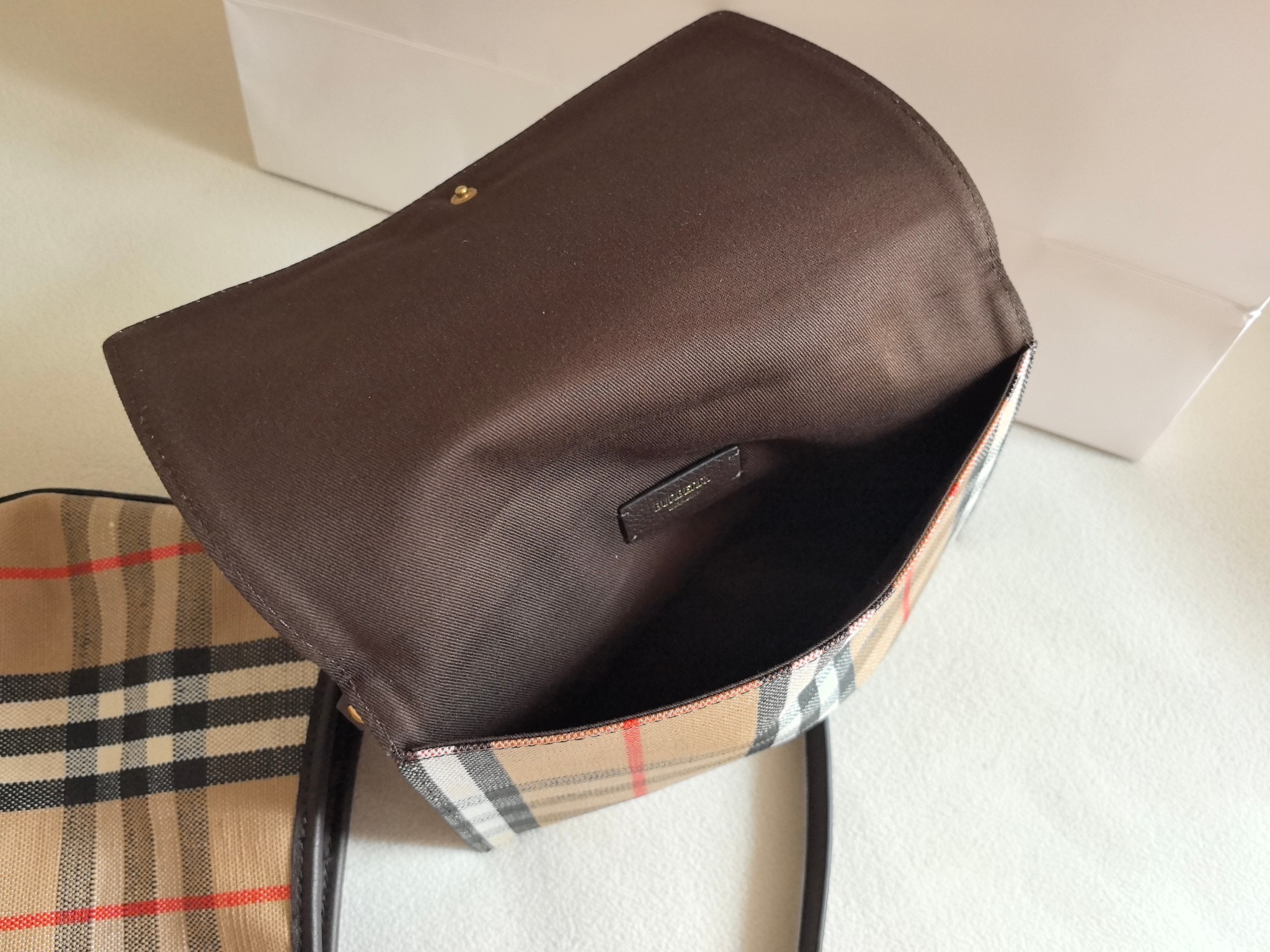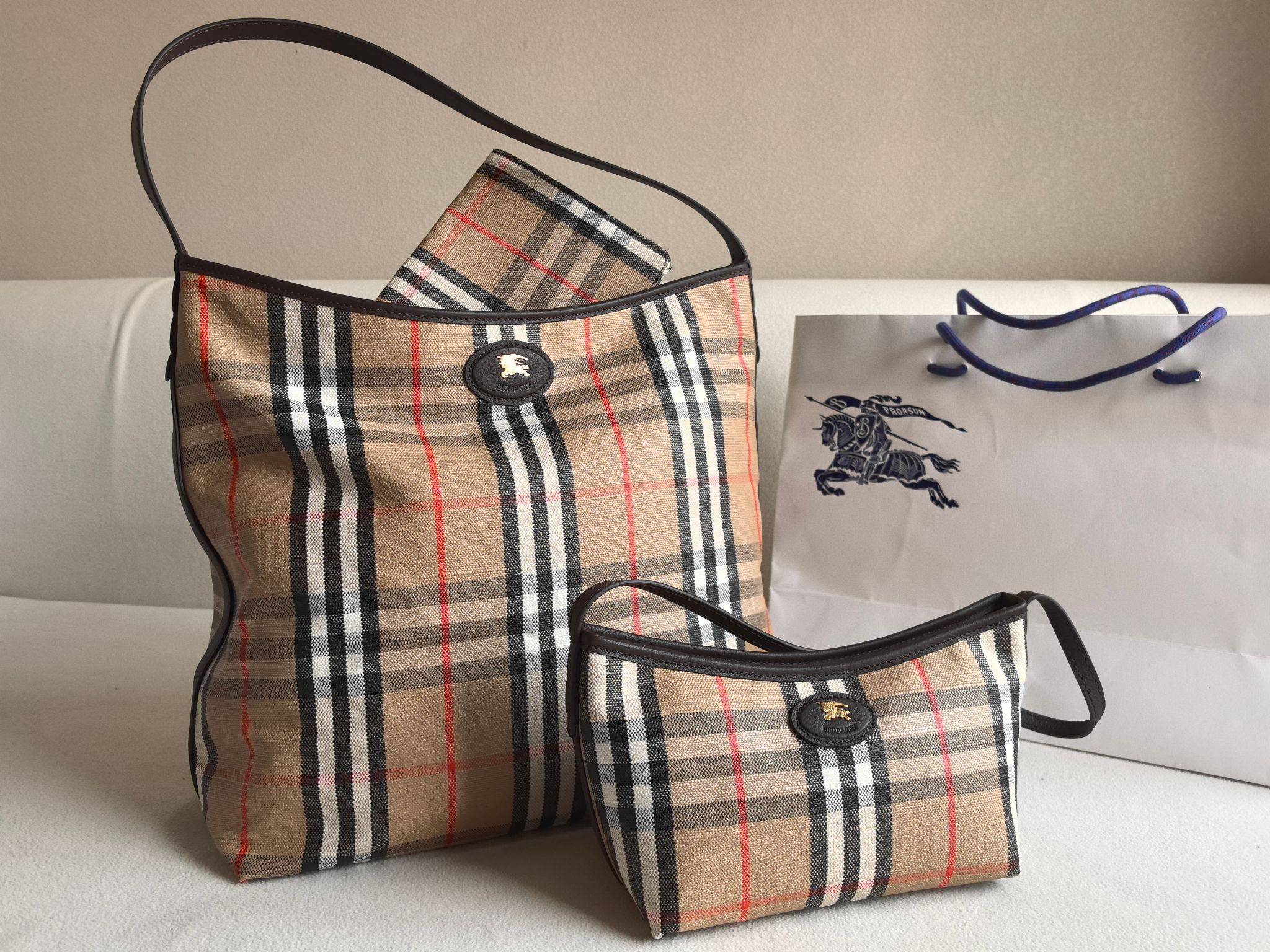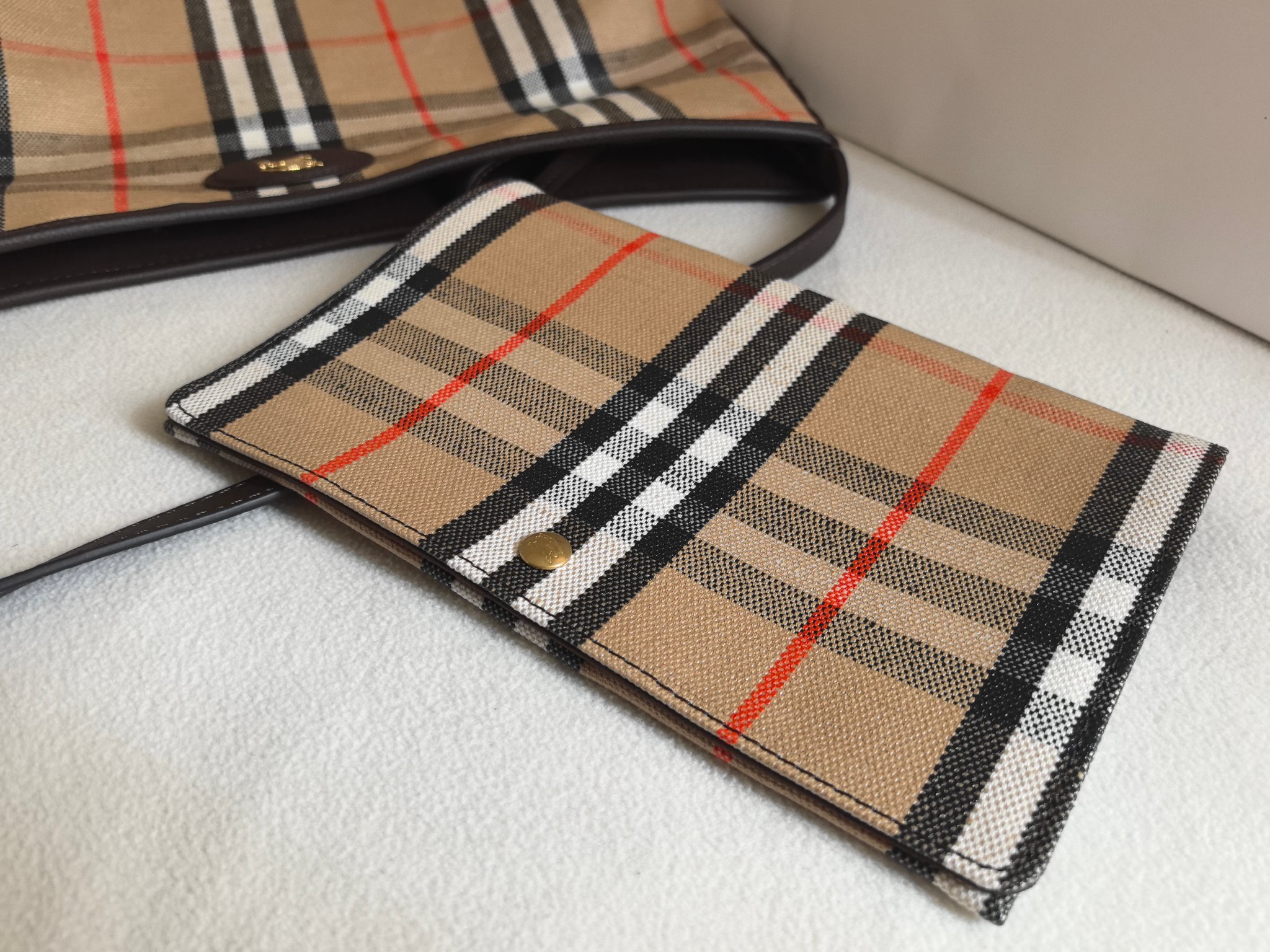 經典 Bur 格紋以提花織法呈現,細節之處更顯工藝之美。風衣靈感的涂層處理,搭配騎士印章徽標皮革飾牌,處處都能看見對於傳承的堅持與對細節的講究。