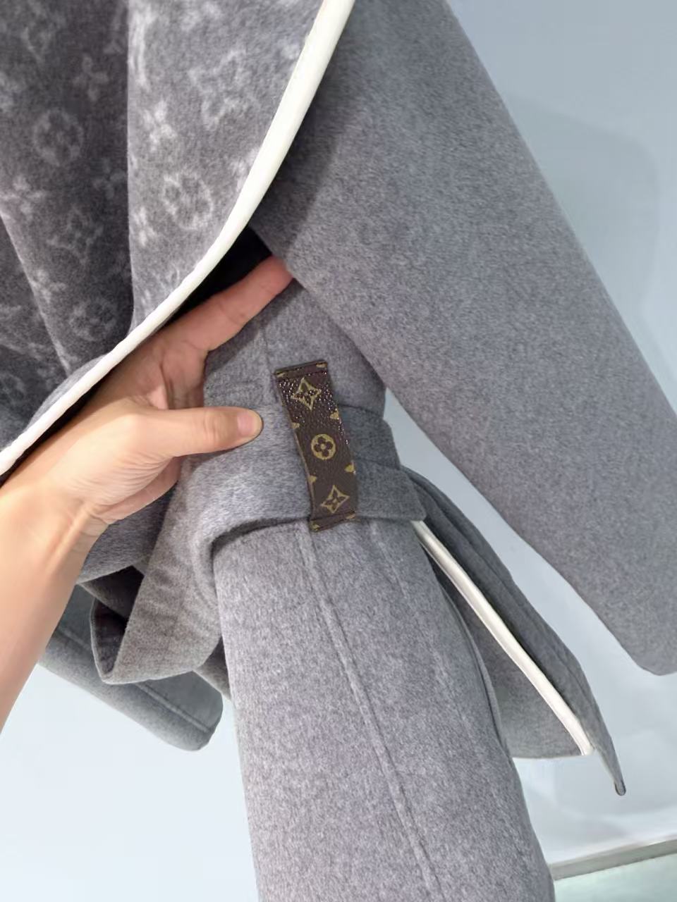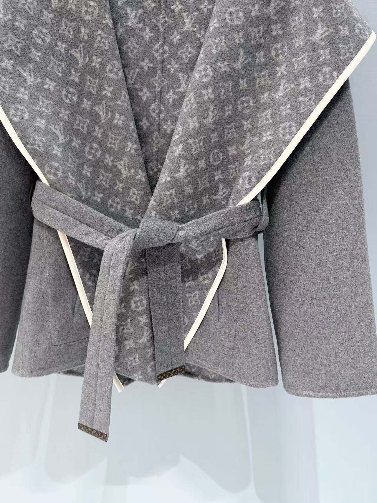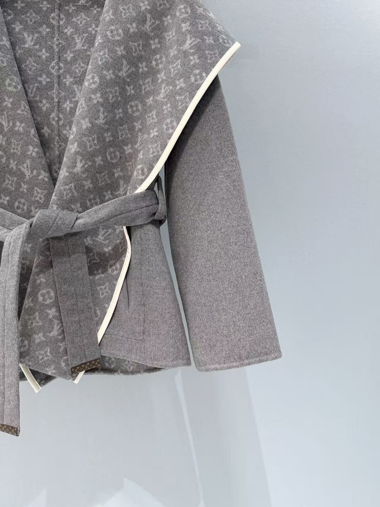 2025秋冬 L家 灰色雙面老花繫帶短款大衣