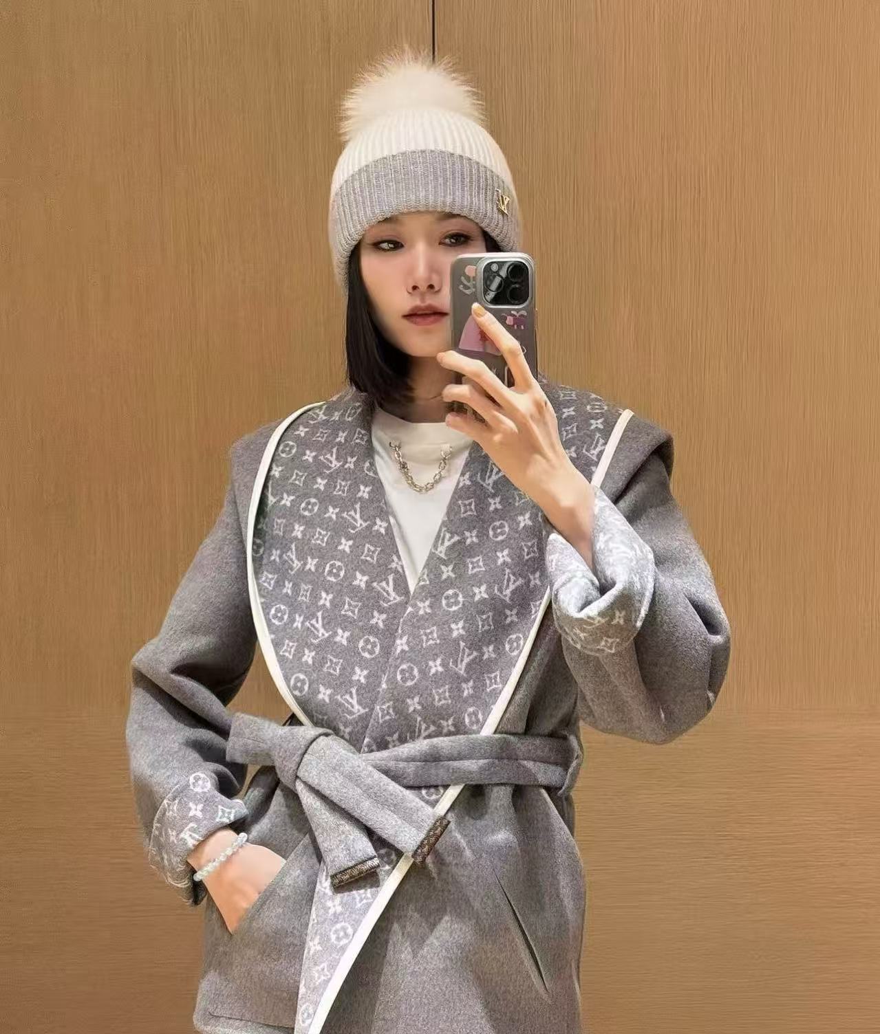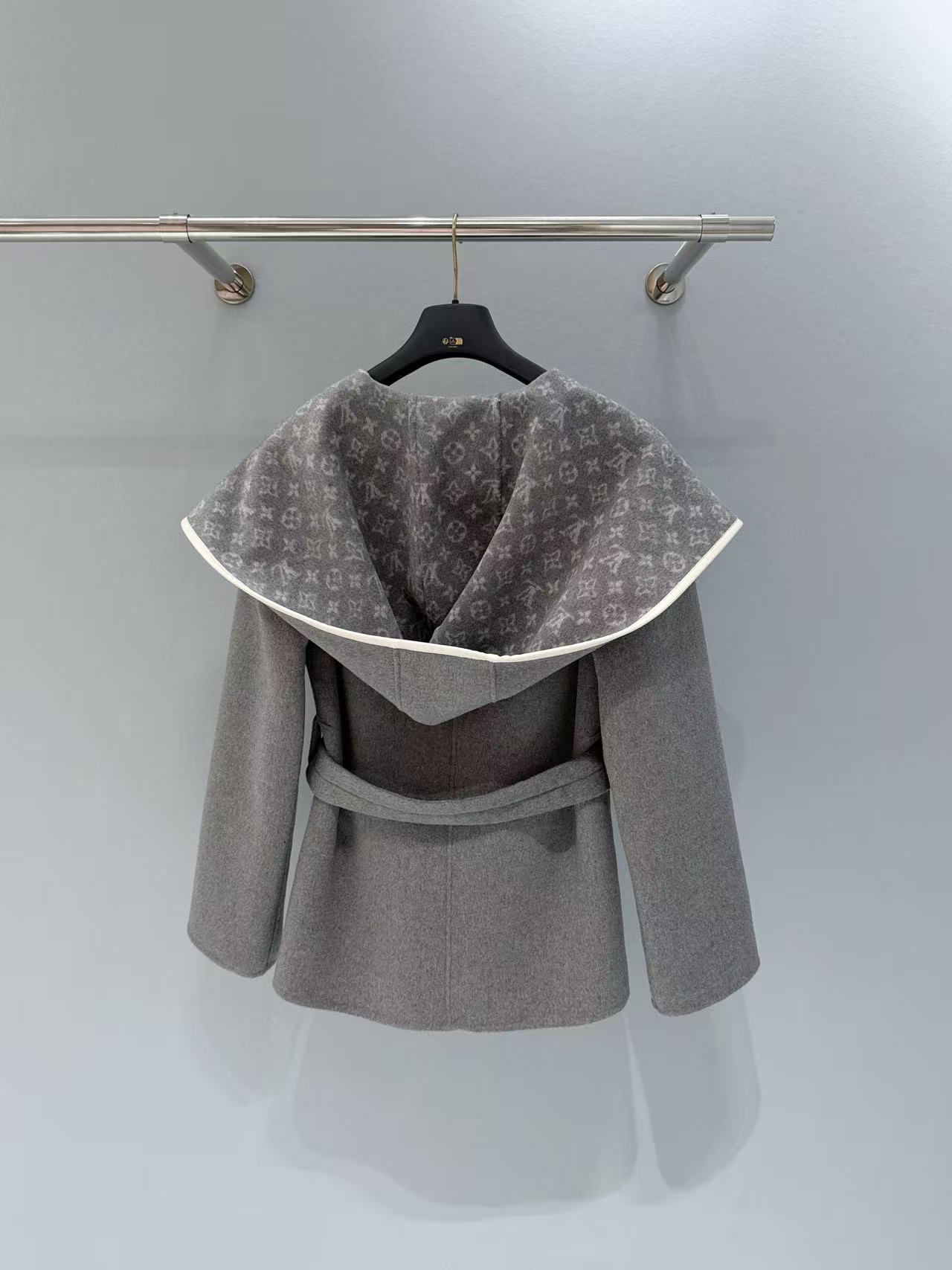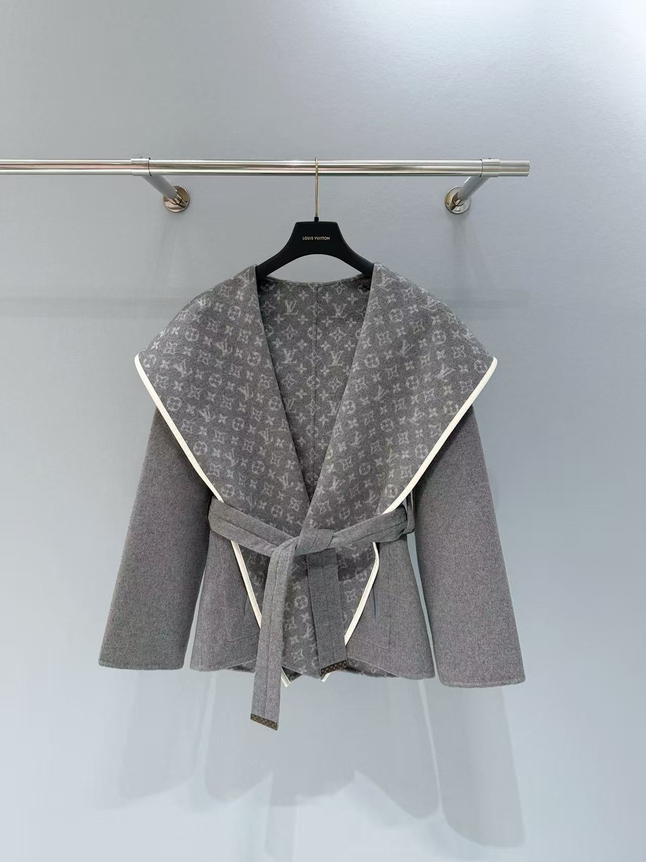 2025秋冬 L家 灰色雙面老花繫帶短款大衣