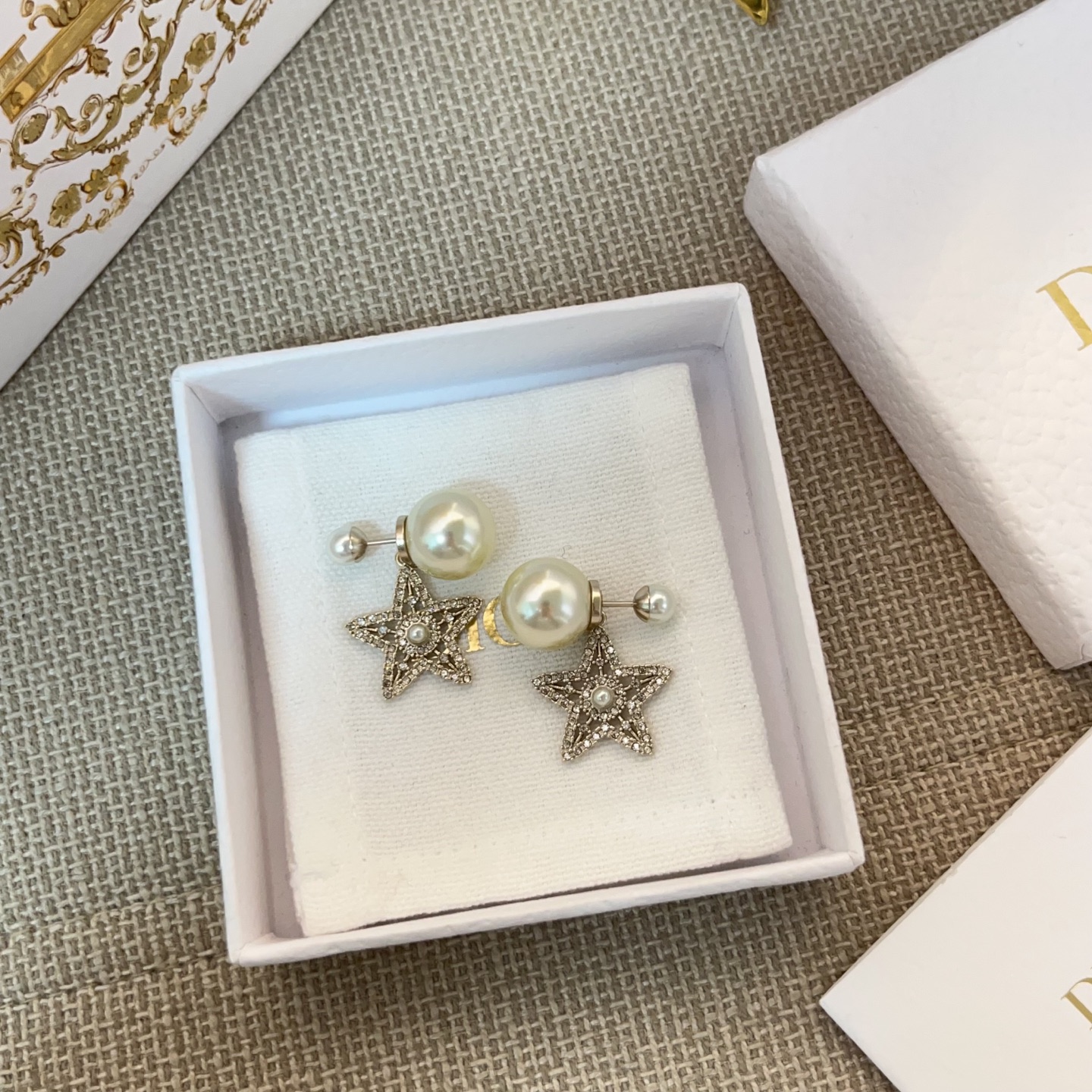 下方搭配大小珍珠垂墜設計,讓整體比例更加修長,也讓耳際線條顯得更柔美。