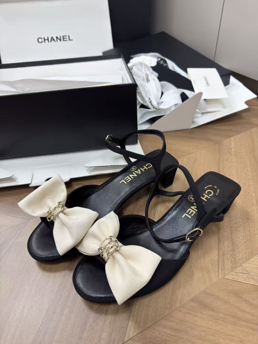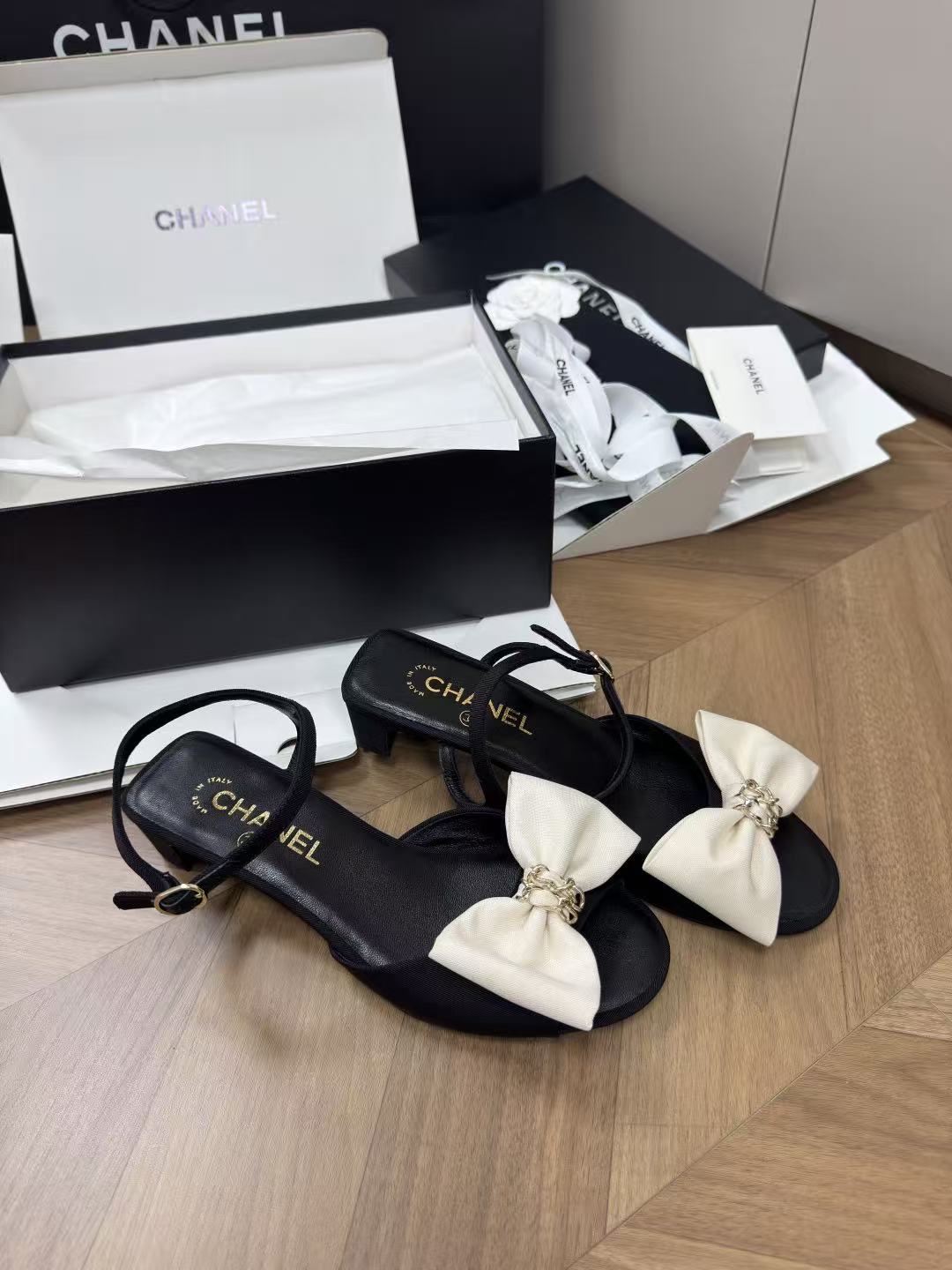 蝴蝶結不僅是裝飾,更是跨越時代的女性化符碼。這次分享的 2025 早春(25K)黑色圓頭低跟涼鞋,完美定義了何謂「精品級的甜美」。