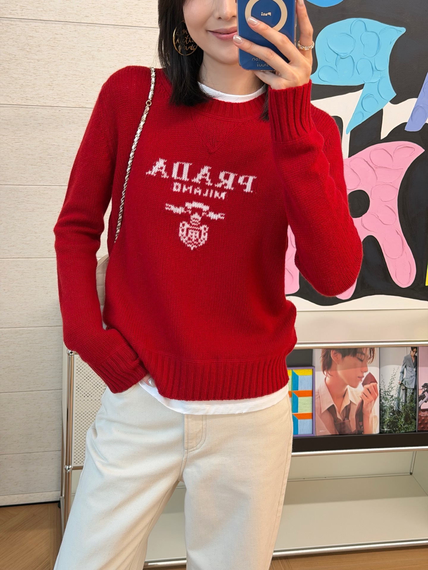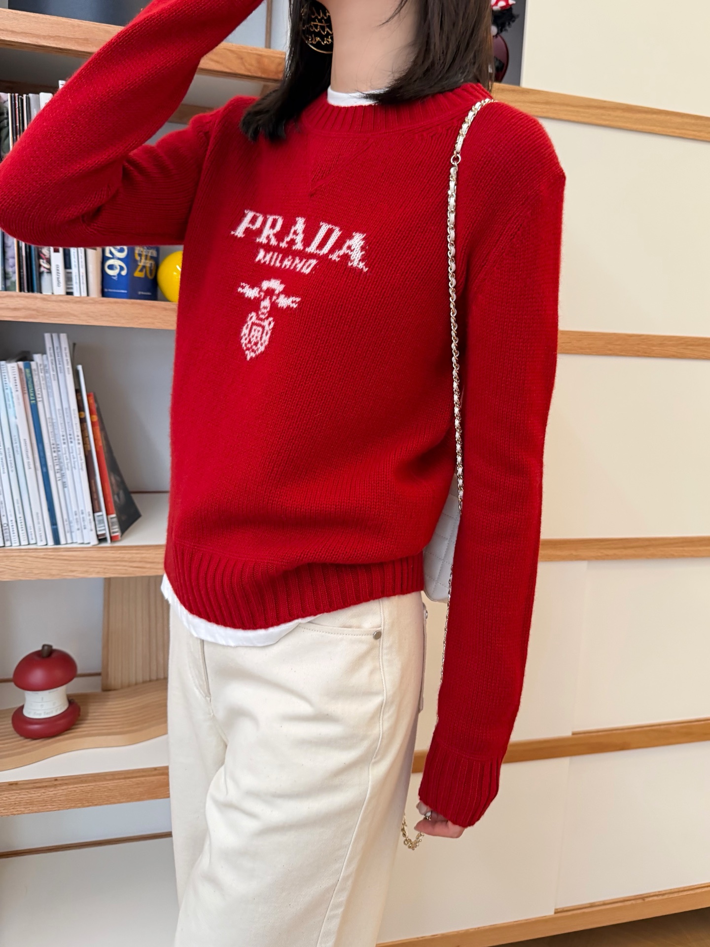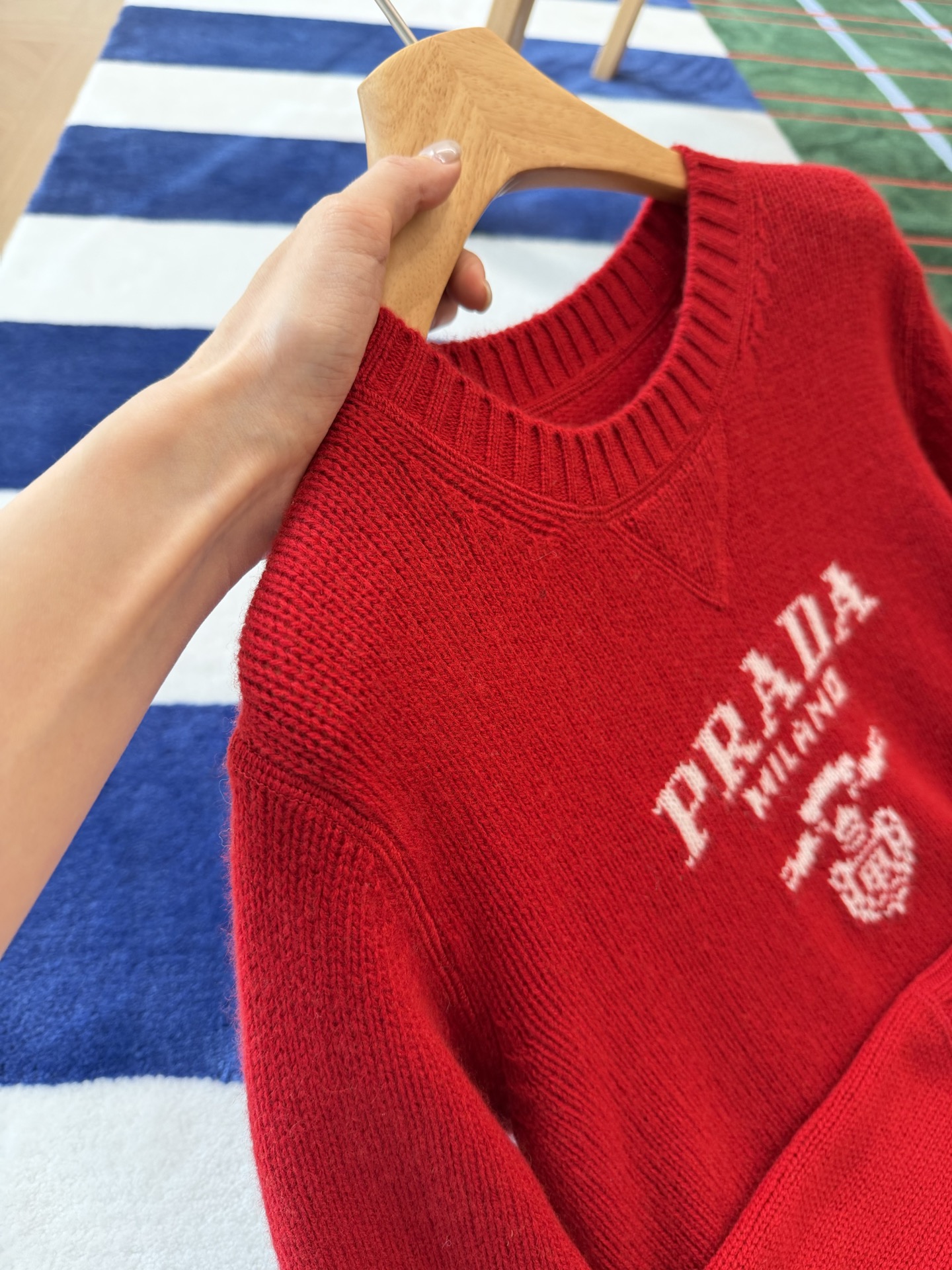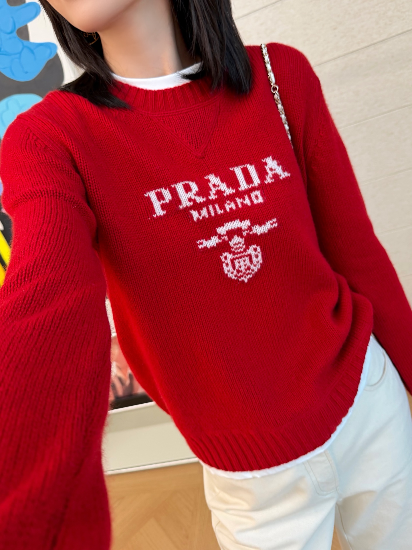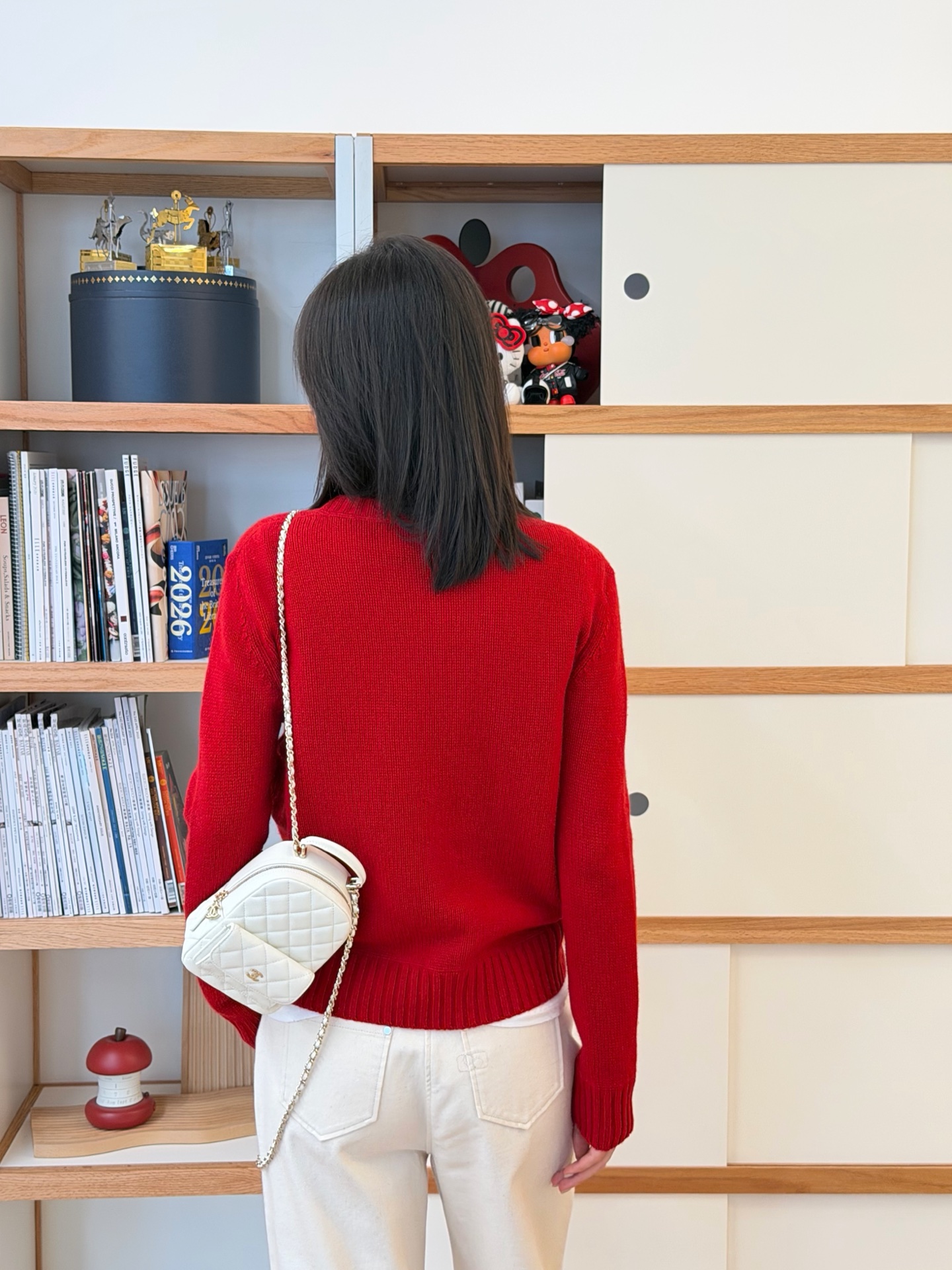 2025秋冬新品 P家 發財紅羊絨針織衫