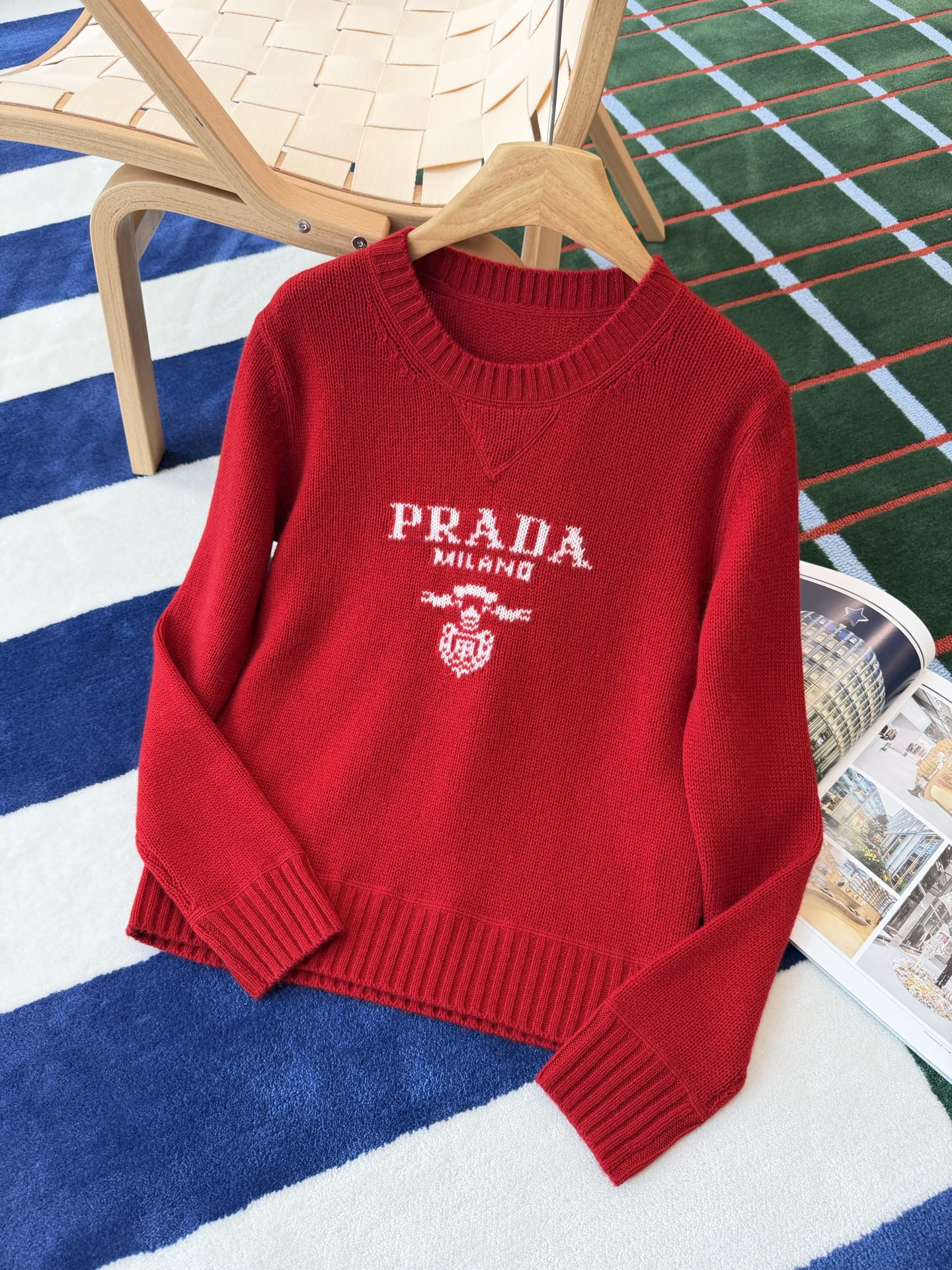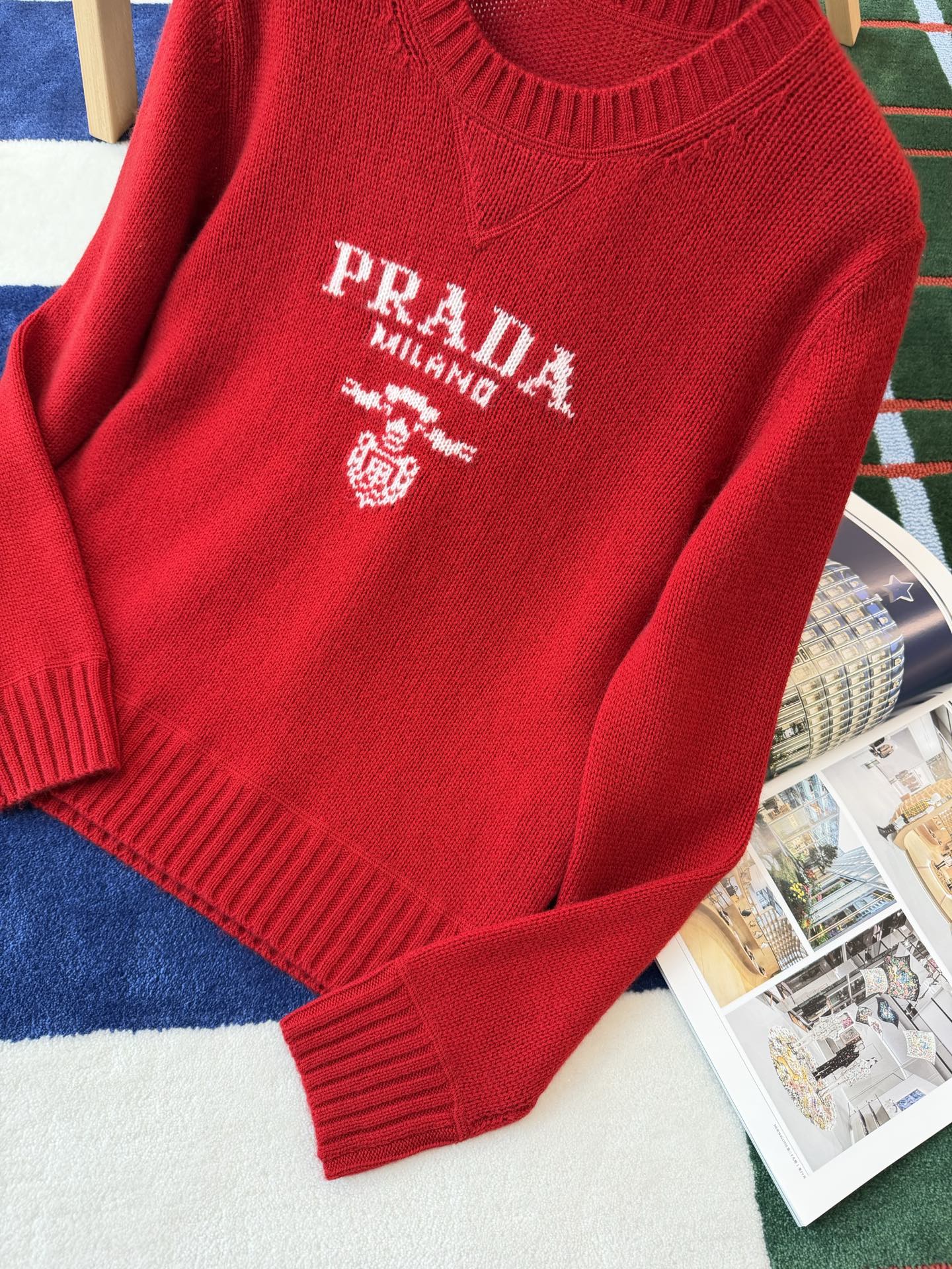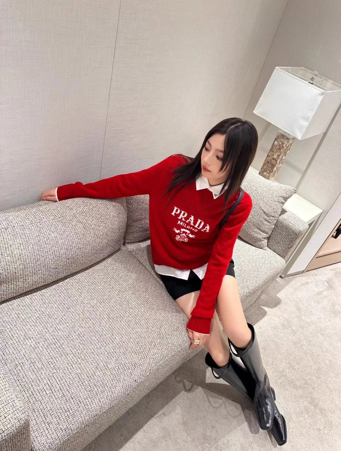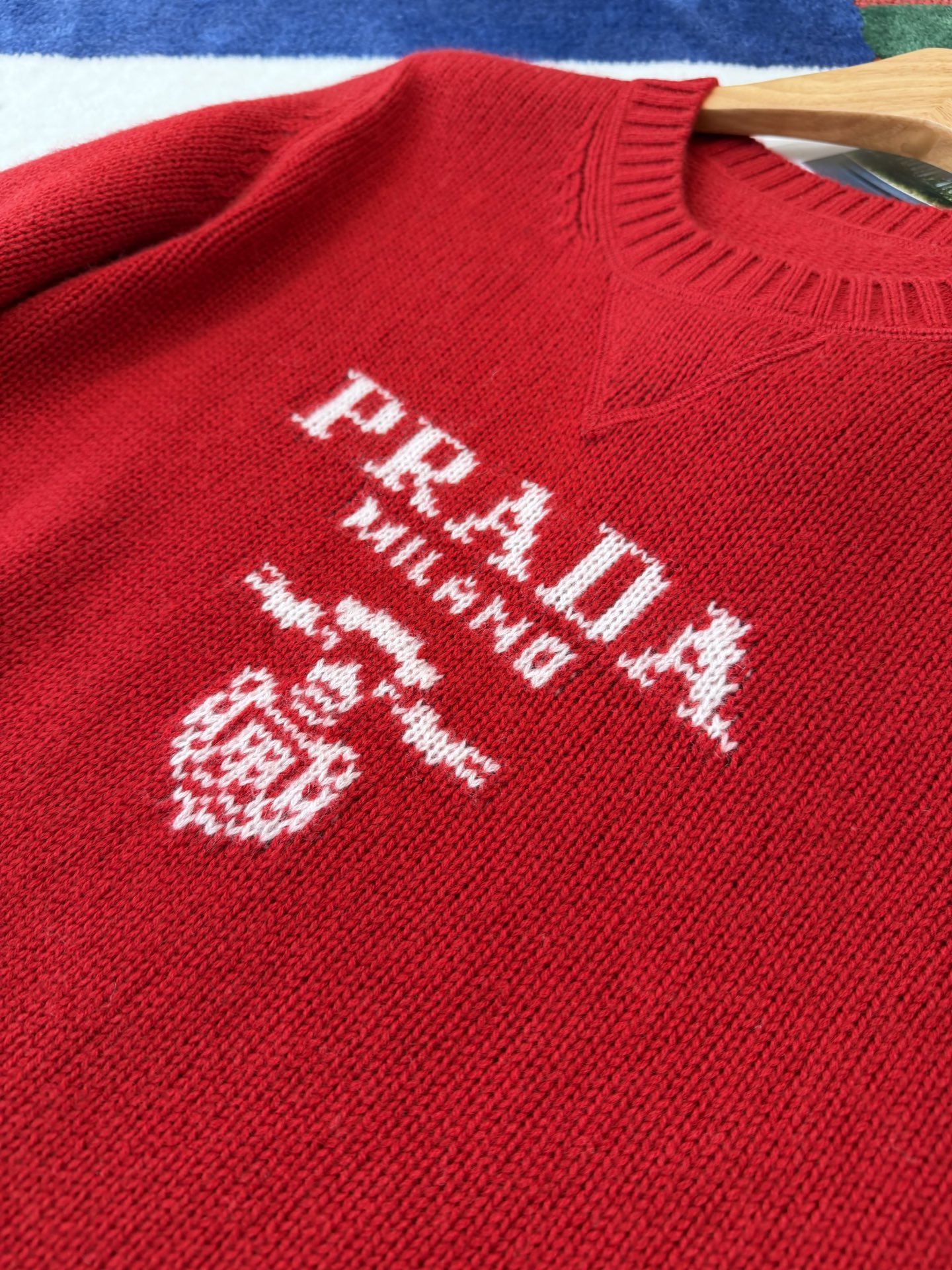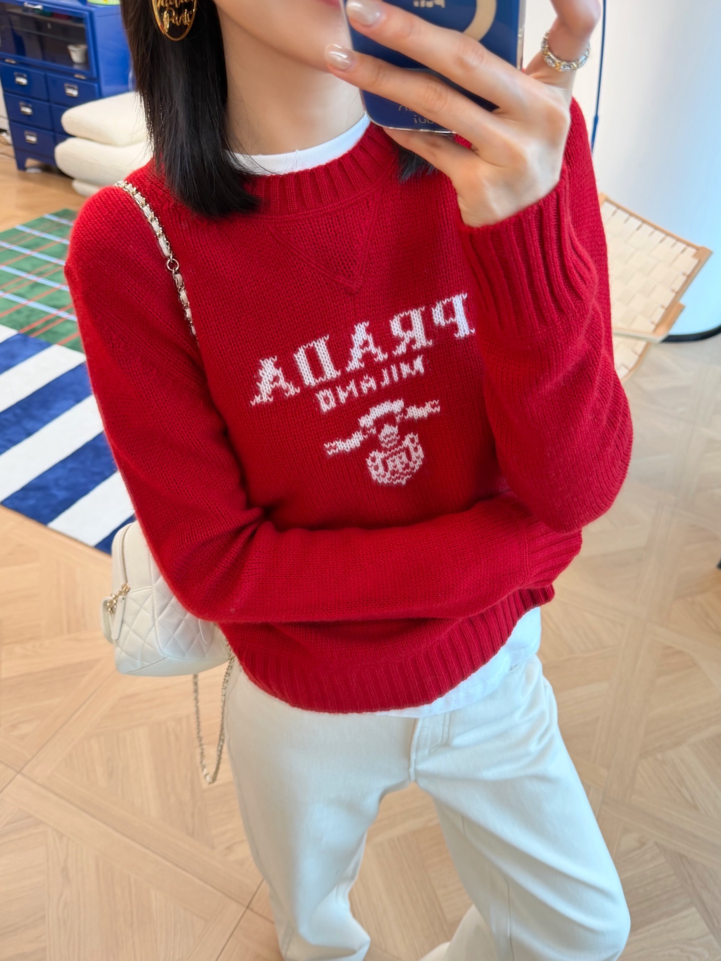 2025秋冬新品 P家 發財紅羊絨針織衫