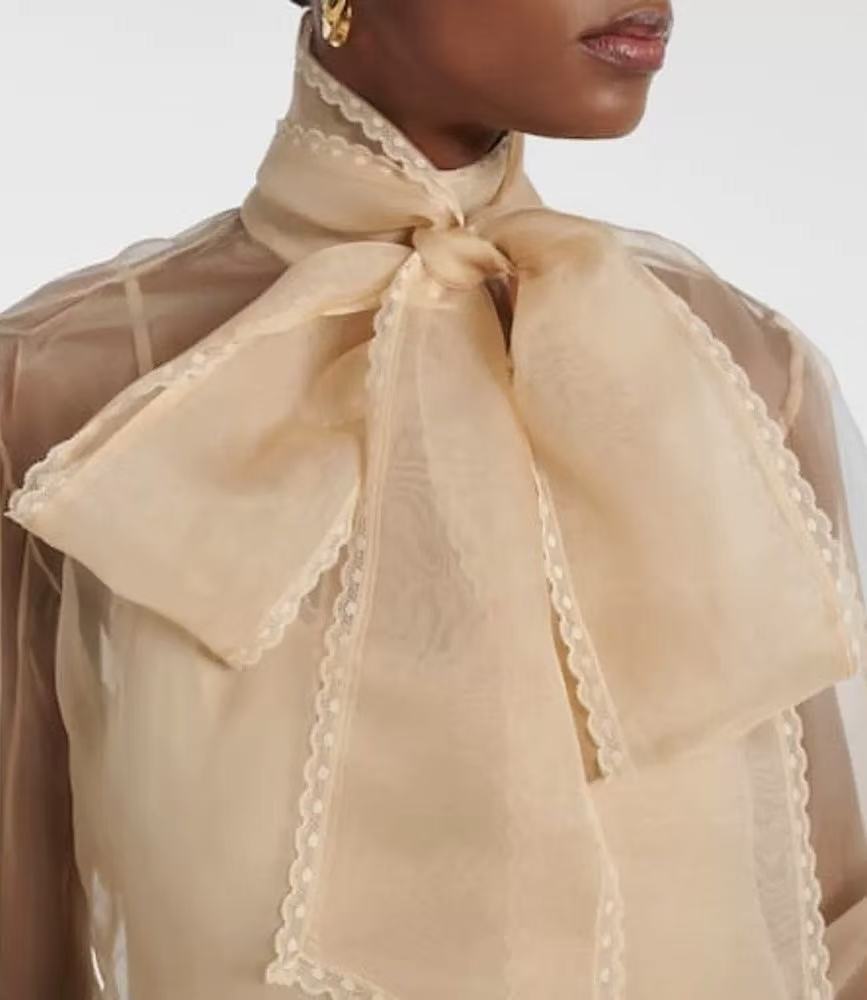 立體挺括版型: 歐根紗特有的支撐力,讓這款襯衫的宮廷袖與領口能維持漂亮的廓形,不會因為穿久或洗滌而軟塌無力。