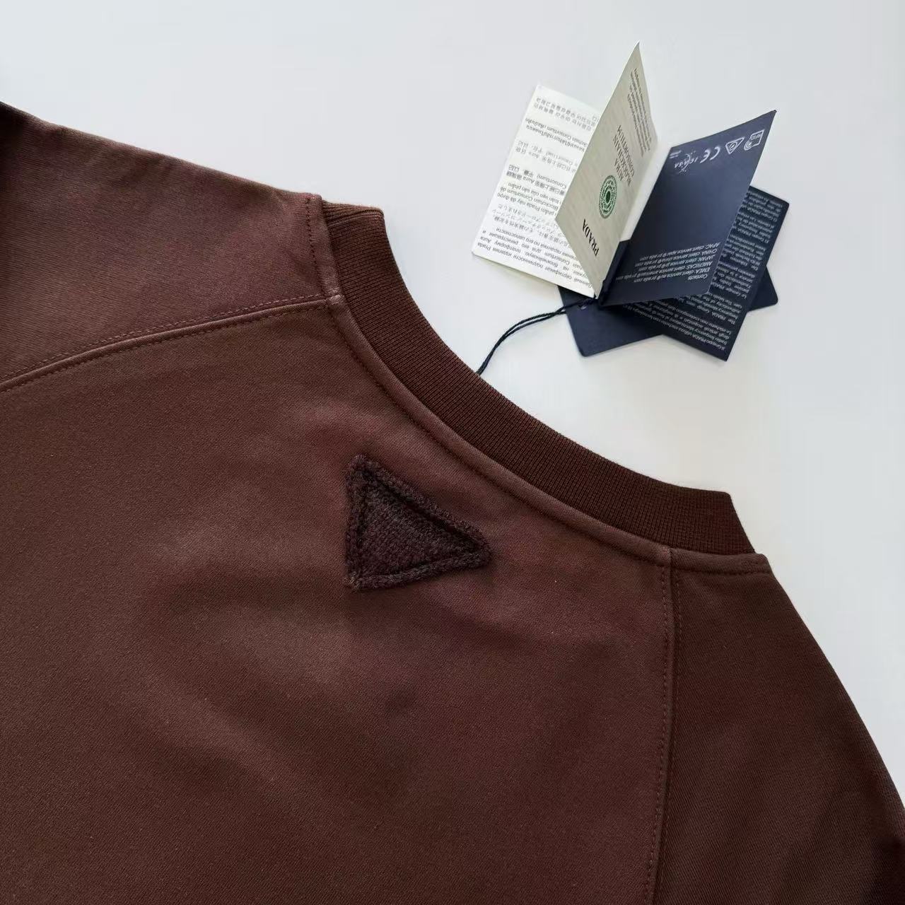 這件衛衣的設計重點,完全聚焦在那個充滿辨識度的毛織三角徽標上,工藝細節非常高規格: