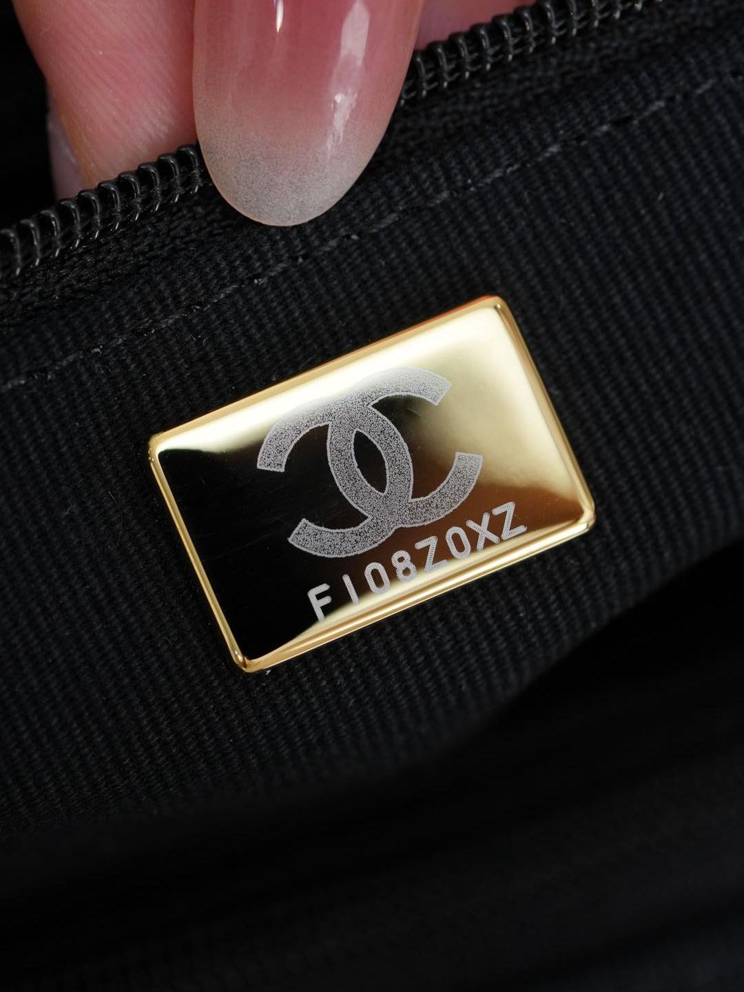 ・內裏則為全黑色棉質材質,質感細緻,並附有拉鍊隔層,收納實用。內部刻印清晰,包含「Made in France」與 芯片標籤,細節滿分。