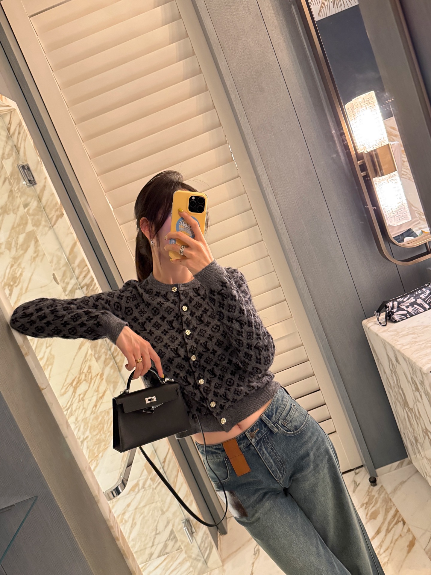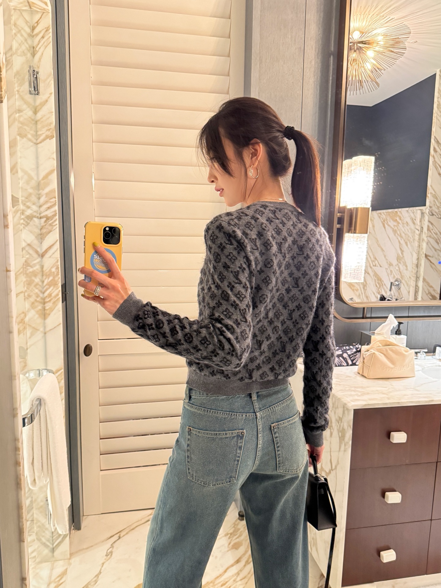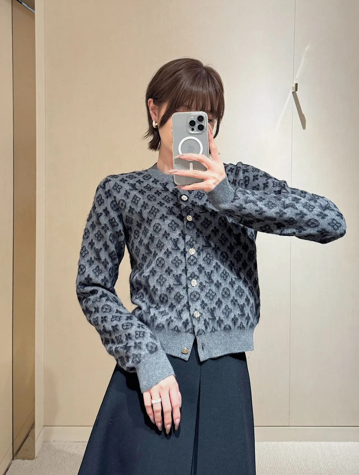 整體設計低調中帶點復古韻味,老花圖案結合細緻的編織紋理,讓整件針織衫不只保暖,更充滿質感。這種「不費力的時髦感」,真的會讓人越看越喜歡。