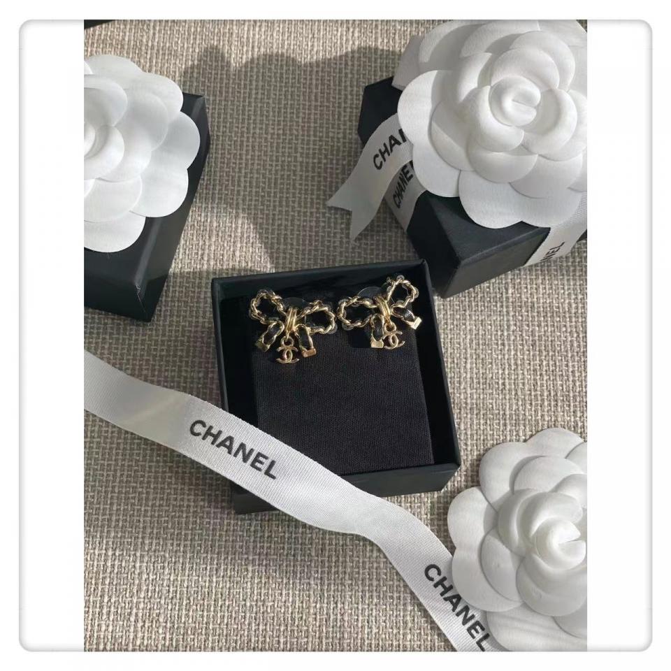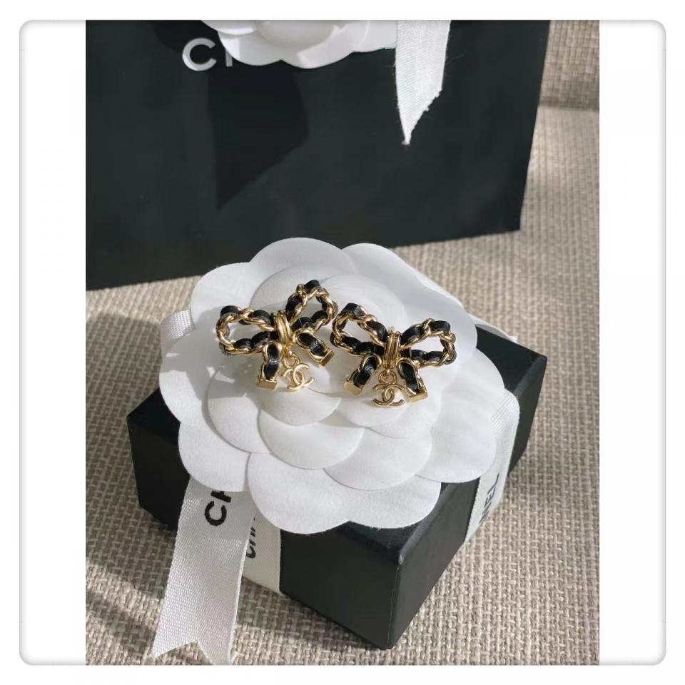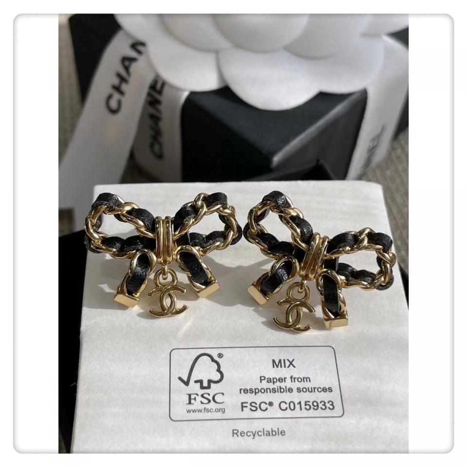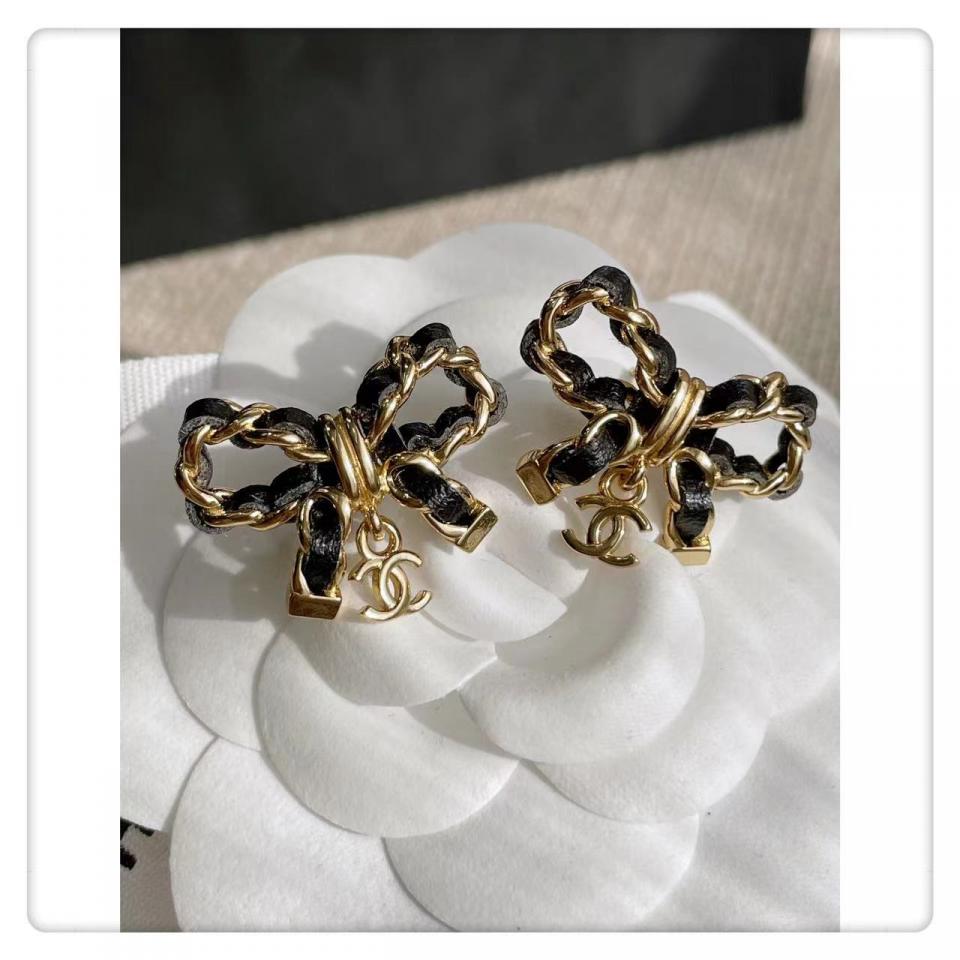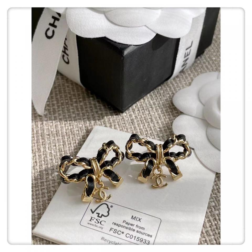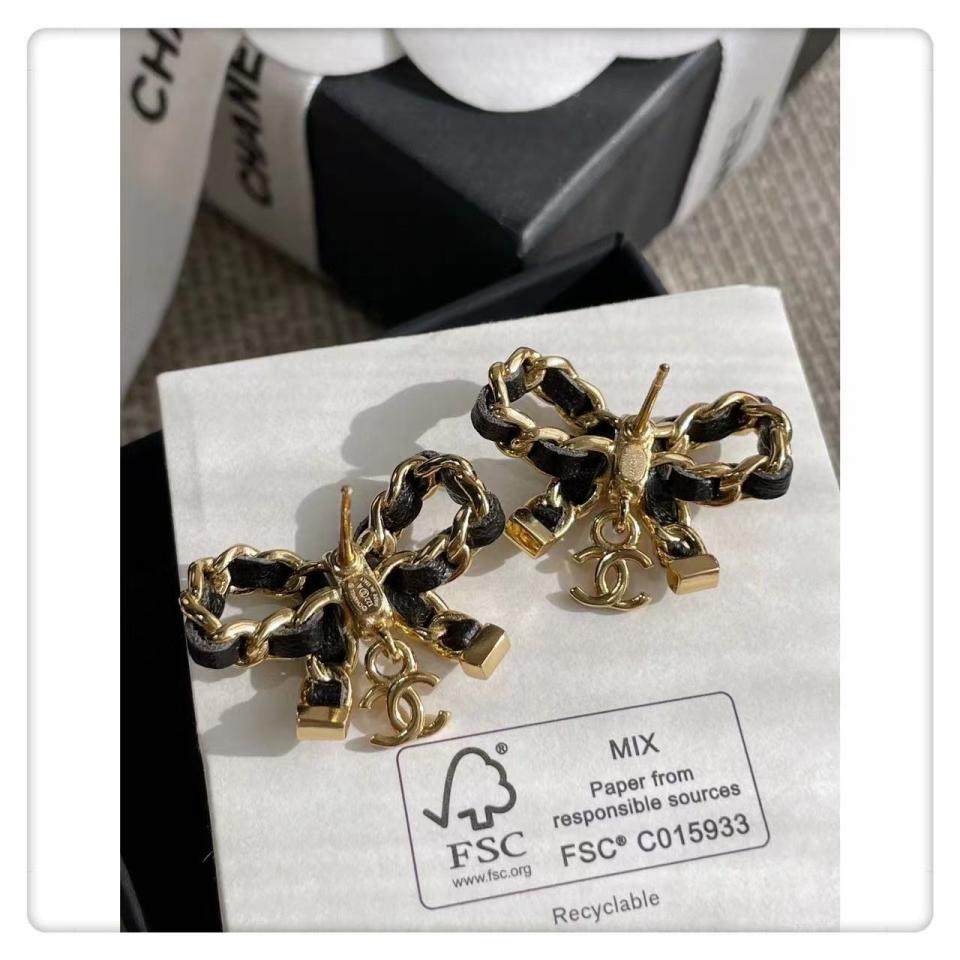 2022早秋 C家皮蝴蝶結吊C耳釘