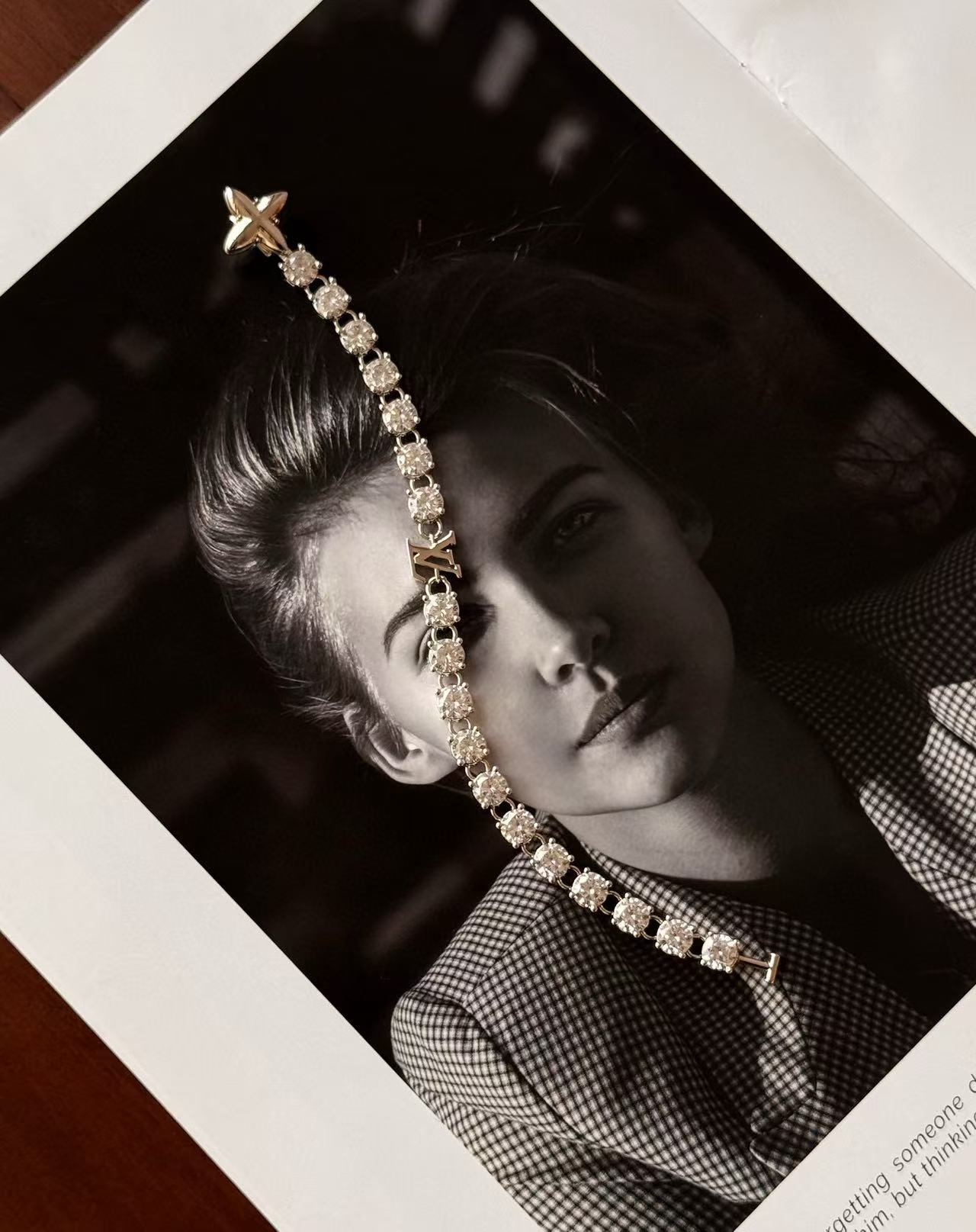 設計靈感來自最具代表性的 Monogram 十字花字母標誌,加上滿鑽點綴與鏤空設計,一戴上就是焦點所在,舉手投足間都是閃耀氛圍,極具高級感與存在感。