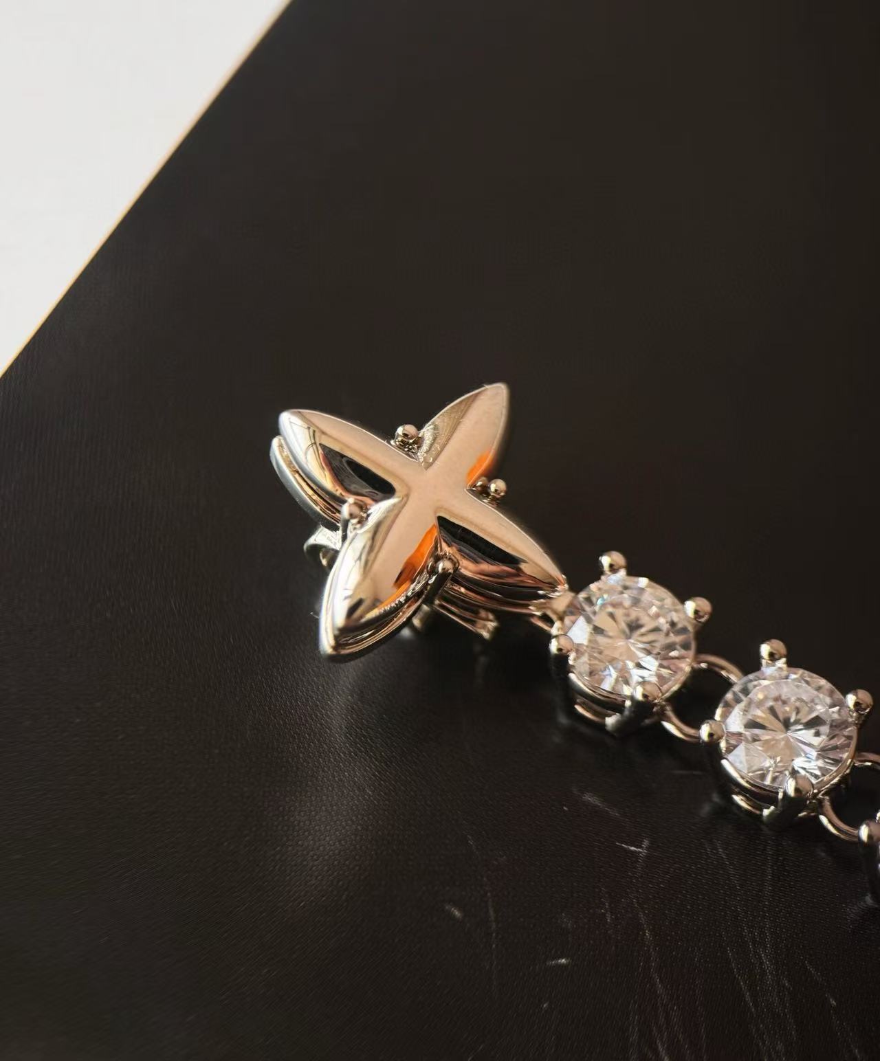 ・十字花造型搭配字母,鏤空與滿鑽結合,精緻工藝展現無遺