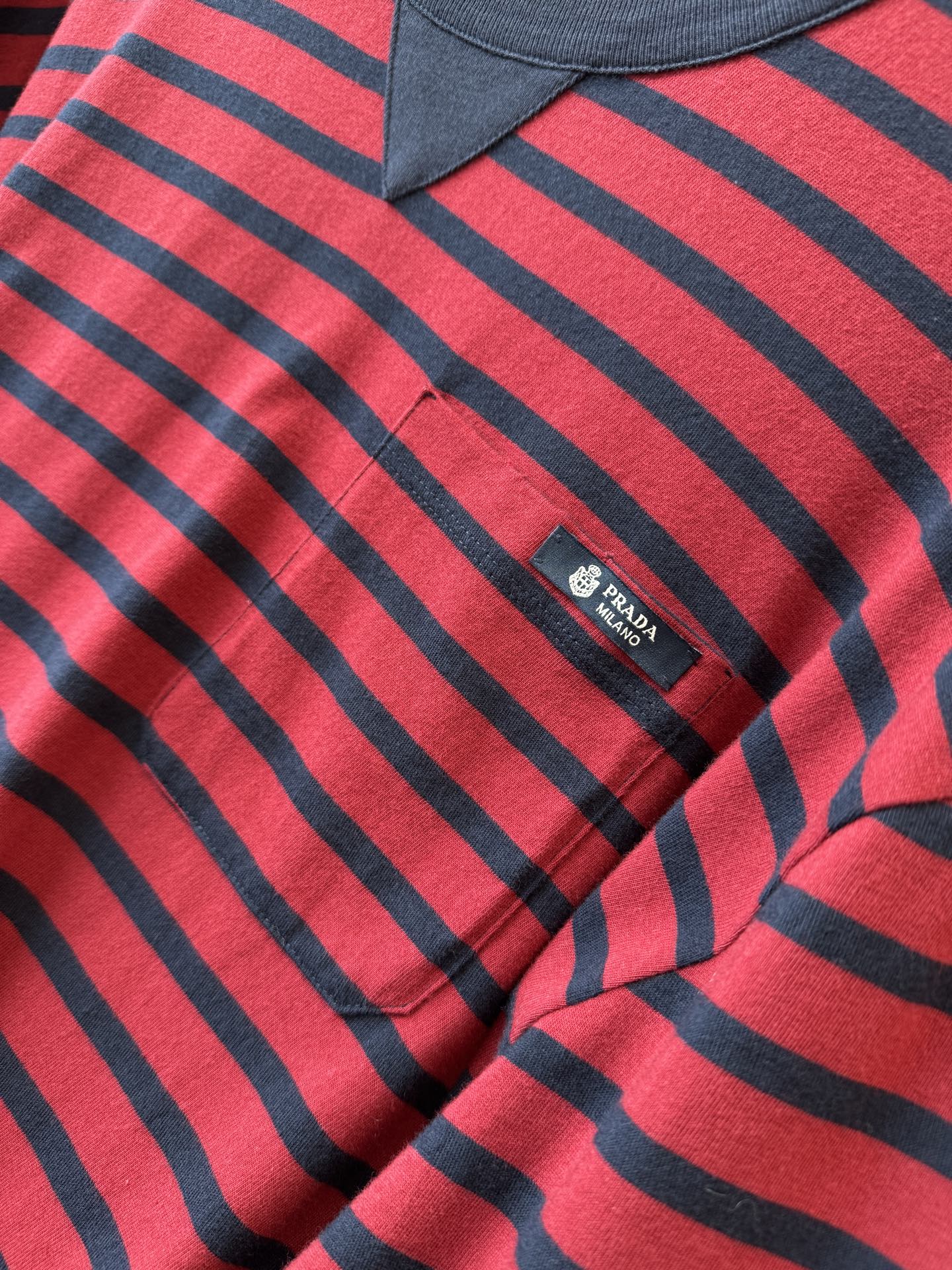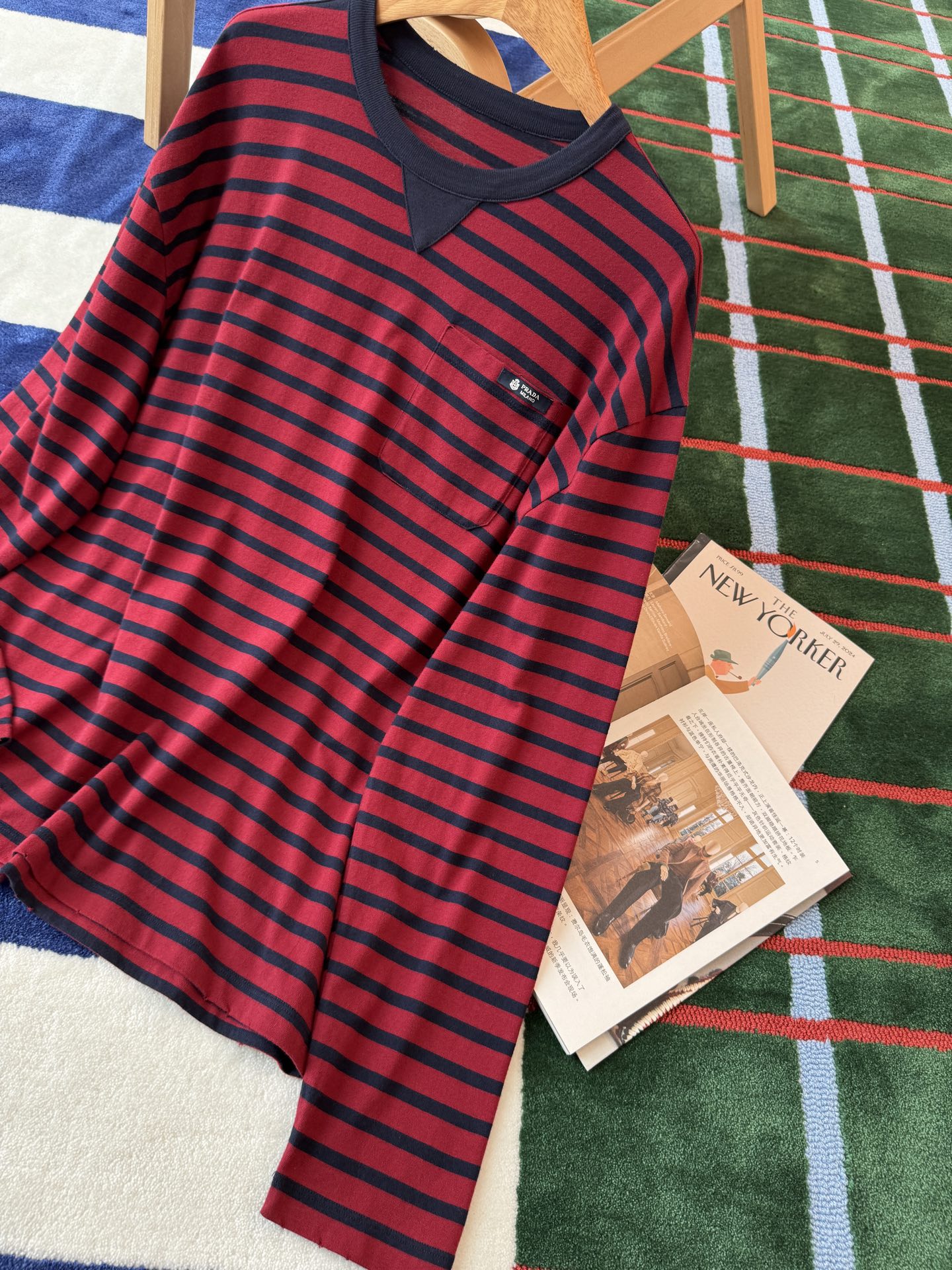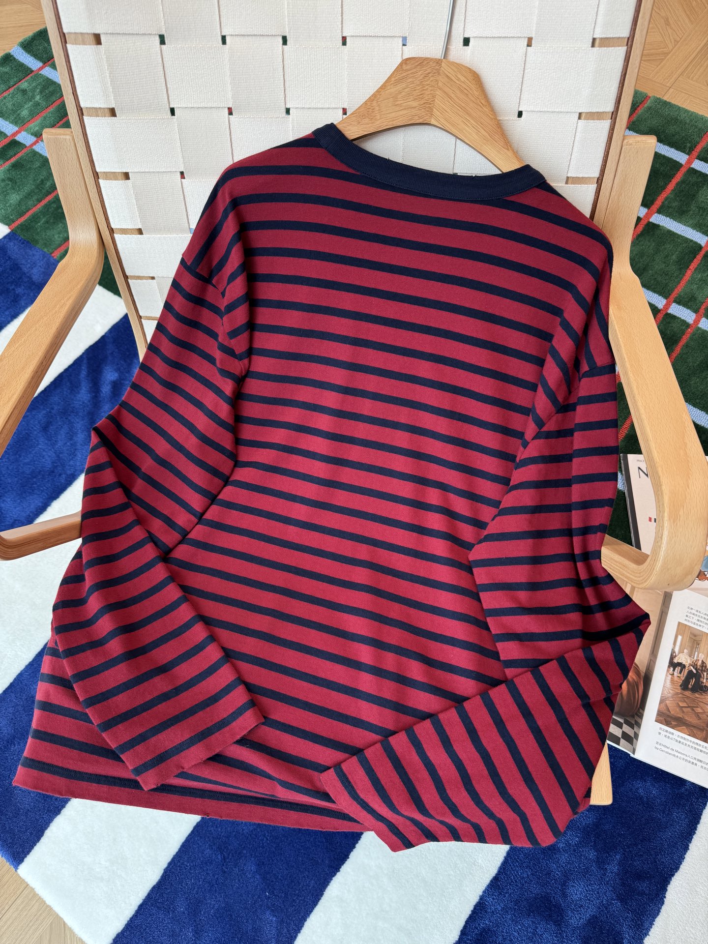 這件紅藍條紋T恤,是那種越看越順眼、越穿越上癮的款式。