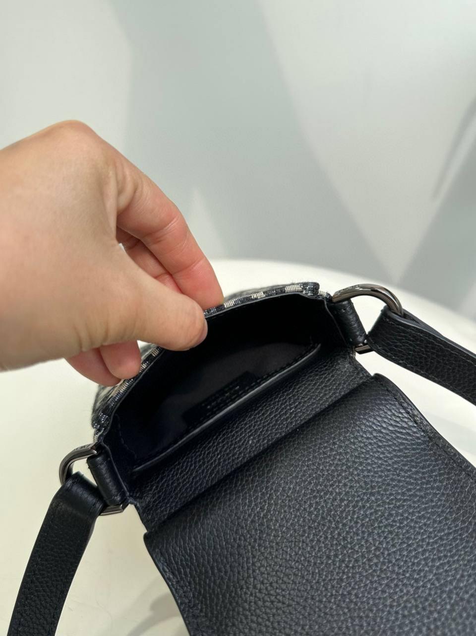 一款充滿優雅氣息的現代作品,採用時尚的設計,彰顯精緻的優雅氣質,豐富了馬鞍系列,為品牌標誌性線條錦上添花,黑色oblique印花搭配黑色粒面牛皮,翻蓋突顯馬鞍輪廓以鋁扣點綴,包扣馬鞍翻蓋開合設計,內里搭配很簡潔,手提單肩斜背都可以,女生背也很帥氣完全不挑人,簡約風範經典時尚